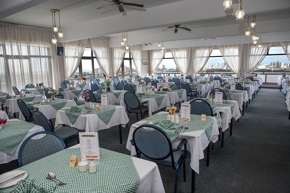 Dining Room: Enjoy three daily meals in our spacious dining room with panoramic views of the city center. Options include omelettes or toasted sandwiches with a variety of salads. Guests are welcome to dine with residents.
