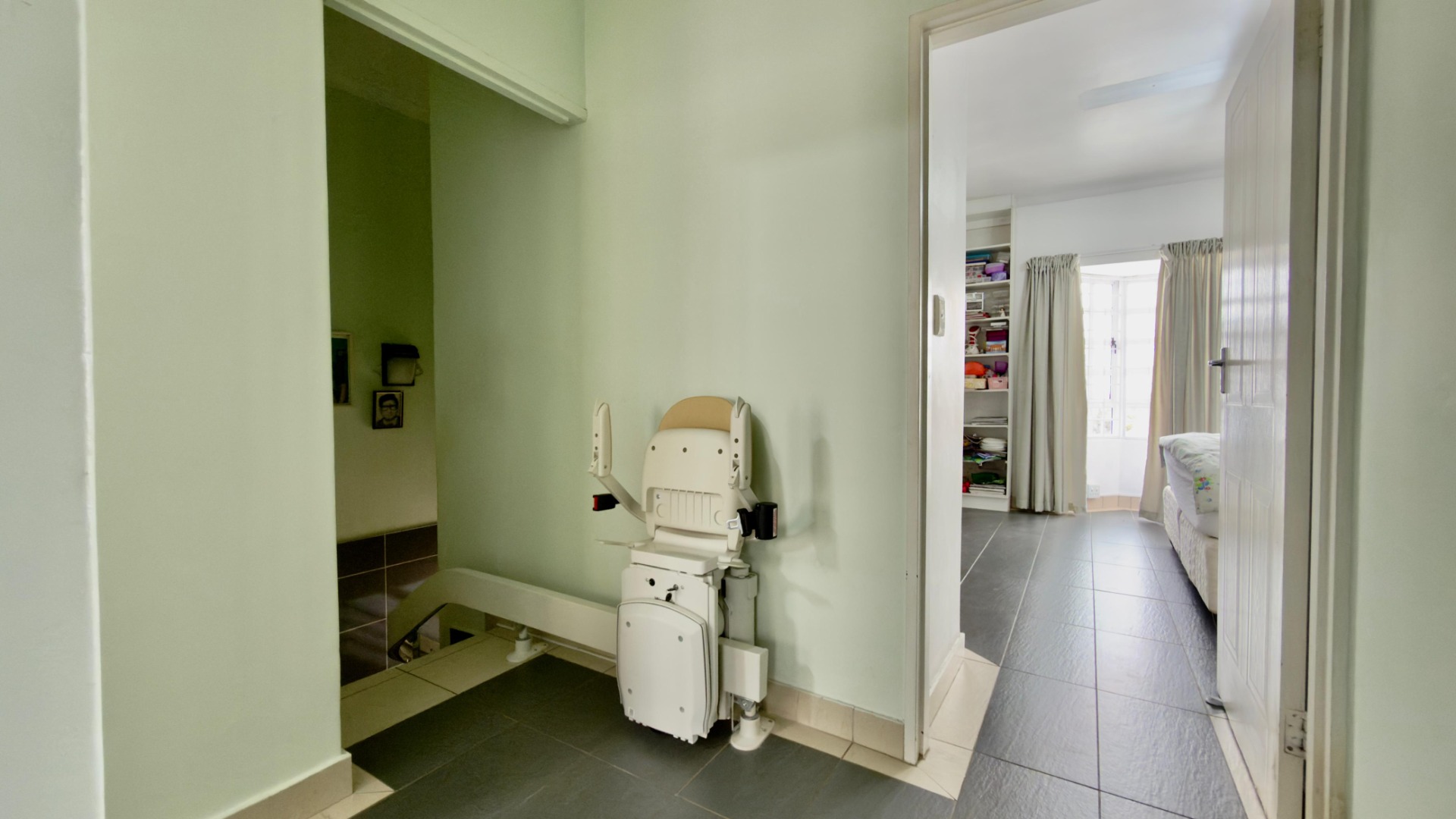 The property is wheelchair?friendly on one side, with a chair lift providing easy access upstairs. On one side of the upstairs layout, three bedrooms share two en?suites and a common bathroom.
