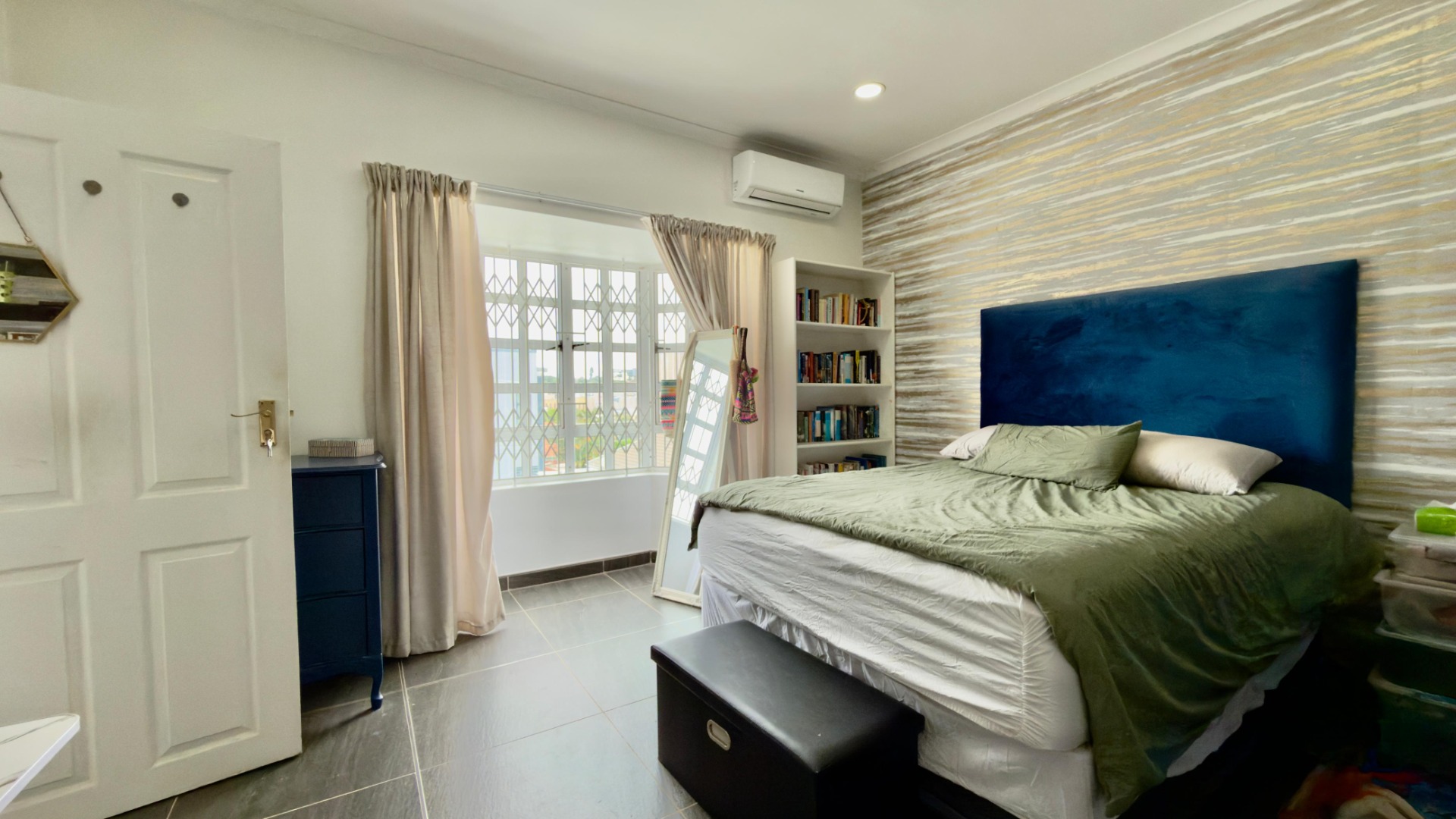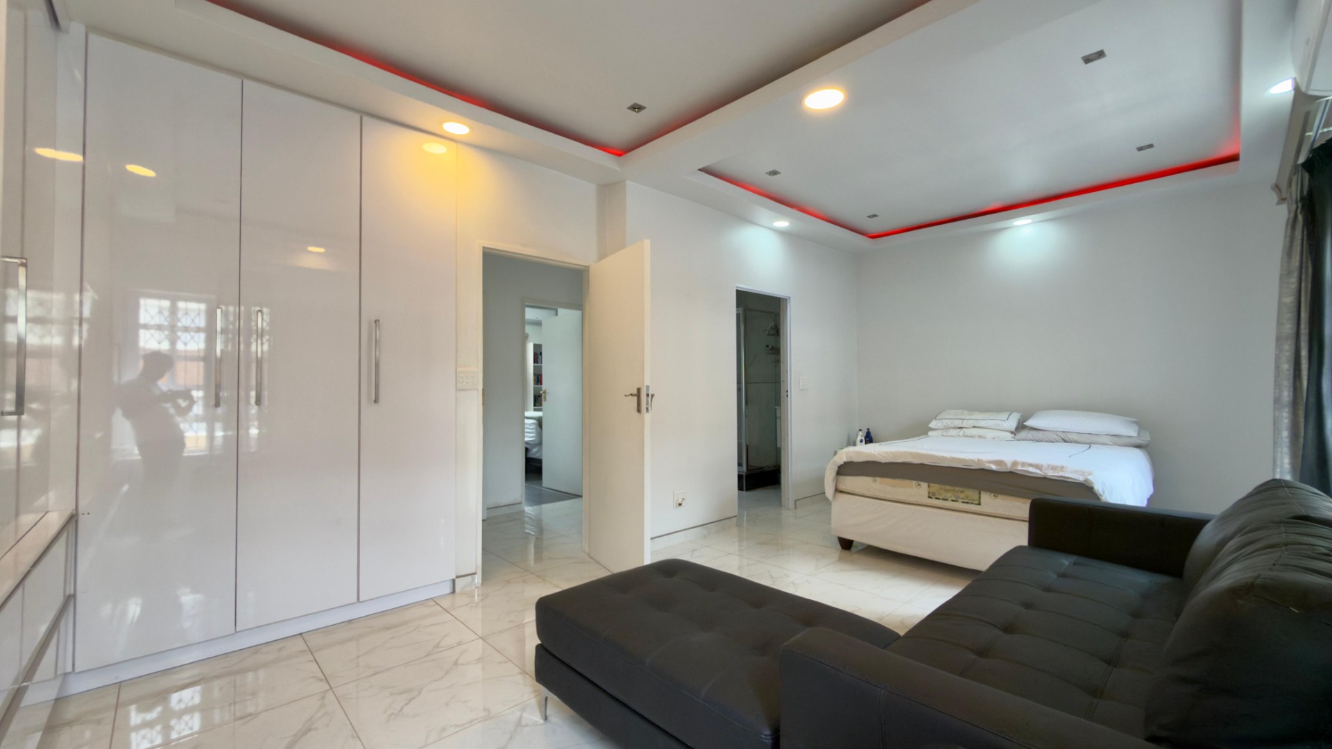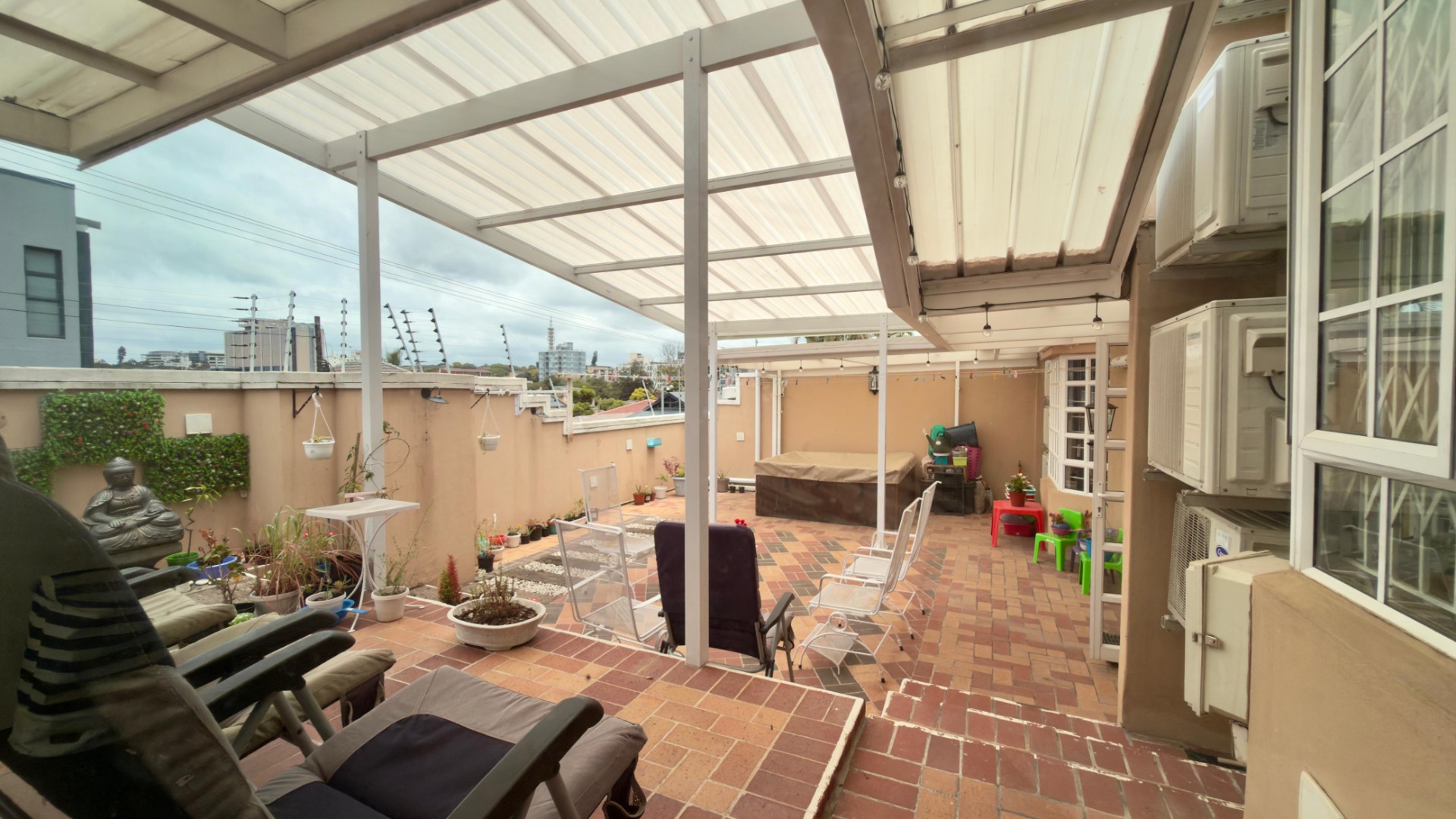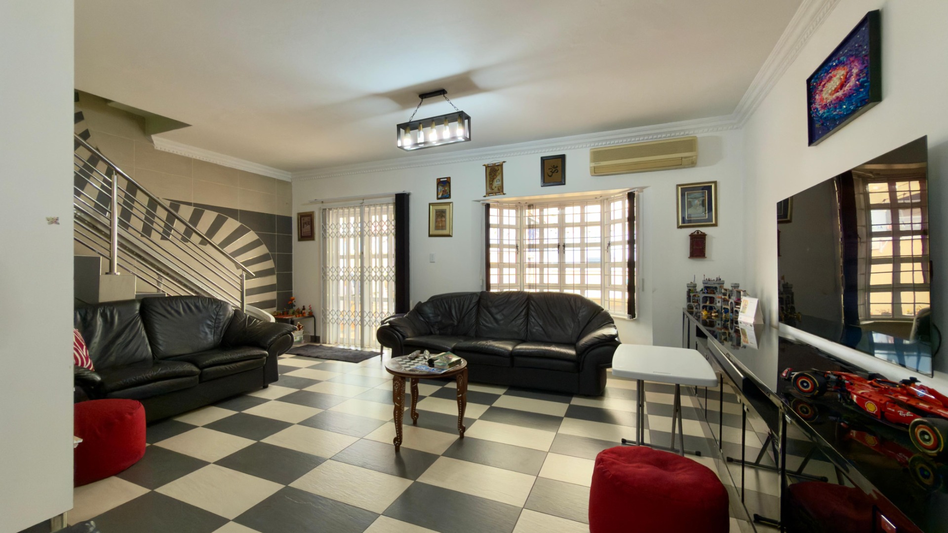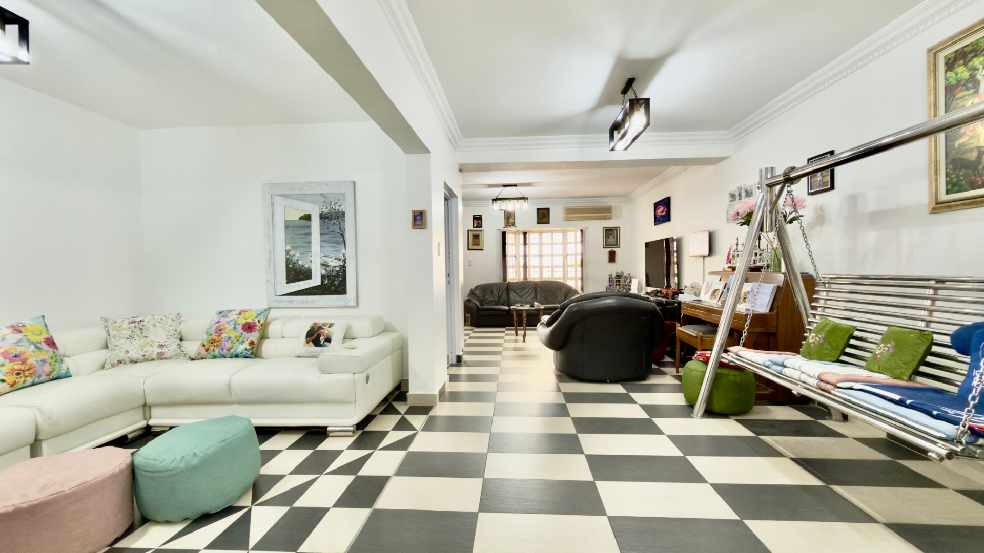 The real highlight is the huge outdoor area: a Jacuzzi relaxes under the stars, and there’s a separate, enclosed gym for working out. A water tank with pumps and filters ensures water security, and 16 solar panels (with a battery) power the home for 6–8 hours when there is load shedding . A fully functional camera system keeps things secure.