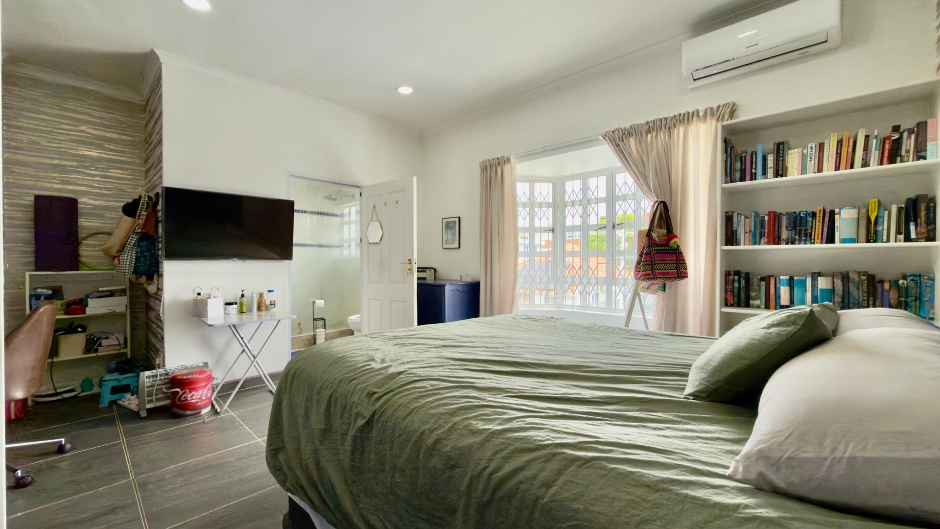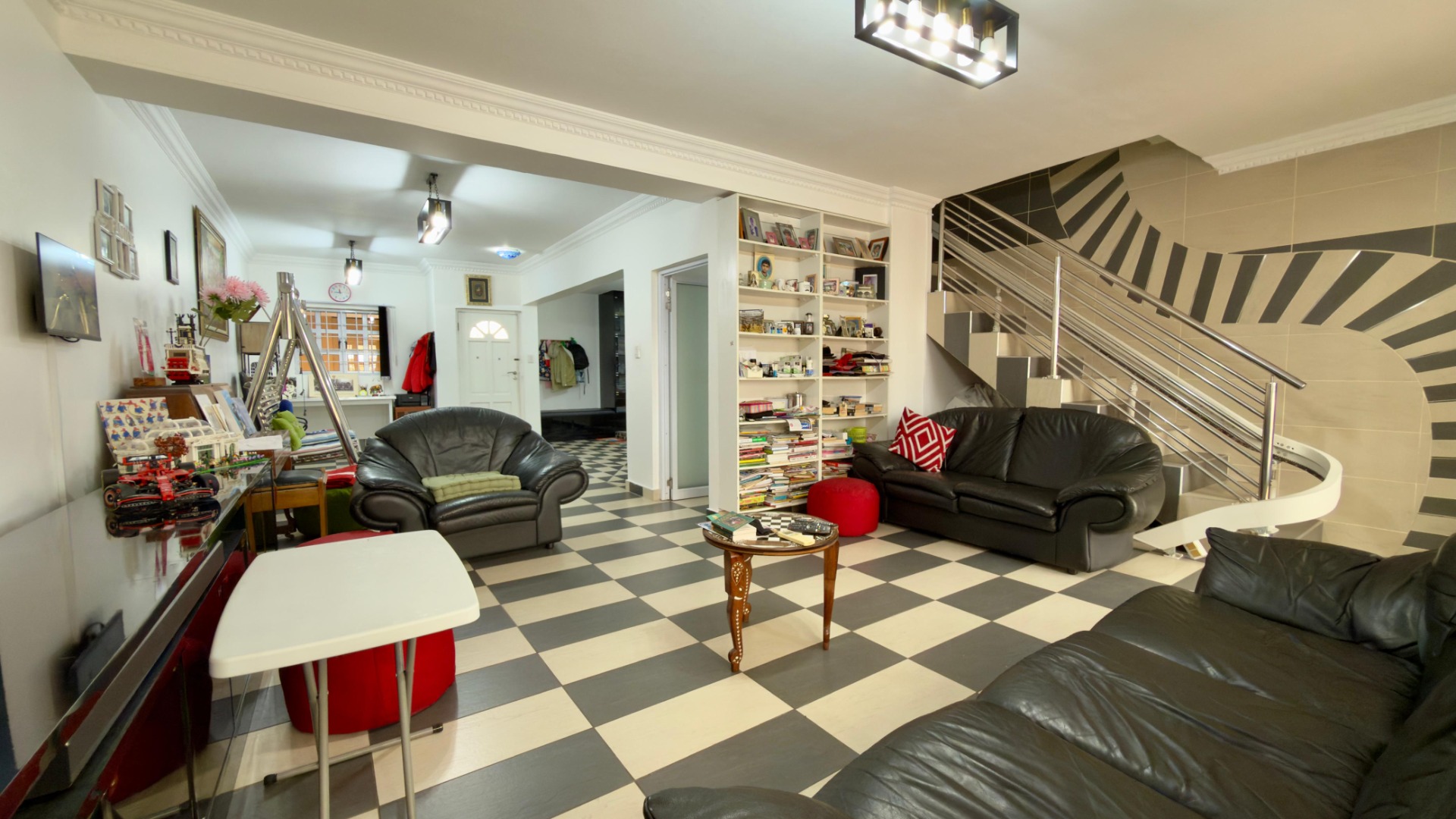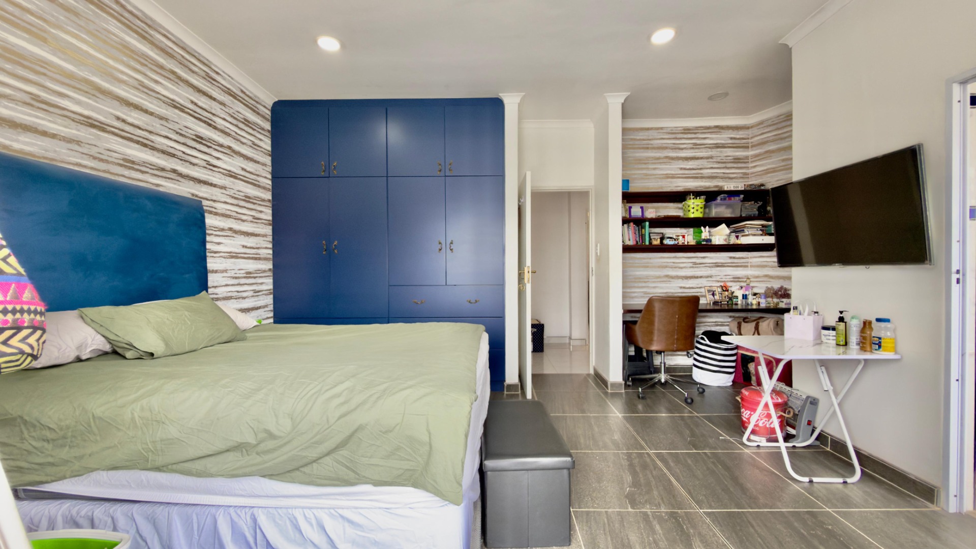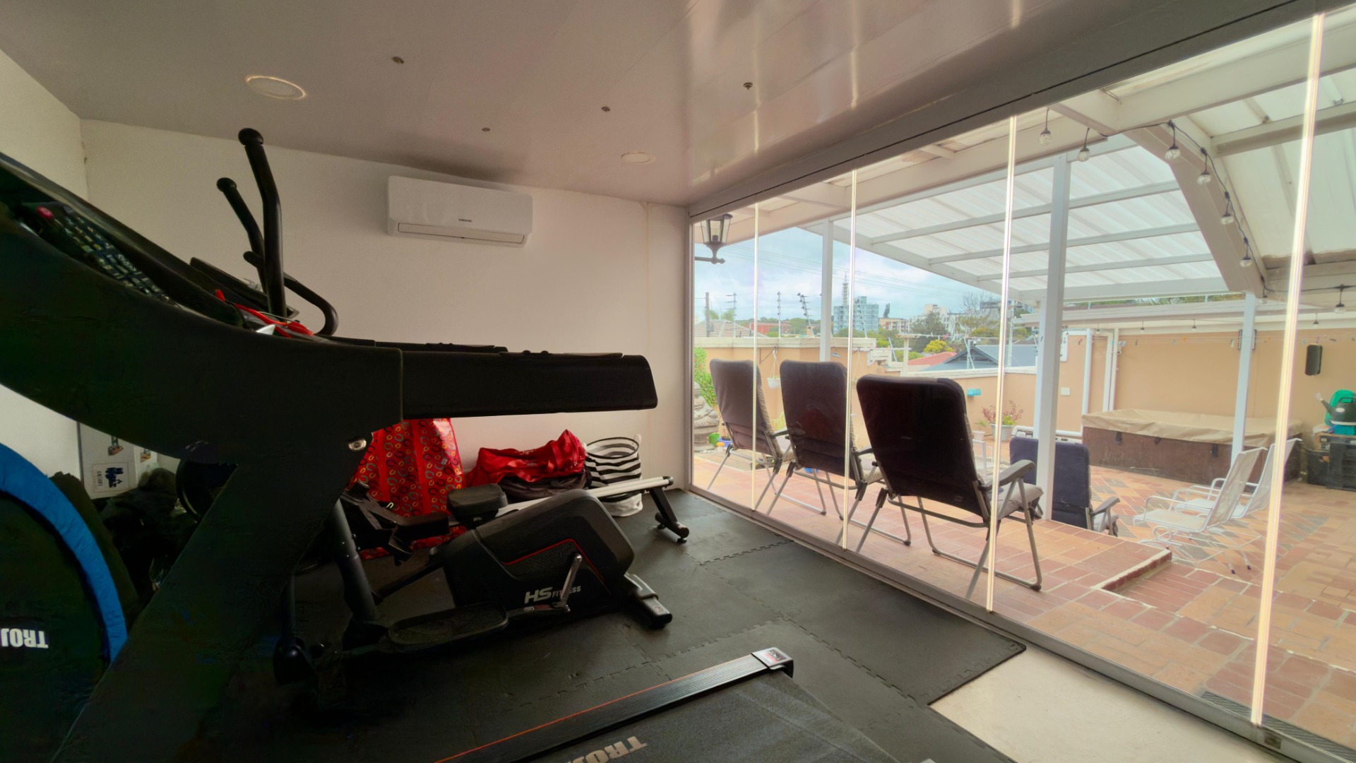 The real highlight is the huge outdoor area: a Jacuzzi relaxes under the stars, and there’s a separate, enclosed gym for working out. A water tank with pumps and filters ensures water security, and 16 solar panels (with a battery) power the home for 6–8 hours when there is load shedding . A fully functional camera system keeps things secure.