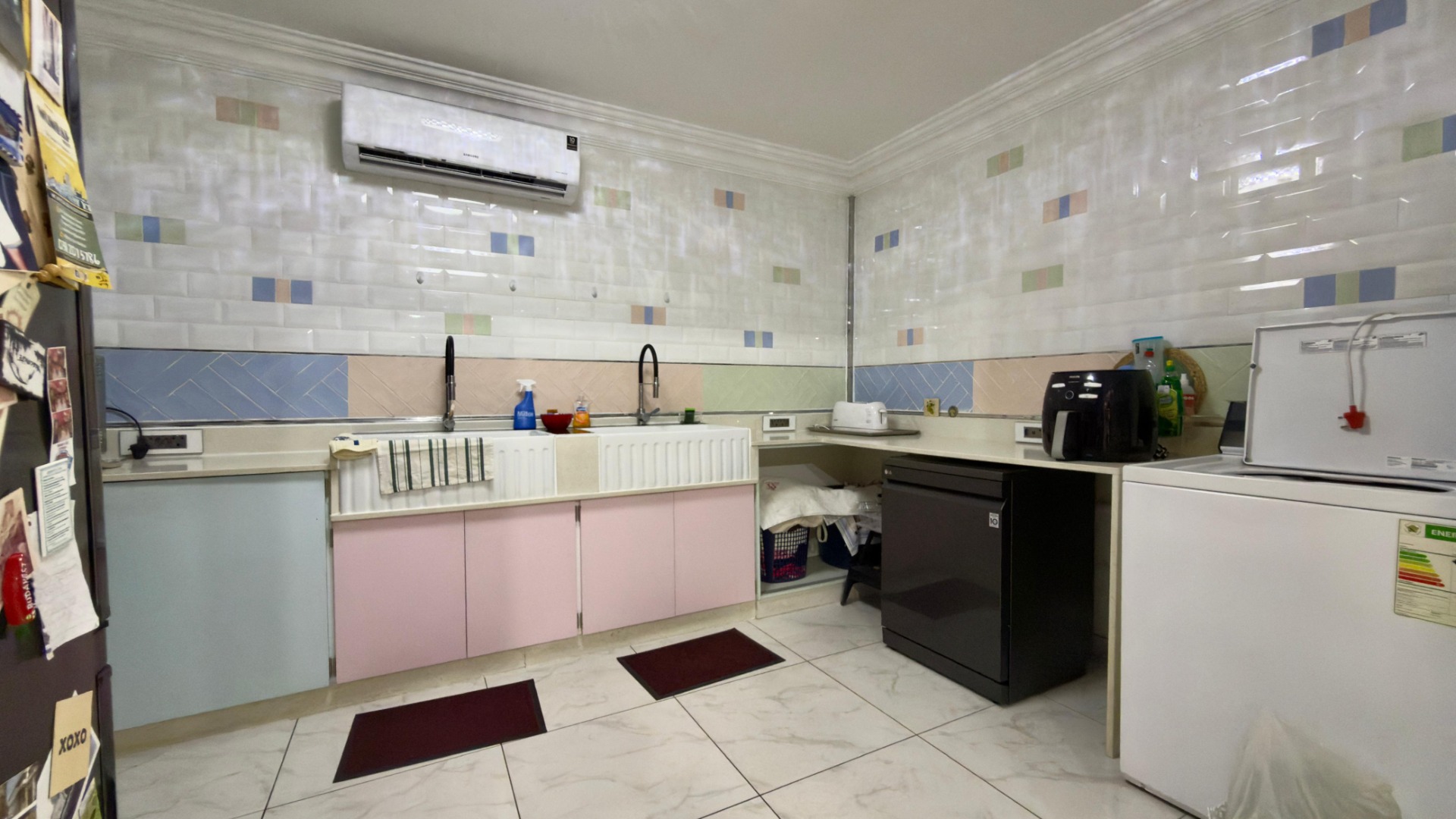 The ground floor boasts an open plan kitchen with a massive scullery, plus separate dining and lounge areas—perfect for entertaining. A guest toilet adds convenience downstairs.
