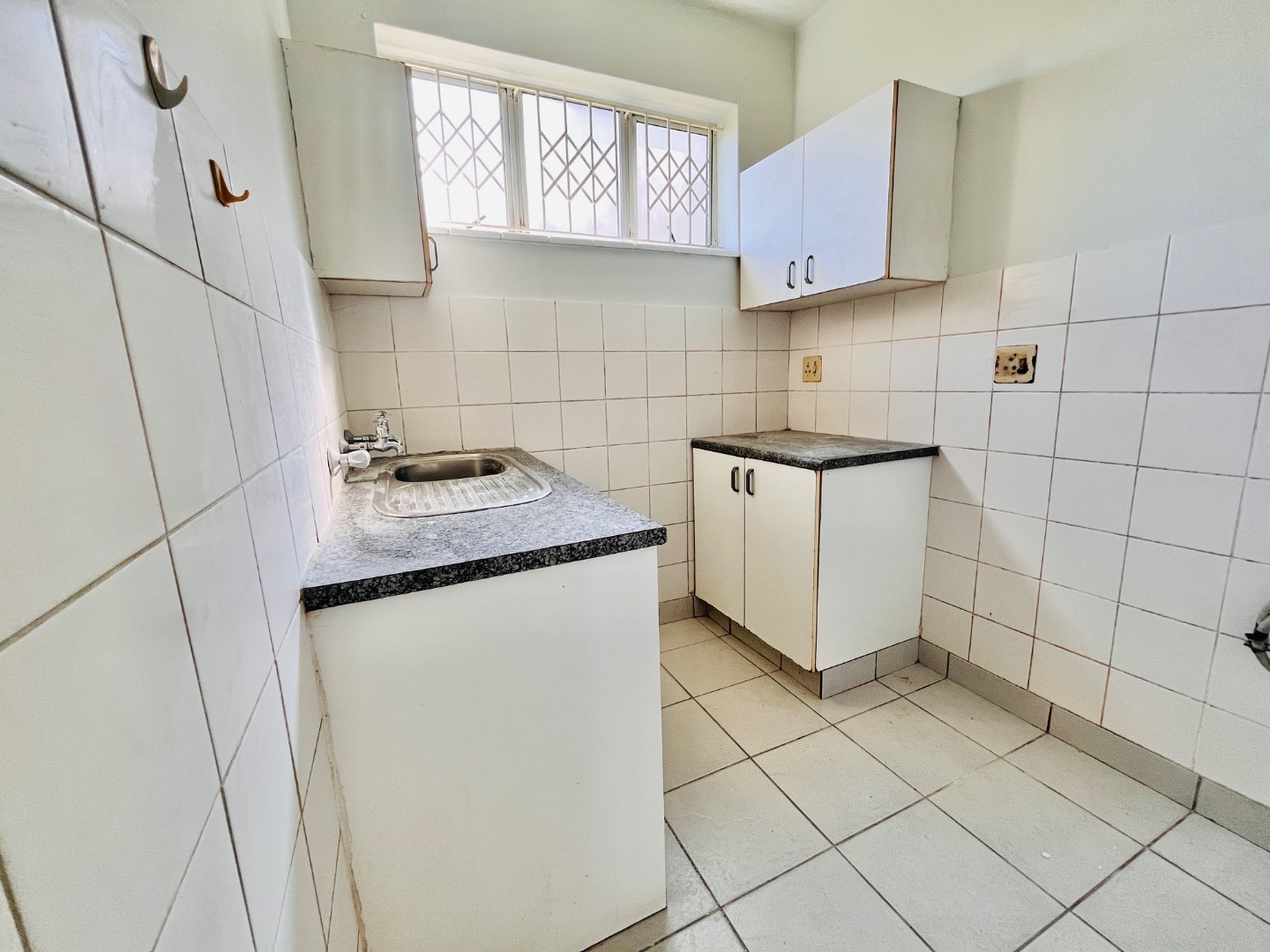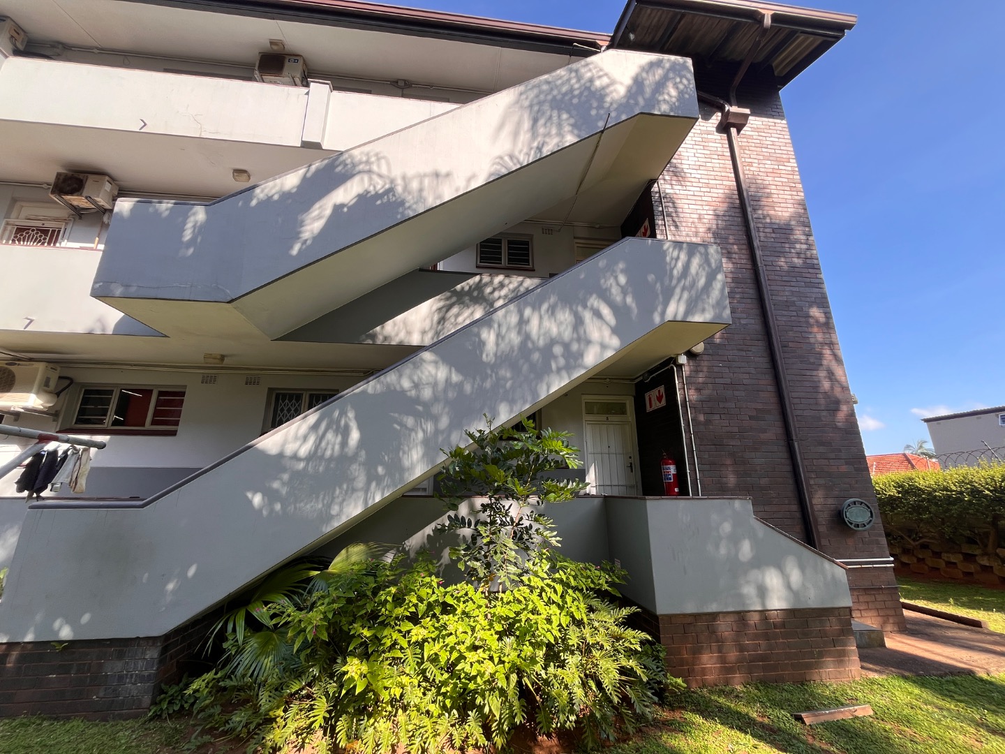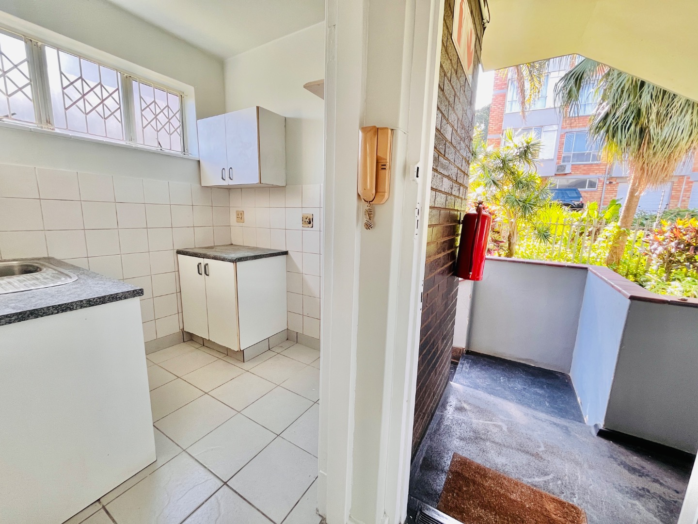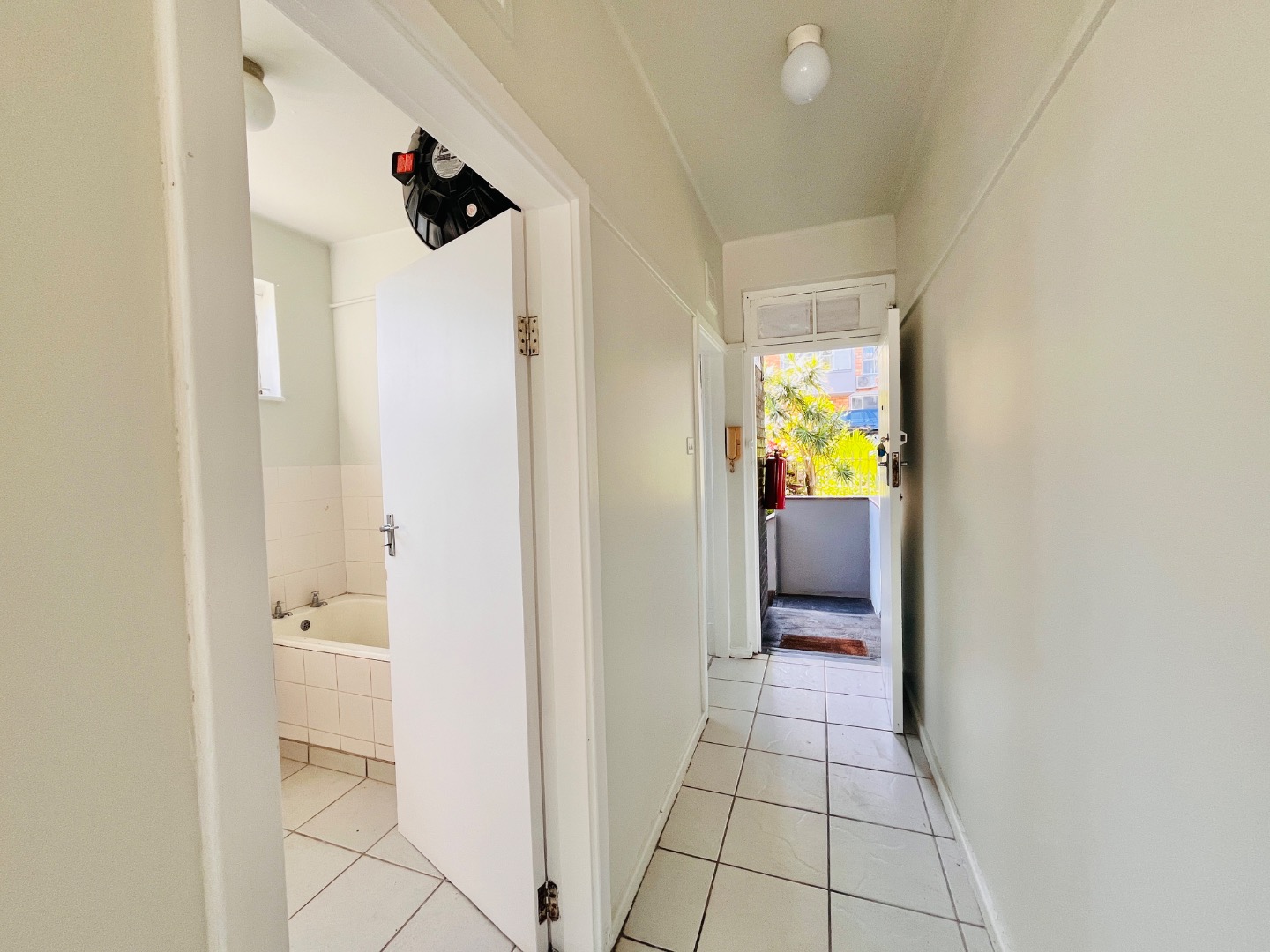 Being on the ground floor, the entrance looks out onto a lovely garden with a built-in Braai area and a sweet spot to sit and enjoy the sunshine.