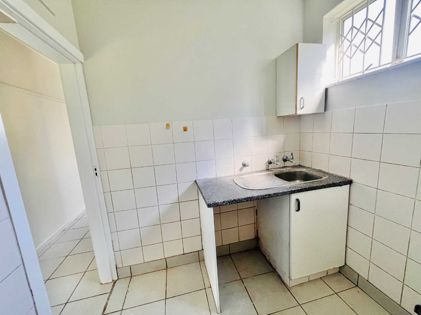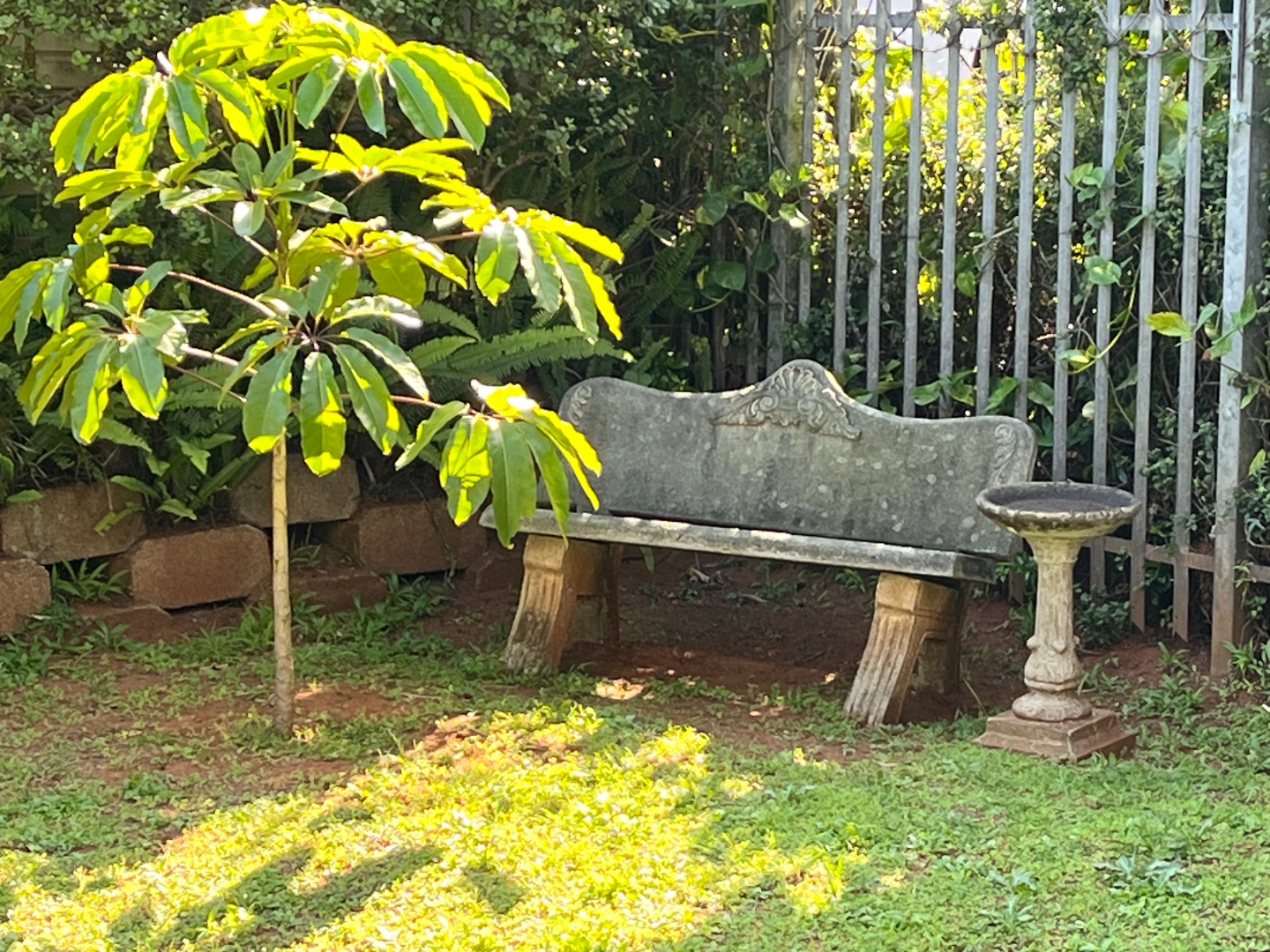 Being on the ground floor, the entrance looks out onto a lovely garden with a built-in Braai area and a sweet spot to sit and enjoy the sunshine.