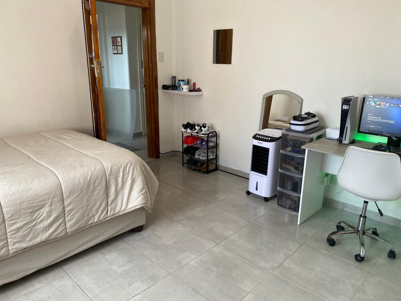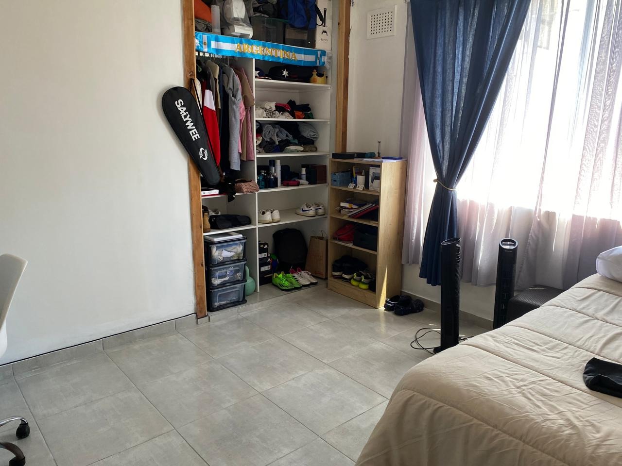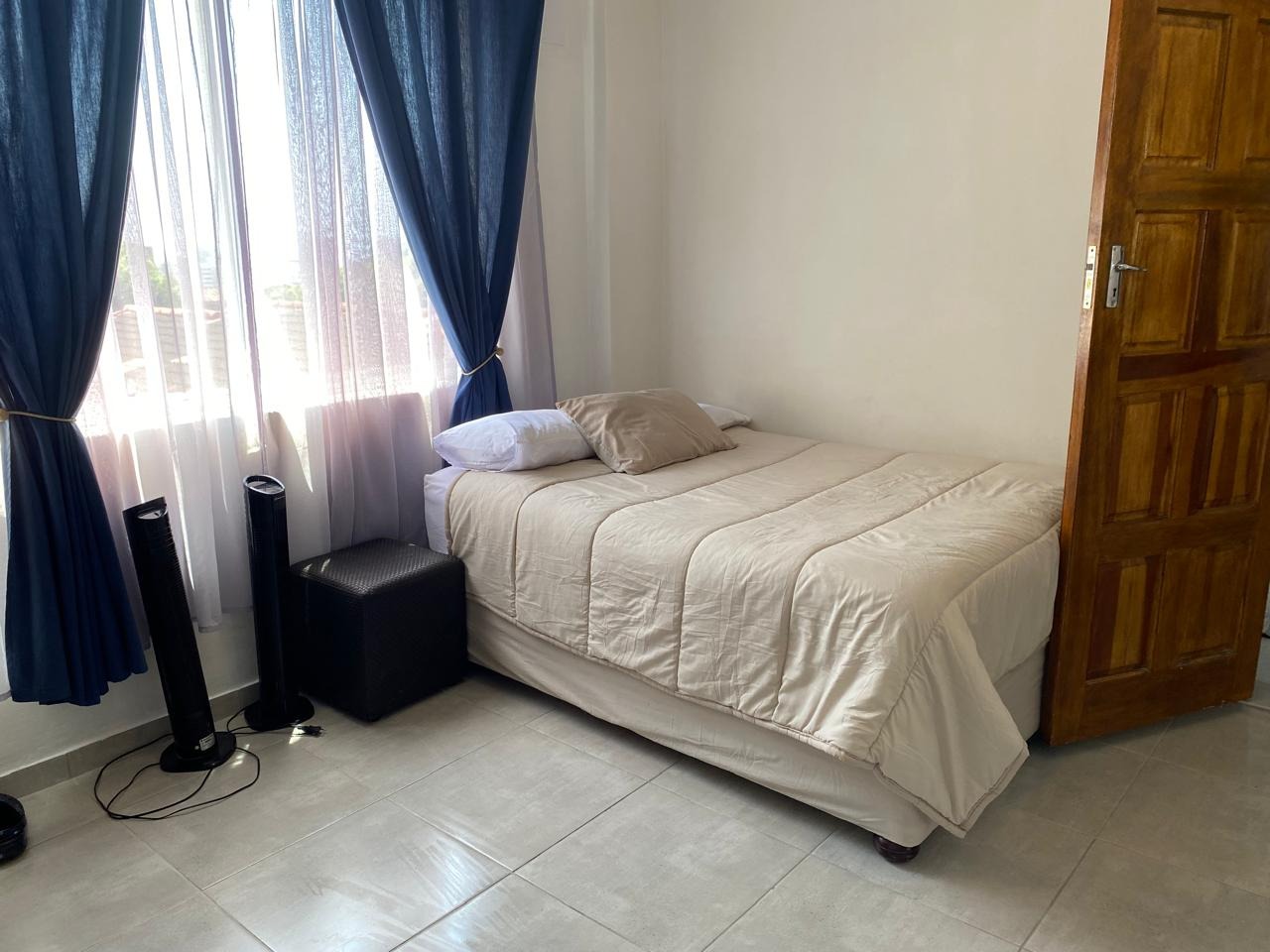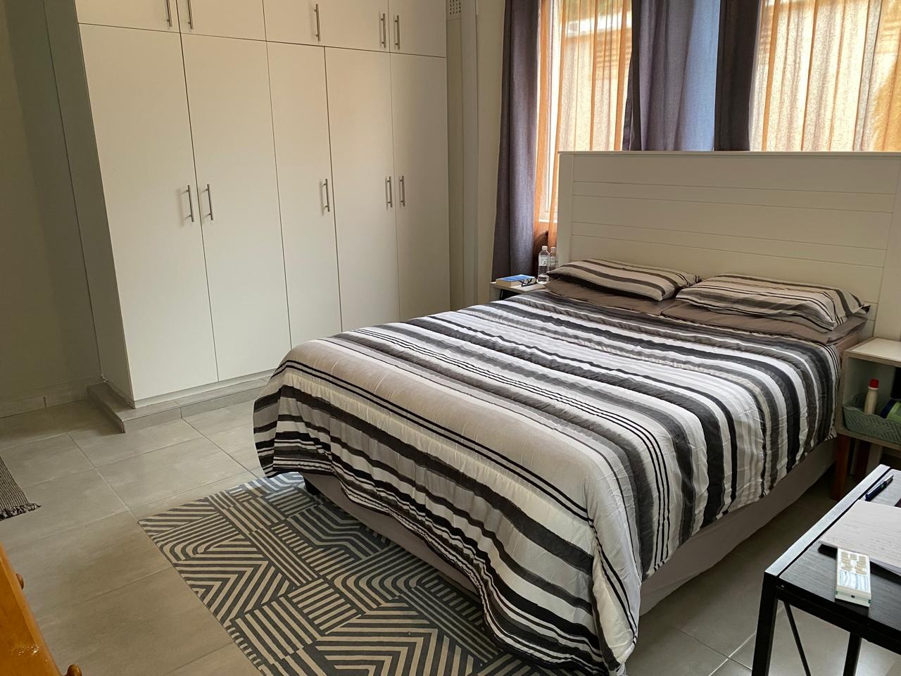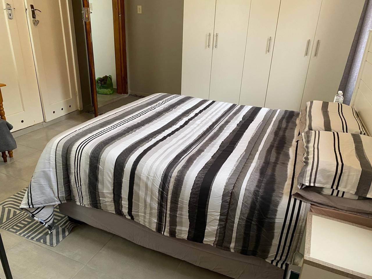Two spacious bedrooms with built-in cupboards, suitable for large beds or multiple singles, plus space for additional furniture like a