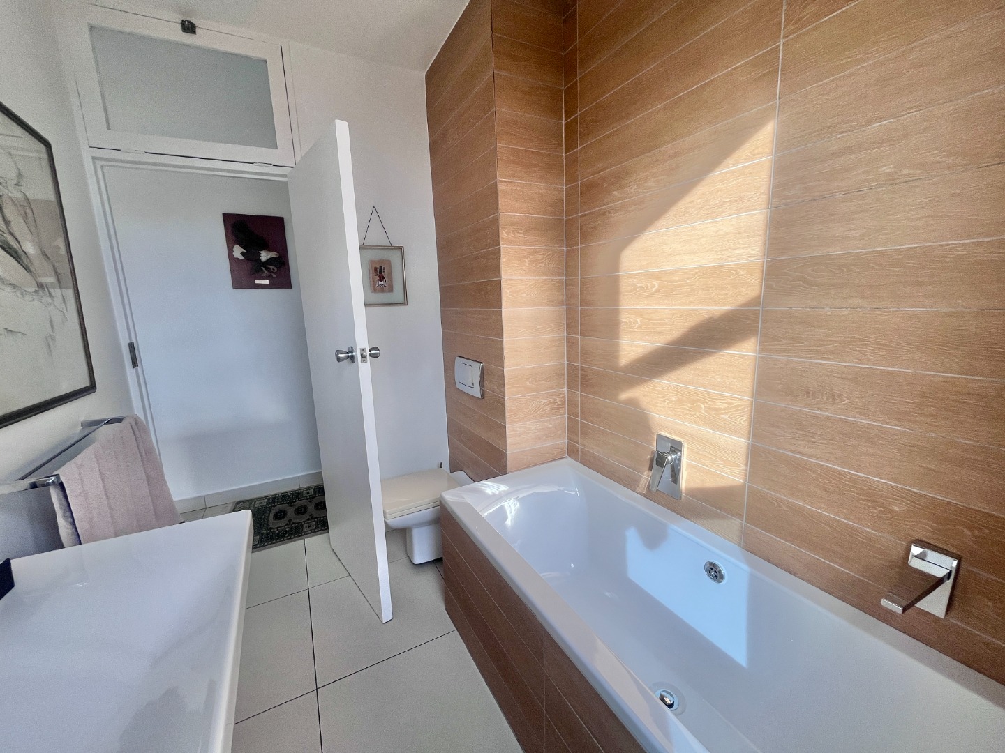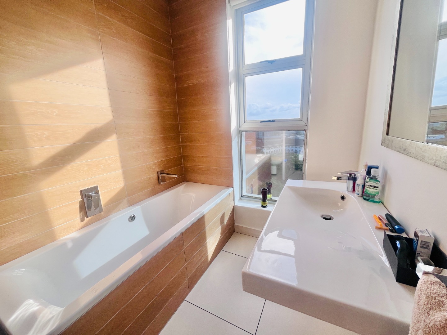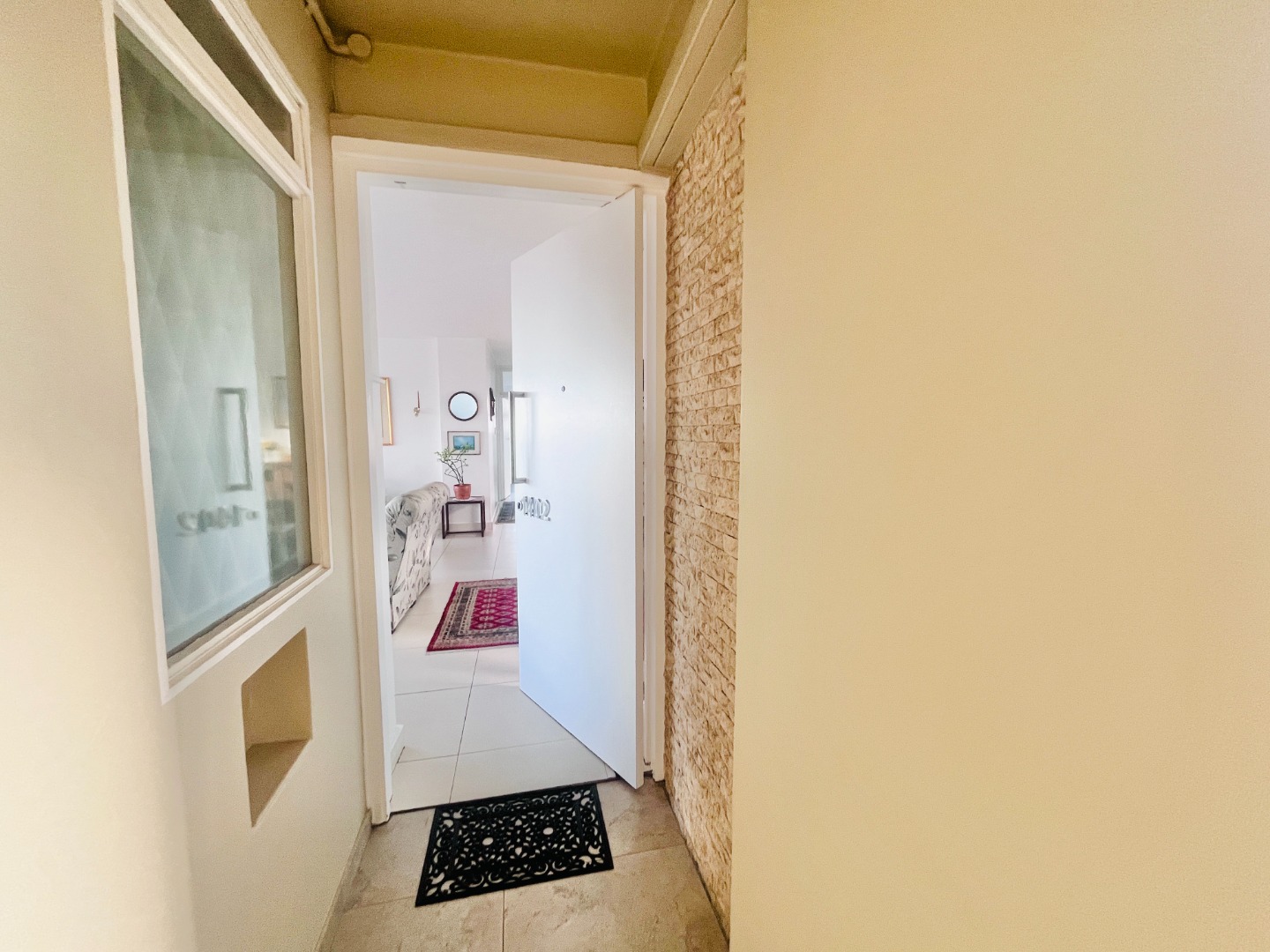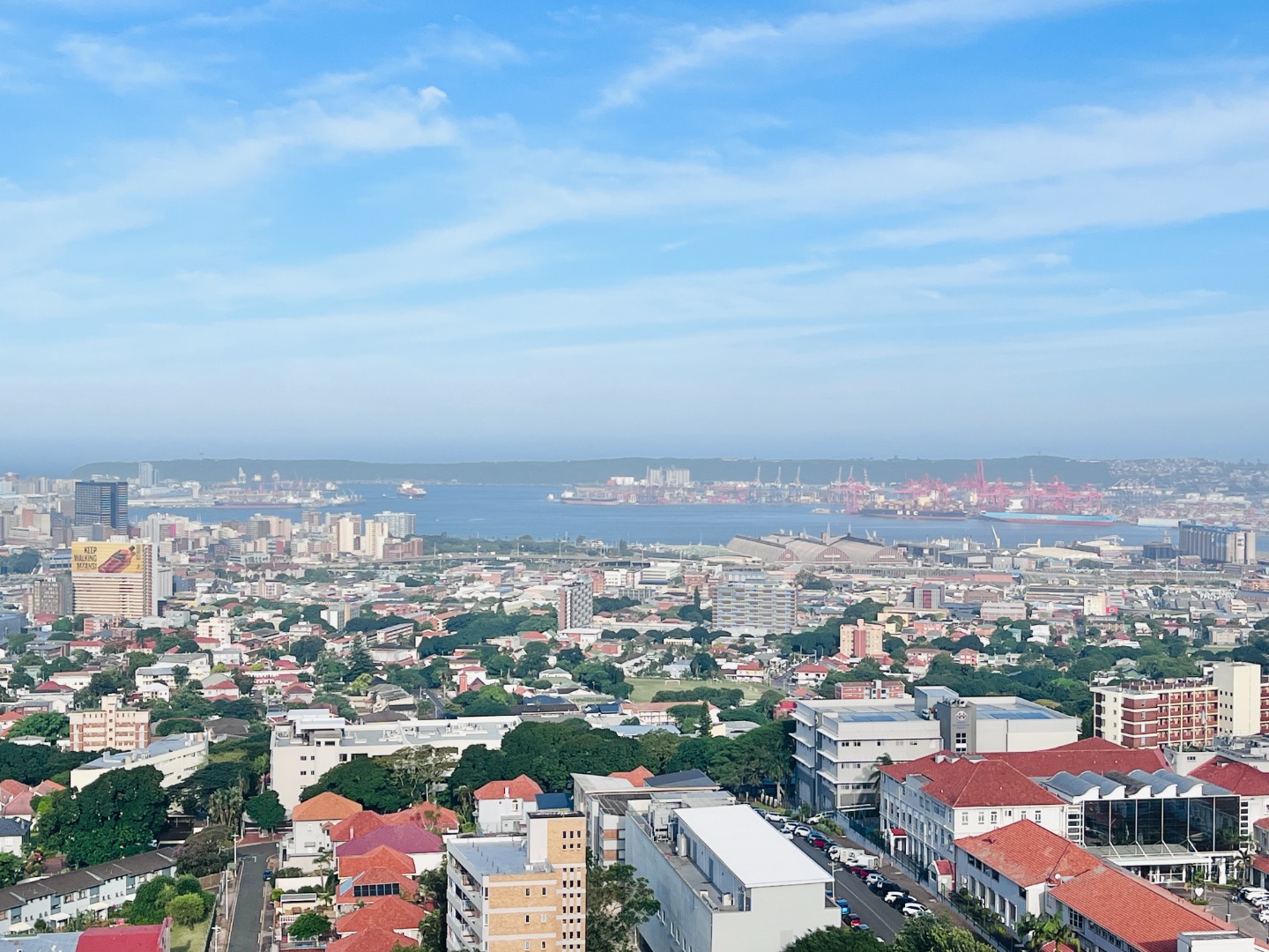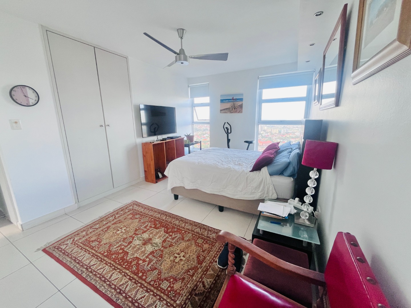 Open-plan kitchen with ample cupboard space flows into a light-filled living area, where the views take centre stage. Air-conditioned, with sleek finishes, sliding windows and blinds throughout for a clean, minimalist feel.