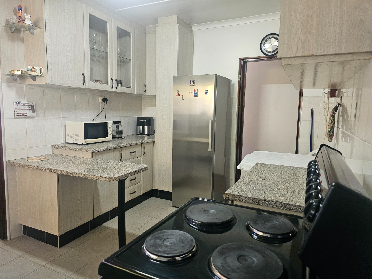 Upon entering you are met with seamless flow between the spacious lounge/ living and inter-leading dining room and fully fitted kitchen with wall-to-wall cabinetry and breakfast nook. The 4 spacious bedrooms-are designed to offer ample space and natural light- with wall -to wall cabinetry, ensuring a spacious living experience.