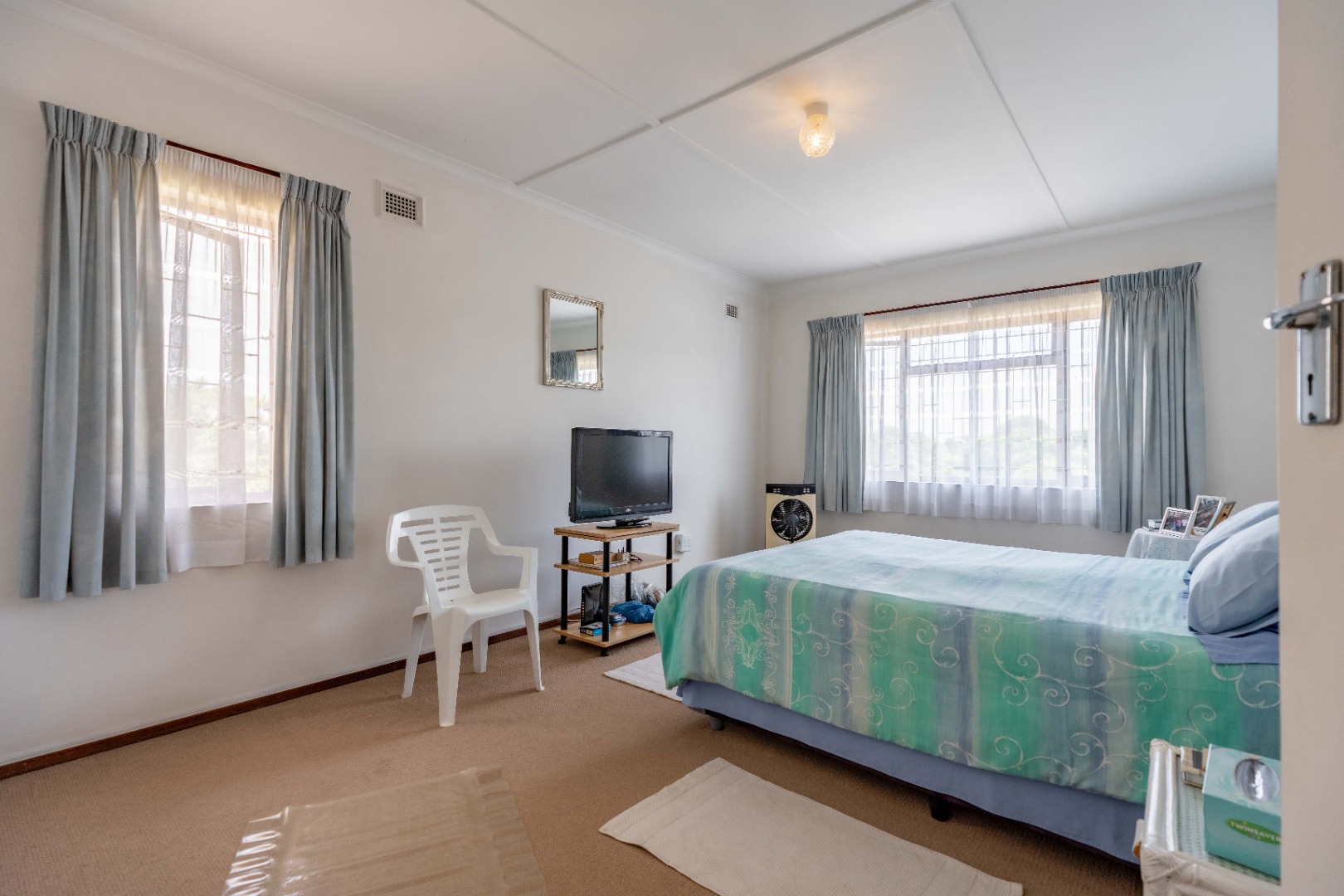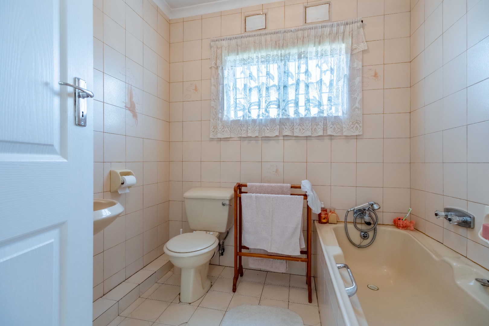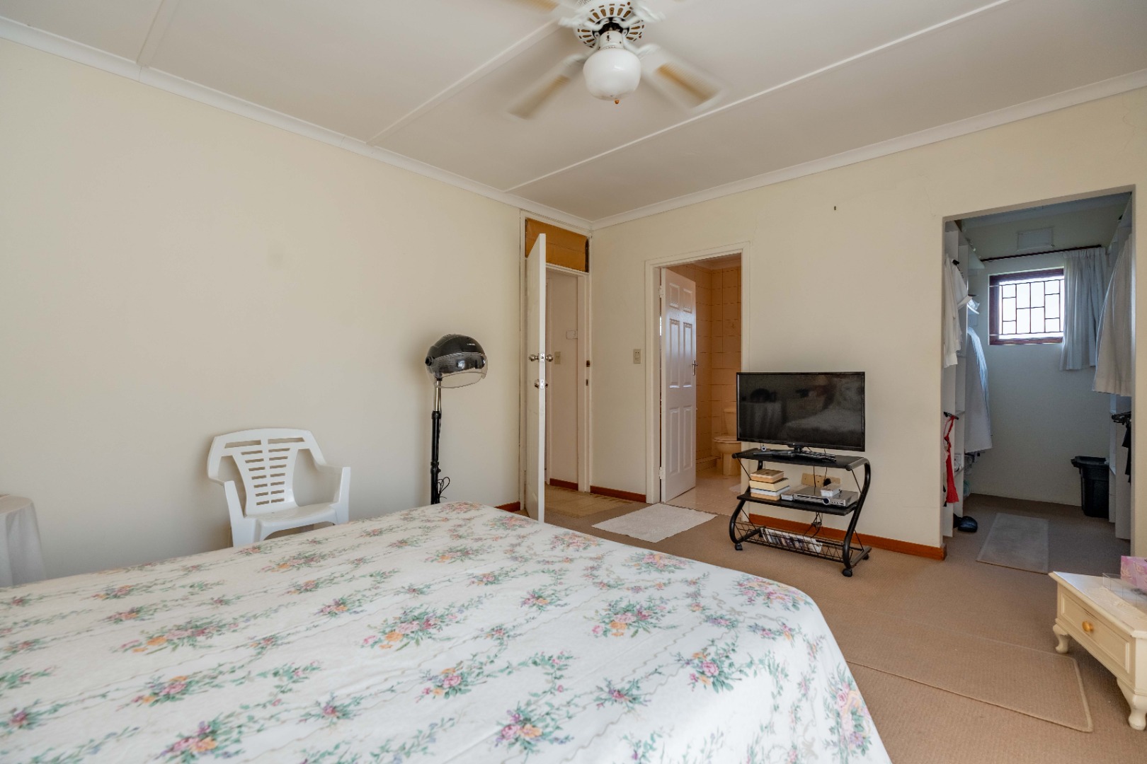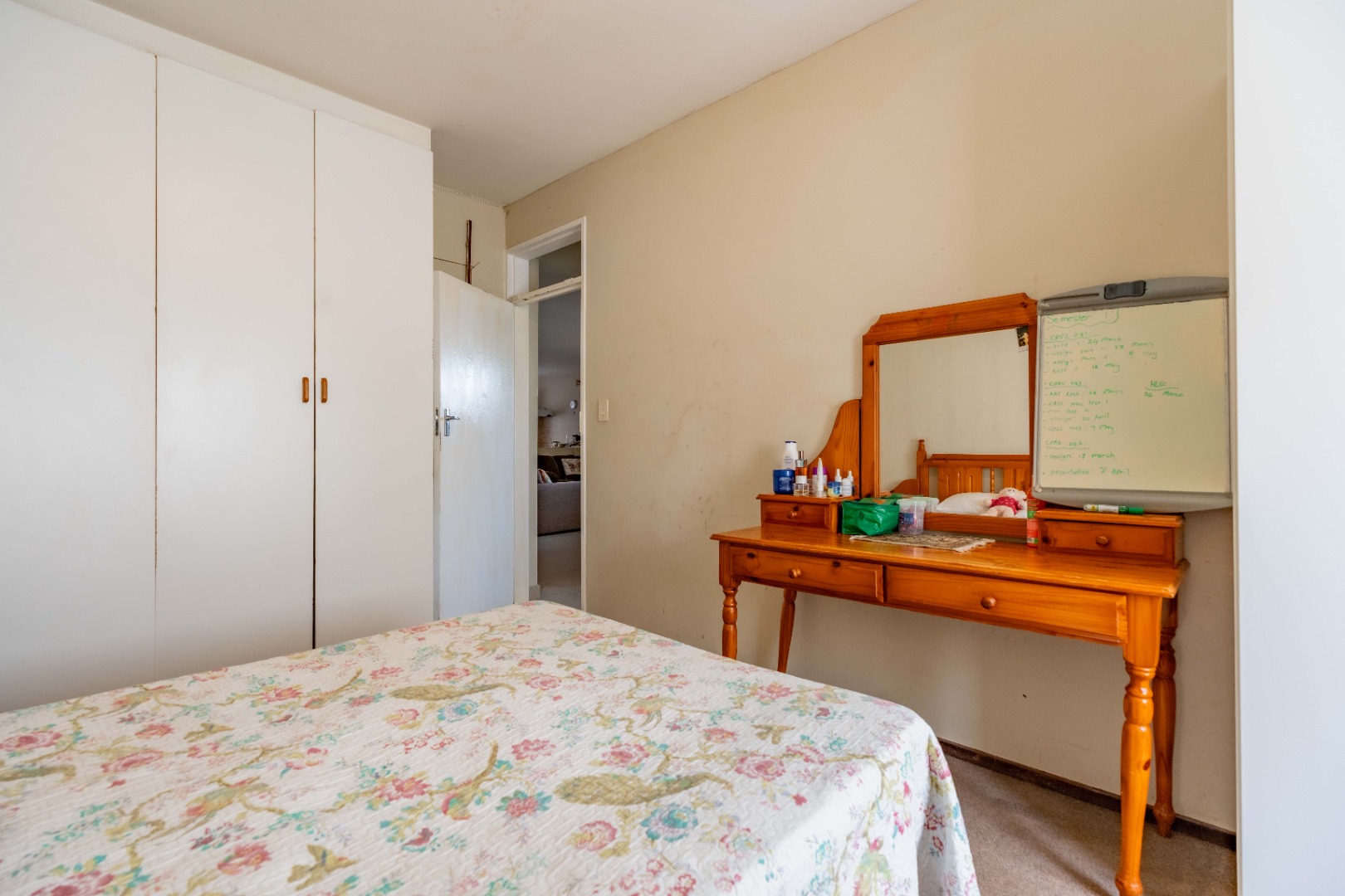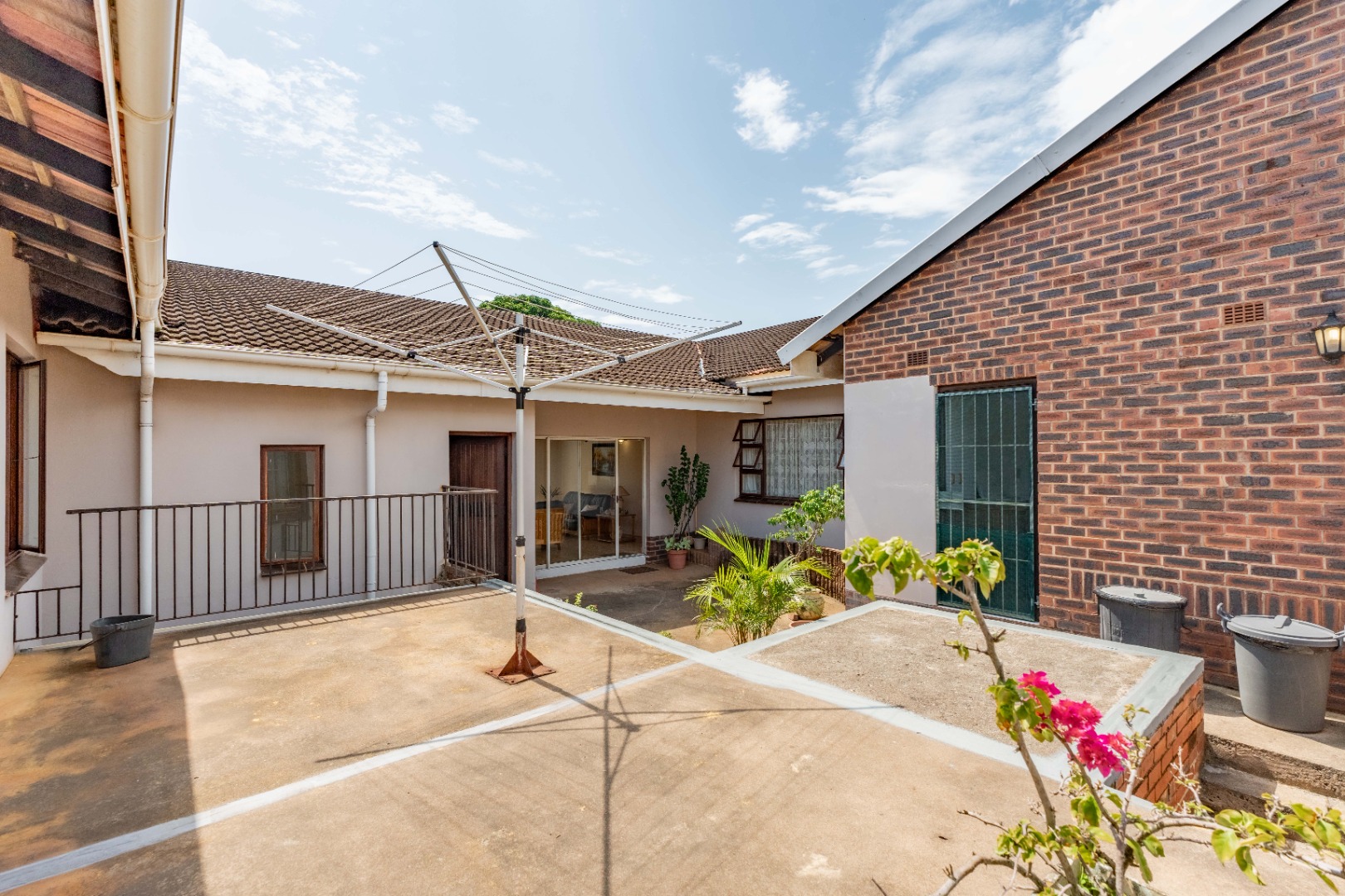 This spacious family home offers generously sized rooms and high ceilings, creating a wonderful sense of light and openness throughout. A welcoming entrance hall leads to the lounge and formal dining room or TV room, both of which open through doors to the lovely garden, perfect for indoor-outdoor living. The family dining room is conveniently positioned next to the kitchen, making entertaining effortless. The bright, well-designed kitchen features ample cupboards and counter space, a hob, double ovens, a double sink and a breakfast counter – ideal for relaxed, informal meals. A large scullery keeps the kitchen clutter-free and is plumbed for a washing machine, offering additional counter space, a double sink and plenty storage. From either the lounge or the scullery, you can access a charming courtyard – a delightful spot to soak up the winter sun.