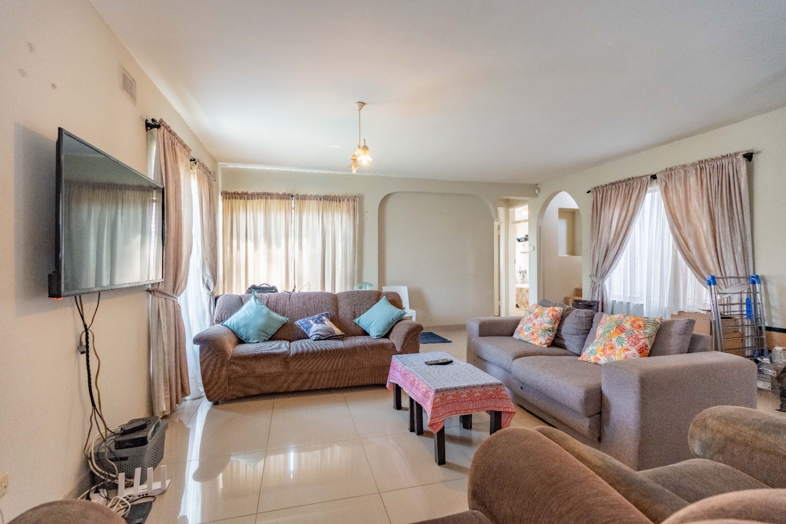 The home offers 3 generously sized bedrooms. The main is en suite, while the other 2 bedrooms share a full family bathroom. A separate guest toilet adds extra convenience. Adding exceptional value, a fully self-contained two-bedroom flat can be accessed from inside the home or via its own private entrance. It includes a full kitchen, a spacious lounge, 2 bedrooms and a shared bathroom – ideal for extended family, guests or income-generating rental. Set on large land, this versatile property has so much to offer and is well situated close to schools and shops, making everyday living easy and convenient.