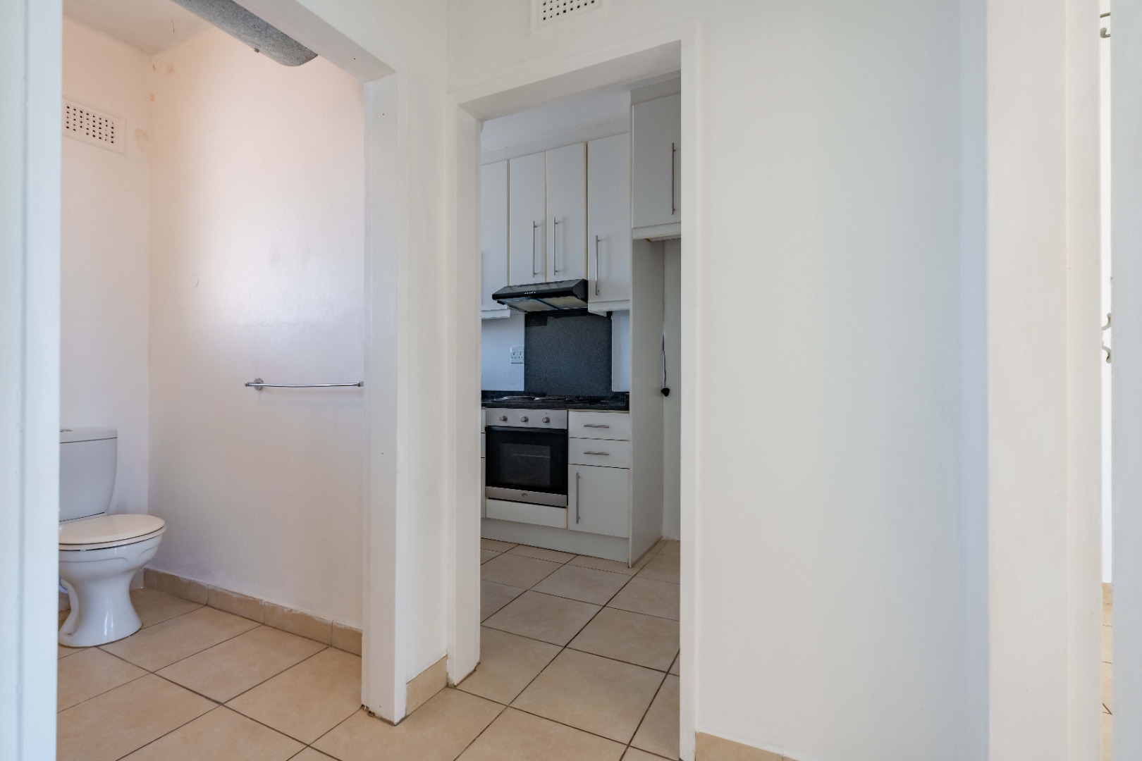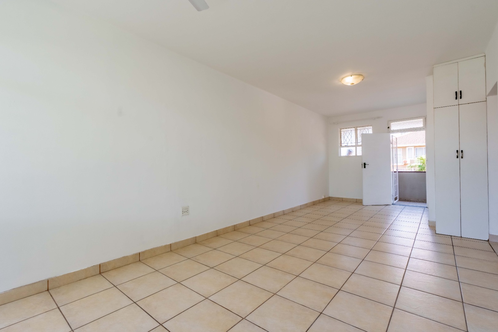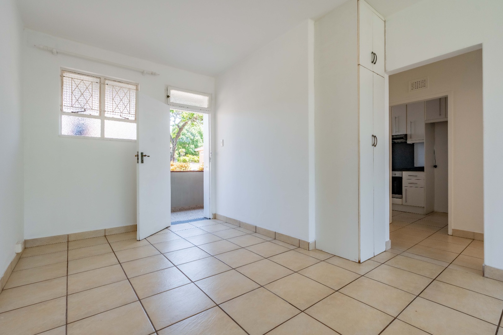 The generously sized bedroom is bathed in natural light and features built-in cupboards for seamless storage. A neat, modern bathroom with a shower completes this inviting home.