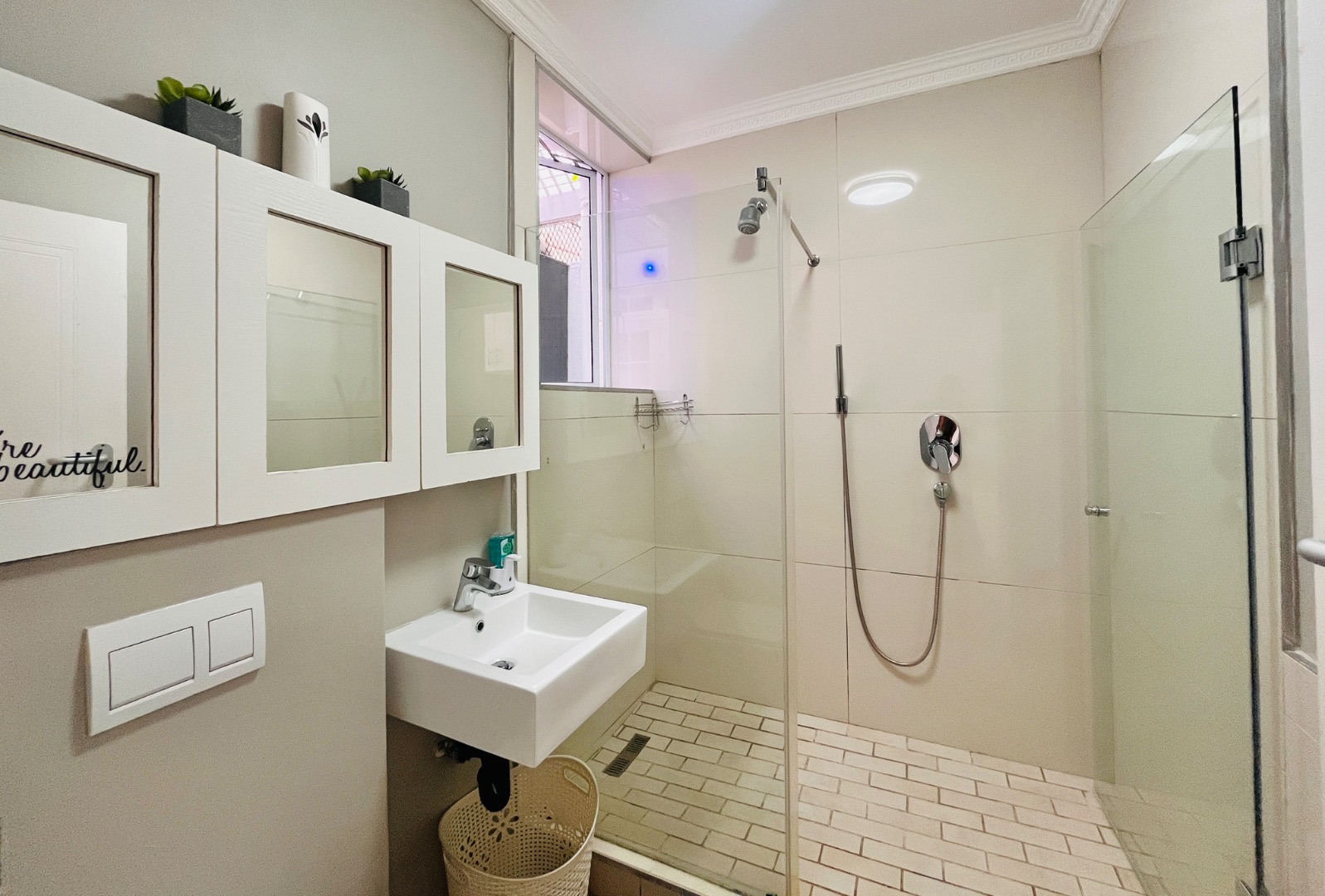 Both bedrooms are well sized, featuring ample built-in cupboards and their own modern, en-suite bathrooms.