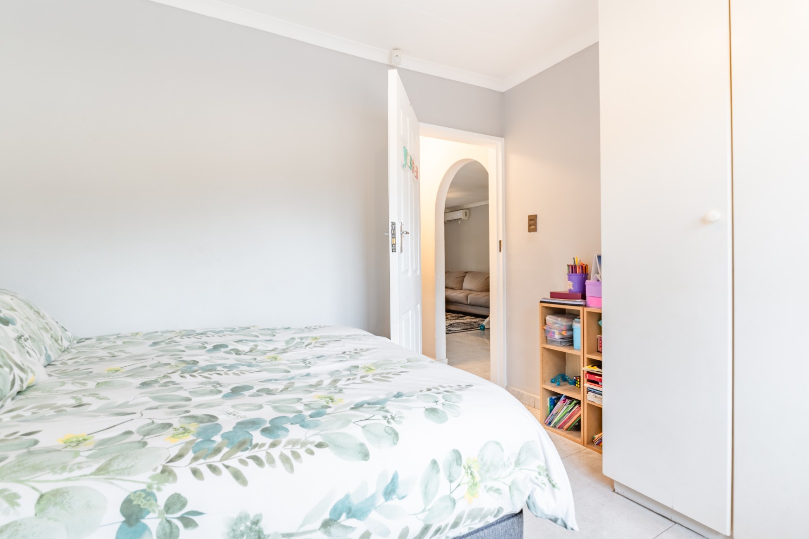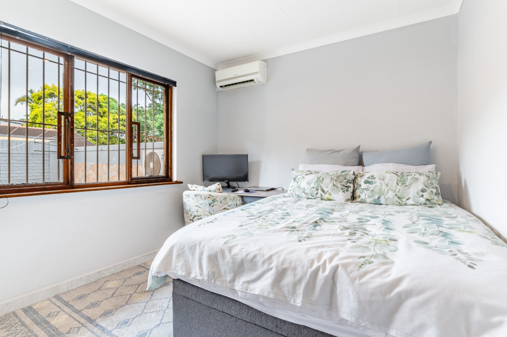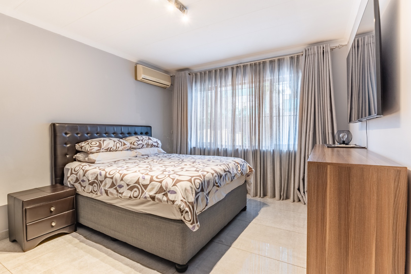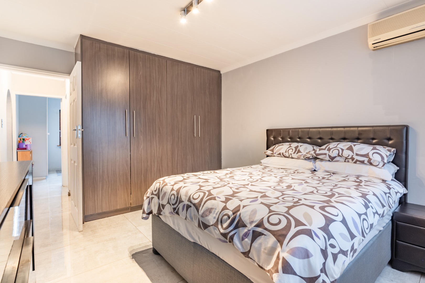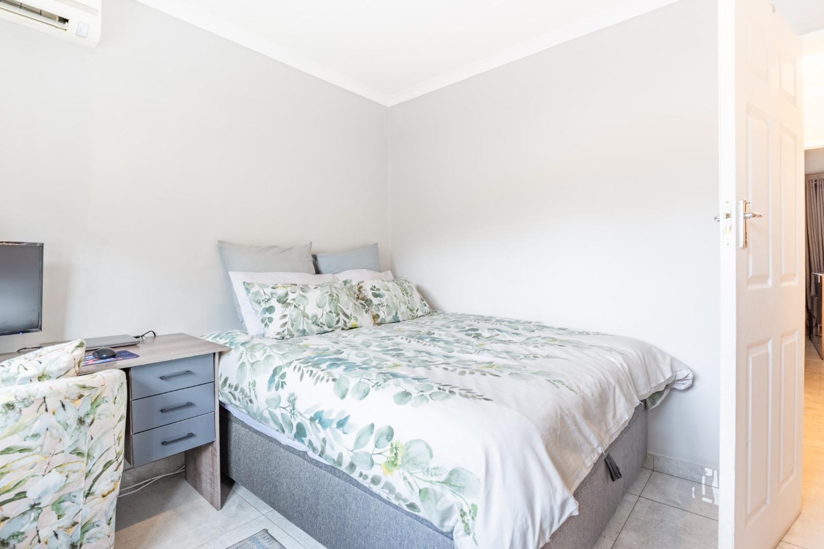 The unit features two well-sized bedrooms with sleek, modern finishes and a joining bathroom, with air-conditioning and tiles throughout for low-maintenance, easy living.