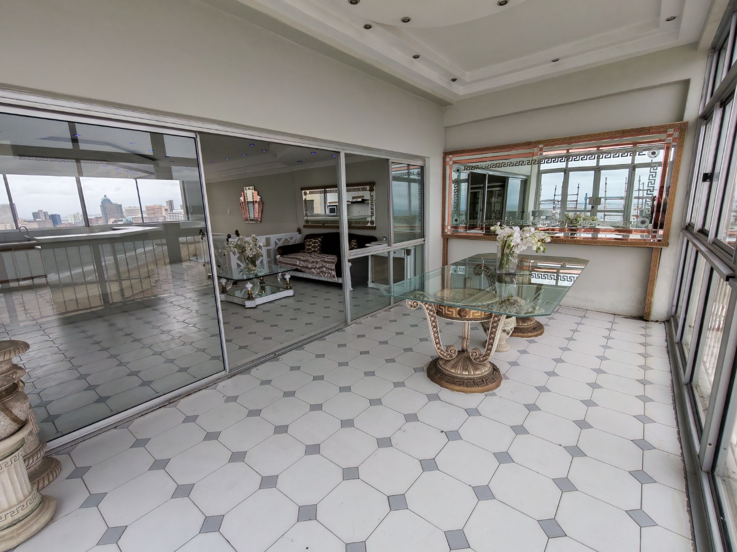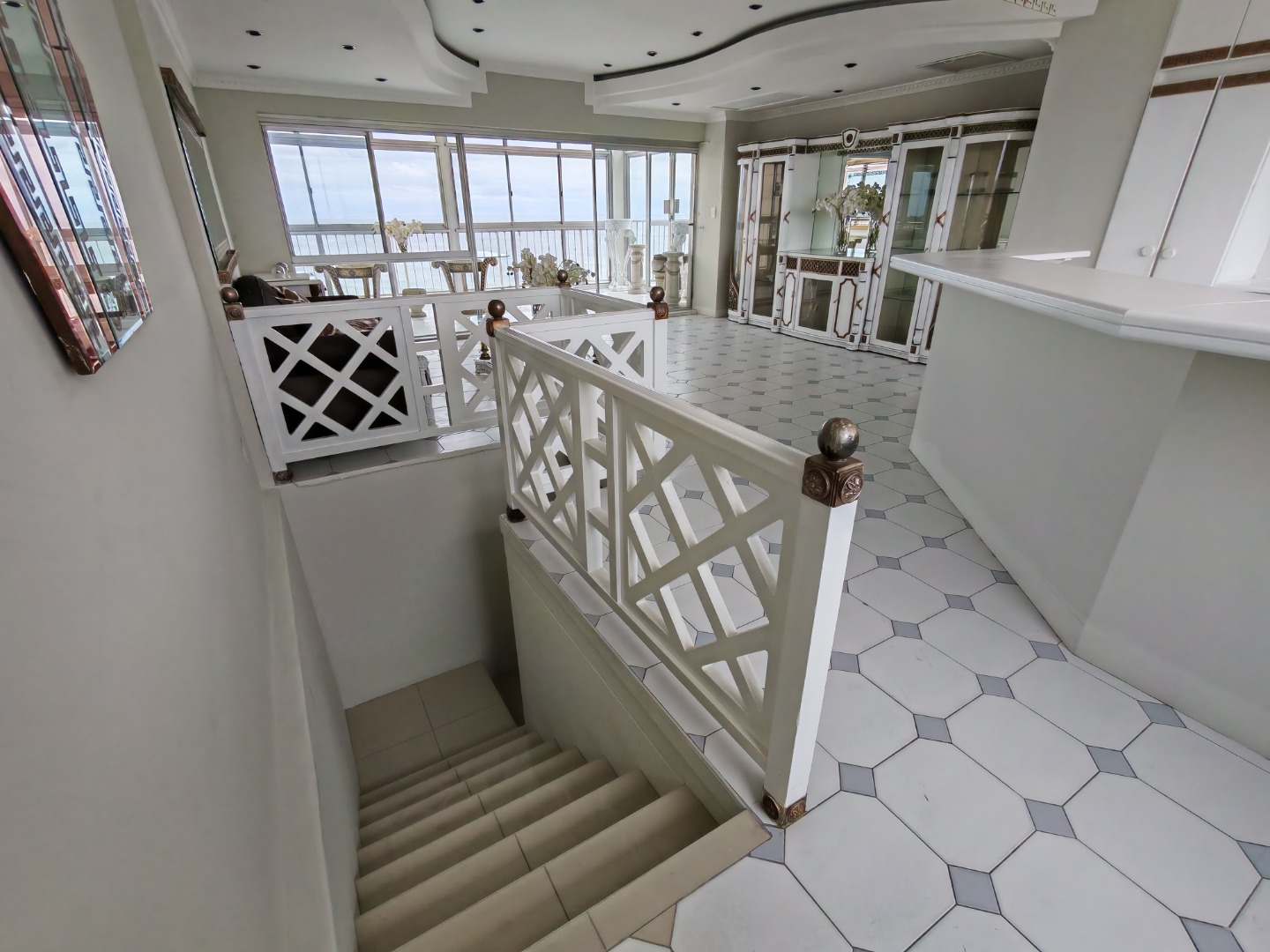 Two identical penthouses side by side can either be combined to make one expansive home or can be maintained as two individual apartments. Together, the residence boasts a thoughtfully designed open-plan layout, featuring two distinct kitchens, two dining rooms, and two lounges, offering versatile living arrangements and ample space for entertaining. Large windows throughout flood the home with natural light and frame the stunning vistas. Modern decorative ceilings with recessed lighting enhance the sophisticated ambiance, while a spacious bar counter adds to the entertainment potential.