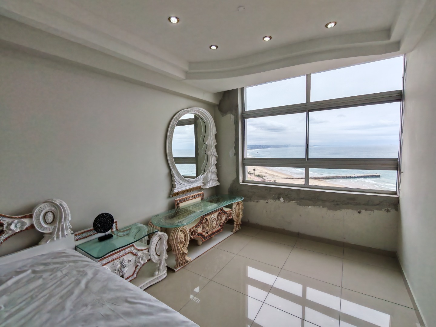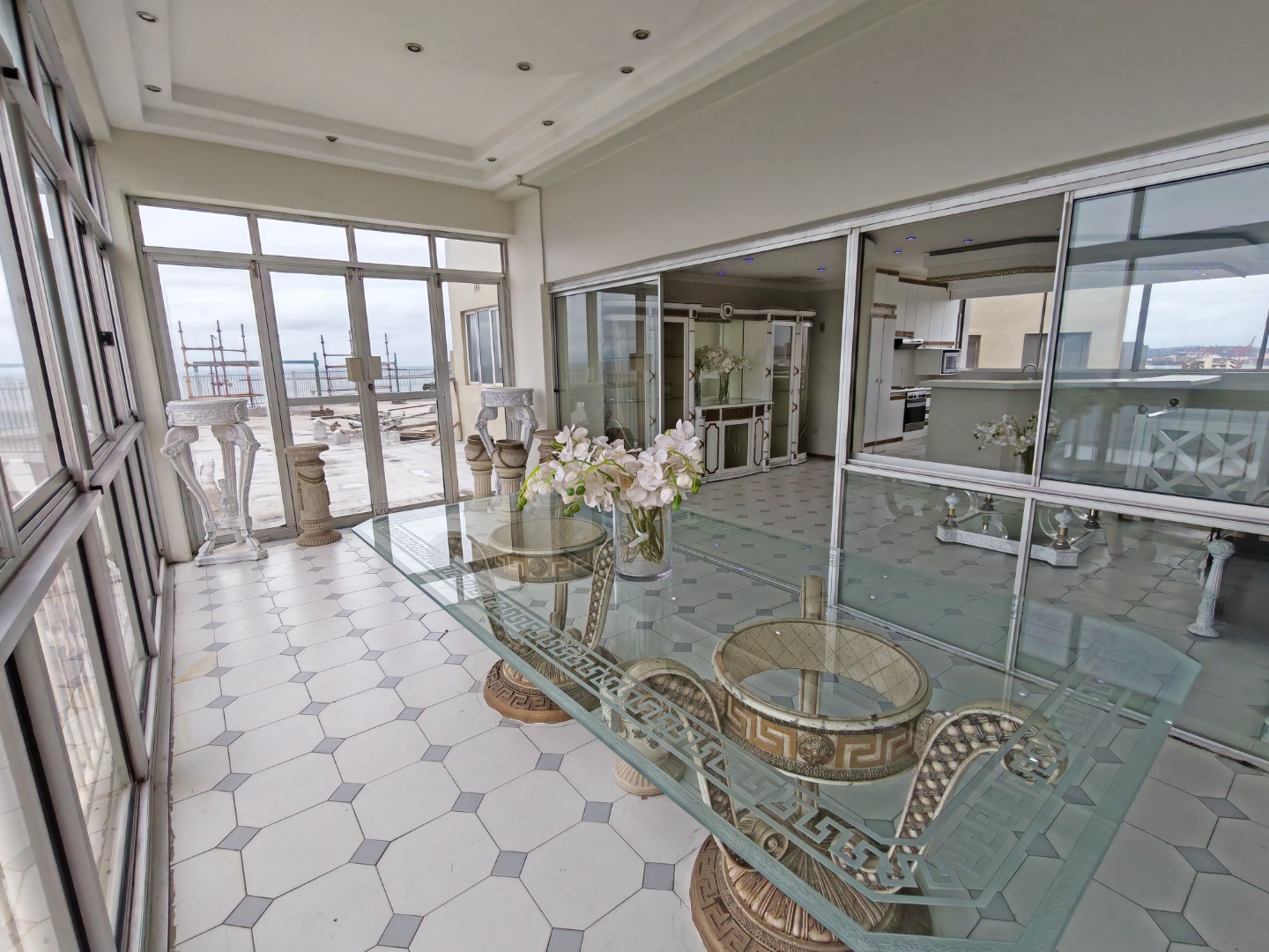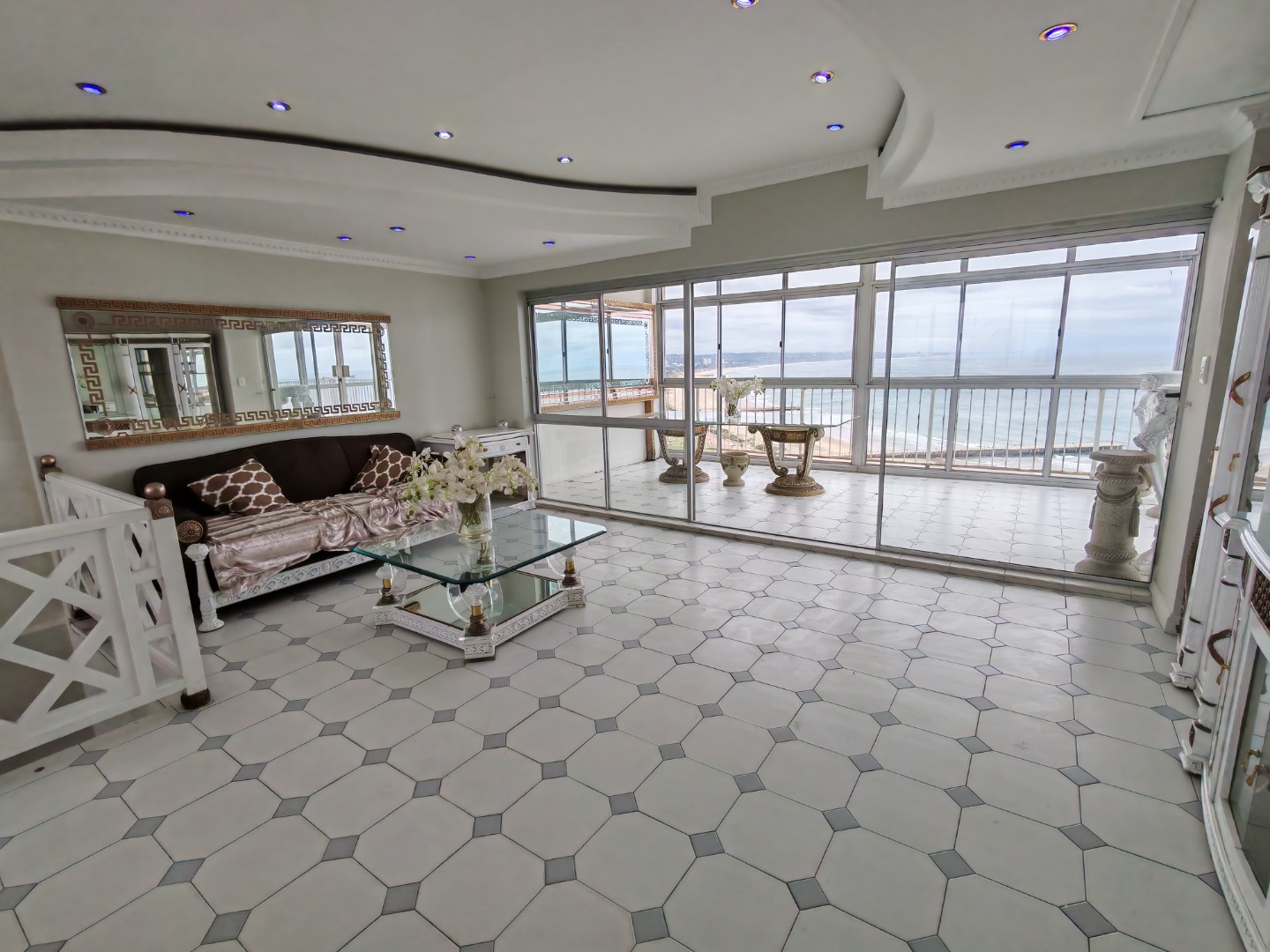 Discover an exceptional coastal lifestyle in this expansive 242 sqm penthouse residence in Marine Sands, perfectly positioned in the vibrant North Beach area of Durban. This remarkable property offers breathtaking panoramic sea, beach, city, and port views from its high-floor vantage point, providing a dynamic backdrop to everyday living. With direct access to a long sandy beach and a palm-lined promenade, residents can enjoy unparalleled beachfront recreation right at their doorstep.