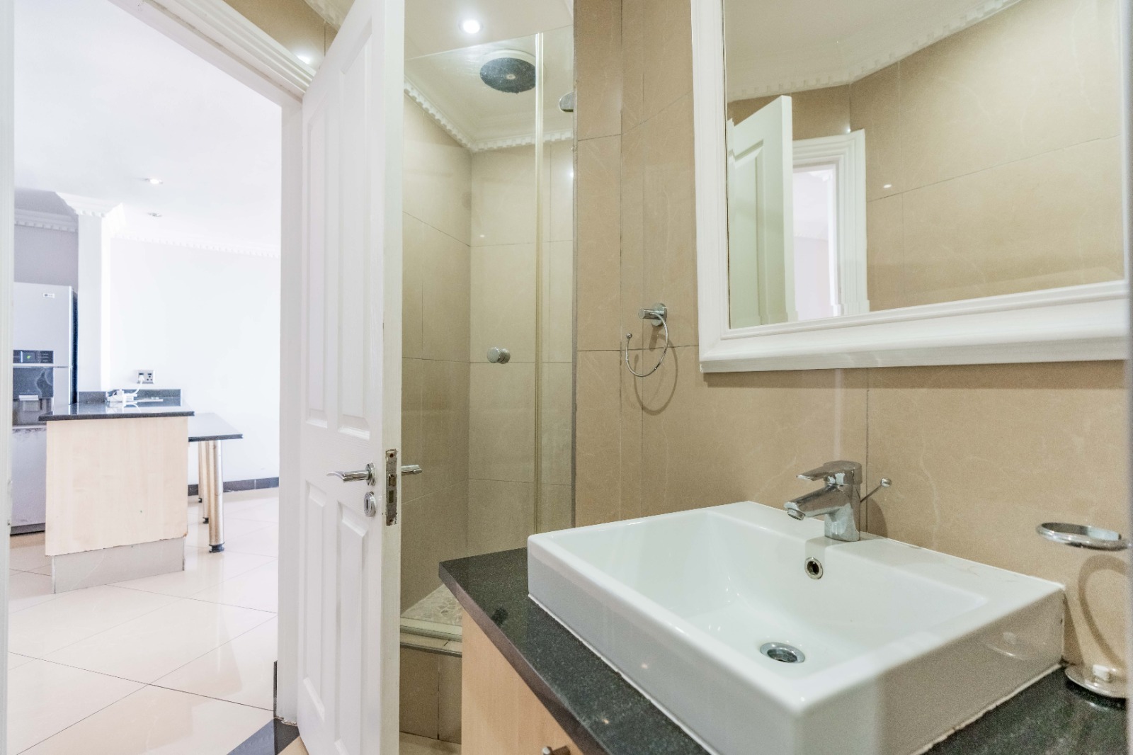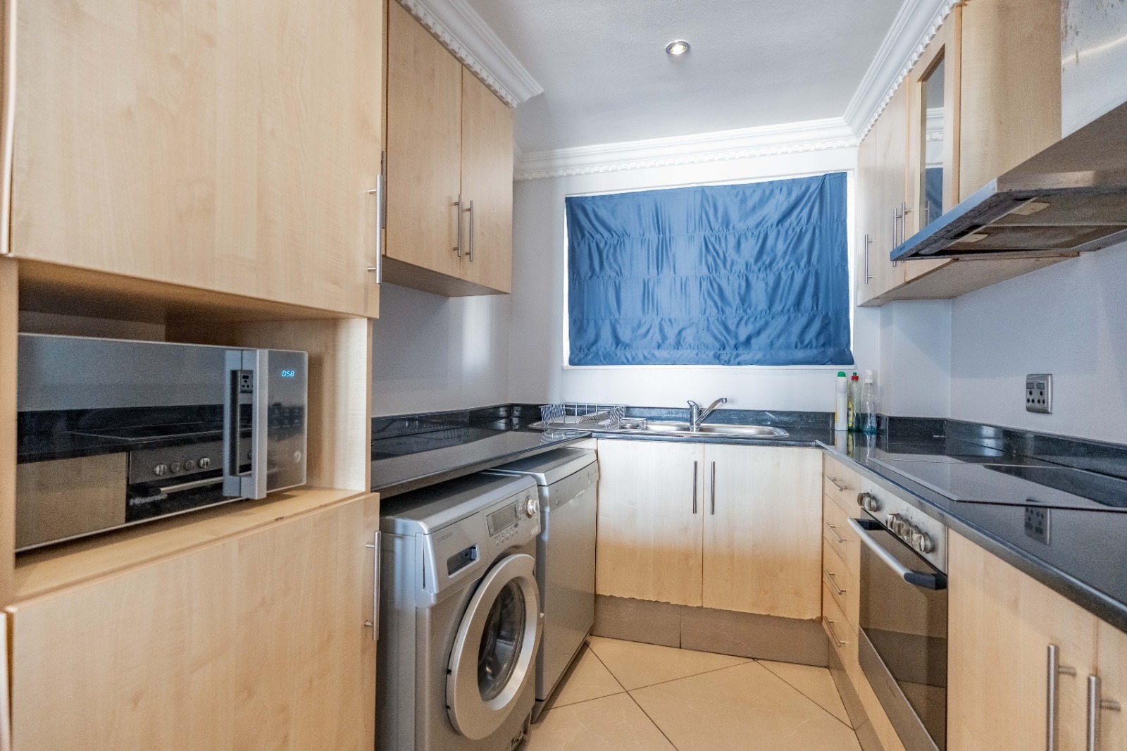 The apartment comprises two comfortable bedrooms and two well-appointed bathrooms, including one en-suite that leads out onto the private balcony, offering privacy and convenience. Each space is designed for relaxation, complementing the contemporary feel of the main living areas.