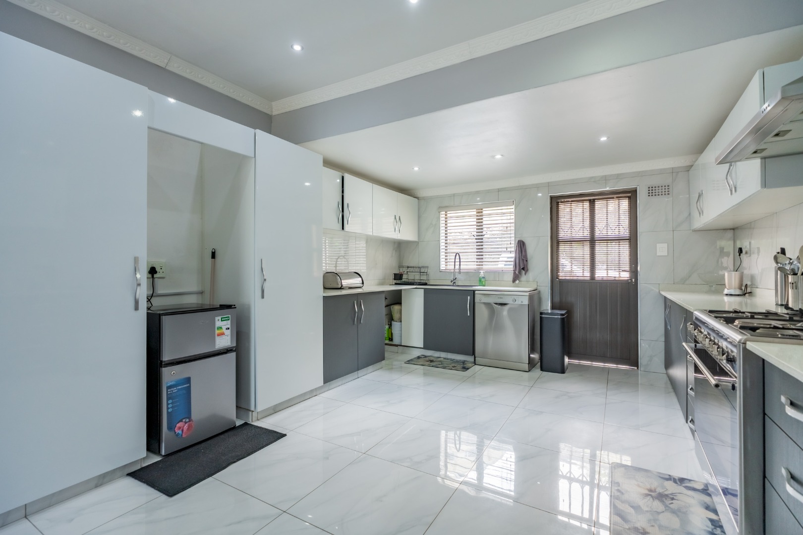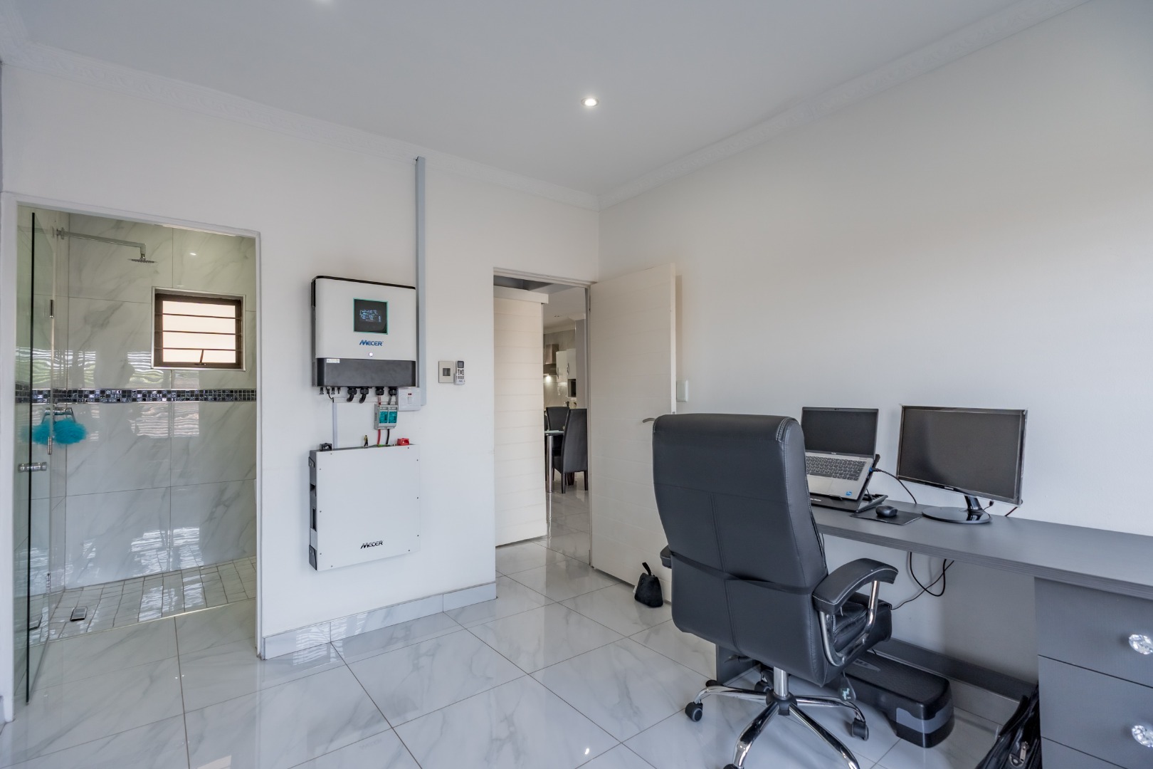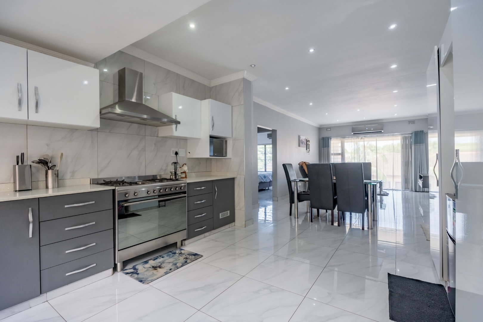 The sleek, modern kitchen is fitted with premium appliances and elegant cabinetry, making it as functional as it is visually striking. Every detail has been thoughtfully curated, with brand-new, contemporary furniture included, allowing you to move in and enjoy immediately.