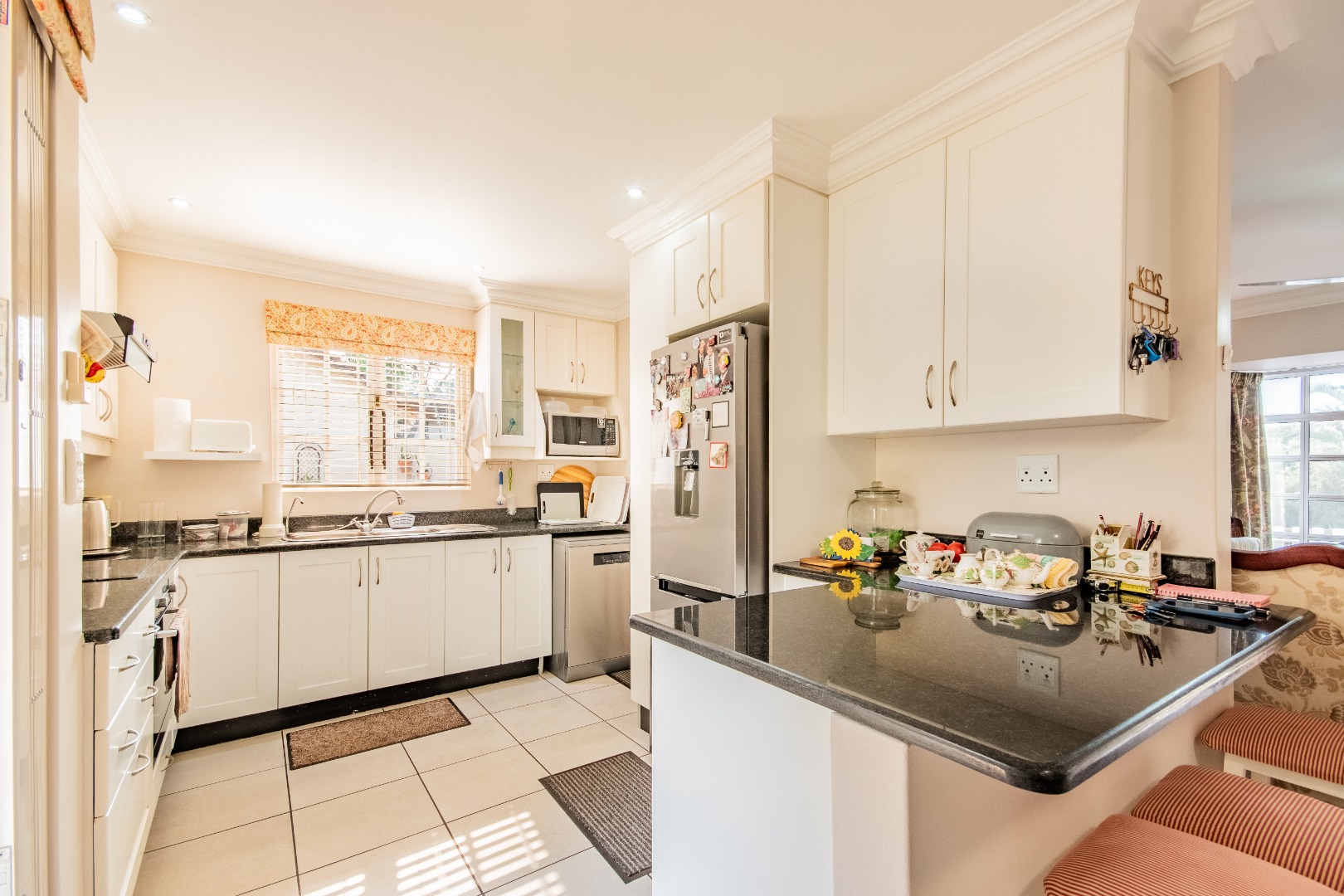 The living and dining areas invite easy flow, while the neat, granite-topped kitchen is ready for everything from quick breakfasts to weekend baking with the grandkids. And whether you're hosting a braai with friends or enjoying your morning coffee in peace, the home’s two private entertainment patios — front and back — offer the flexibility and serenity to suit any mood or moment.