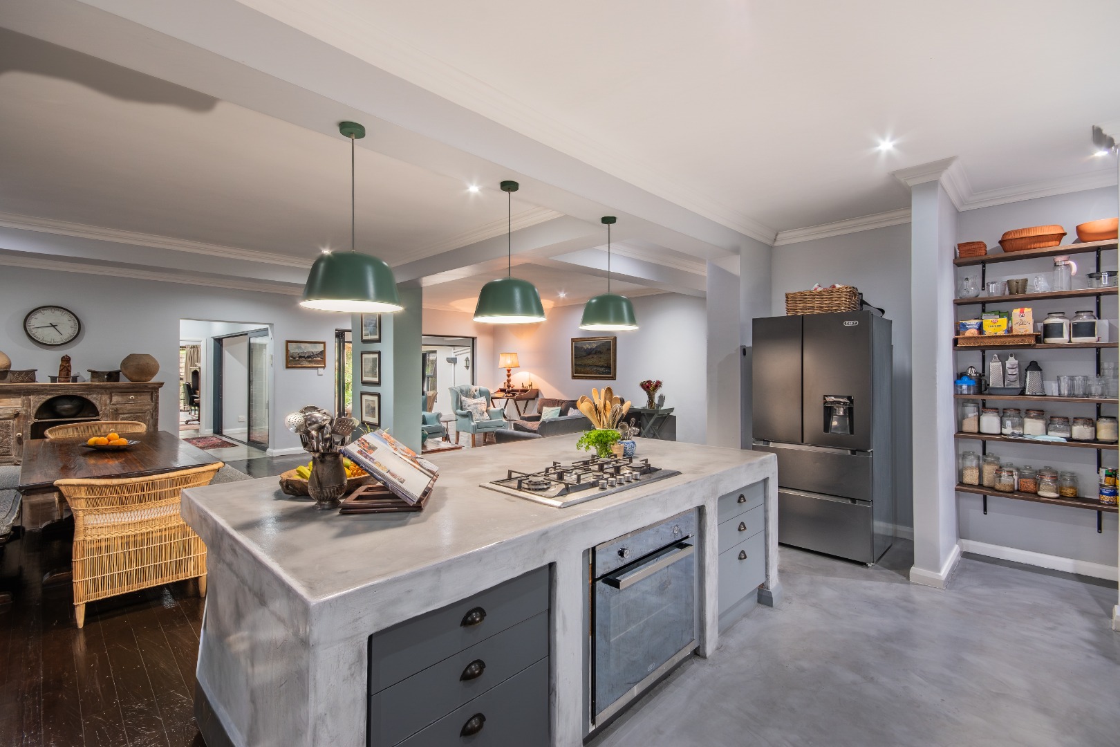Polished concrete floors stretch out beneath you. Above, soaring ceilings give the space volume and light. The open-plan layout has been masterfully designed to create flow — both in energy and movement — from the two sophisticated lounges to the formal dining area, all perfectly anchored by oversized sliding and stack doors that connect the indoors to the outdoors.