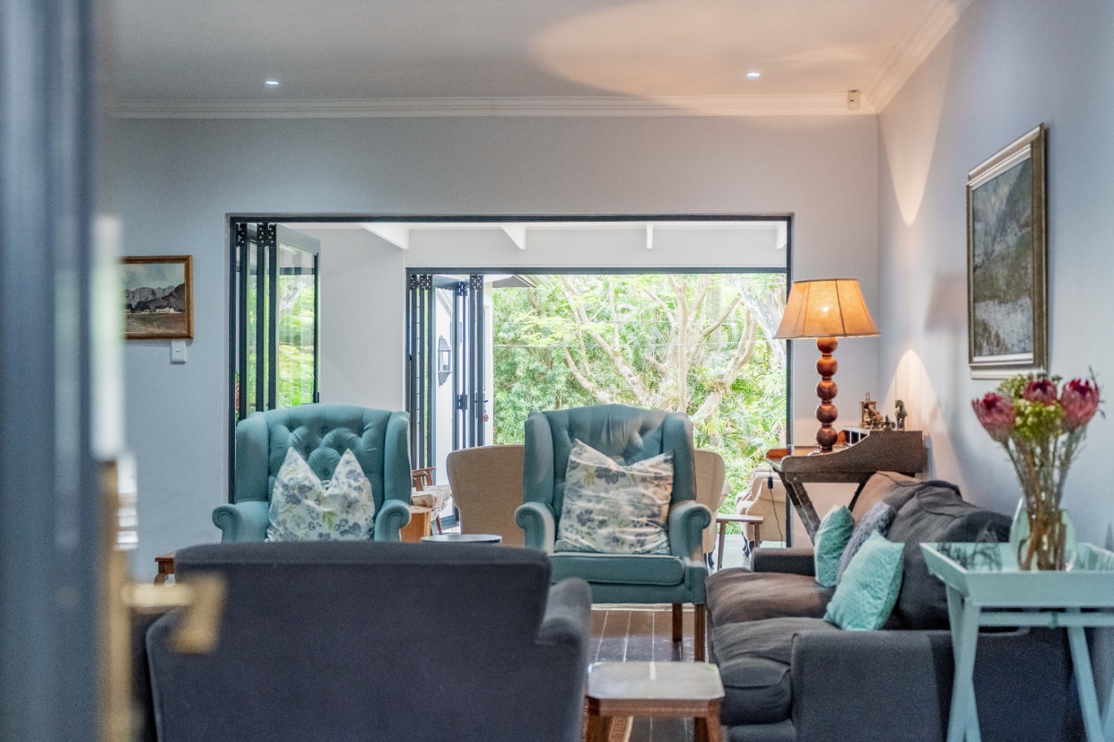 Those doors open onto a private garden retreat — mature trees, a tranquil water feature, and a covered patio made for al fresco dining or unwinding at the end of a long day. Whether you’re entertaining ten or enjoying your own quiet moment, this space adapts.