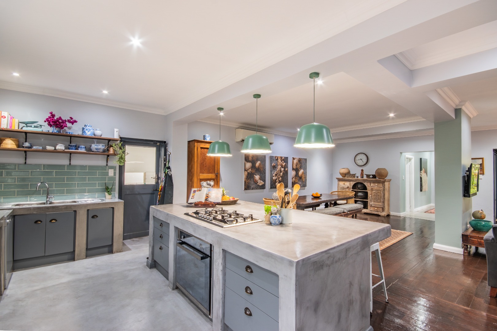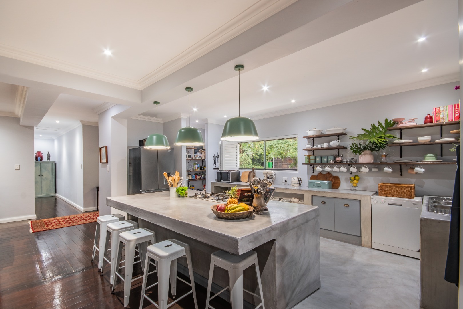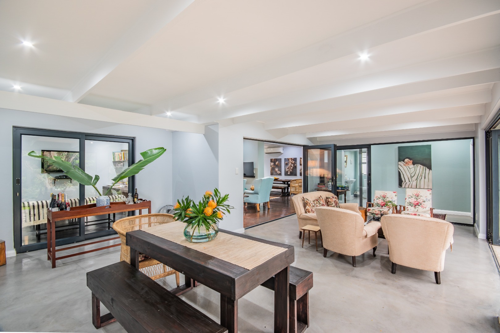 Polished concrete floors stretch out beneath you. Above, soaring ceilings give the space volume and light. The open-plan layout has been masterfully designed to create flow — both in energy and movement — from the two sophisticated lounges to the formal dining area, all perfectly anchored by oversized sliding and stack doors that connect the indoors to the outdoors.