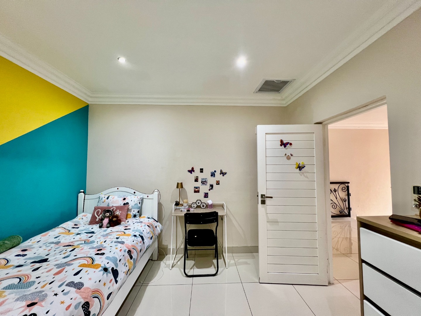 Four of the bedrooms are generously sized and all ensuite, ensuring privacy and comfort for every family member. The fifth bedroom offers versatility—perfect as an additional bedroom, prayer room, home office, or study.
