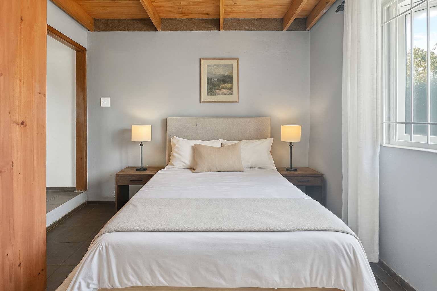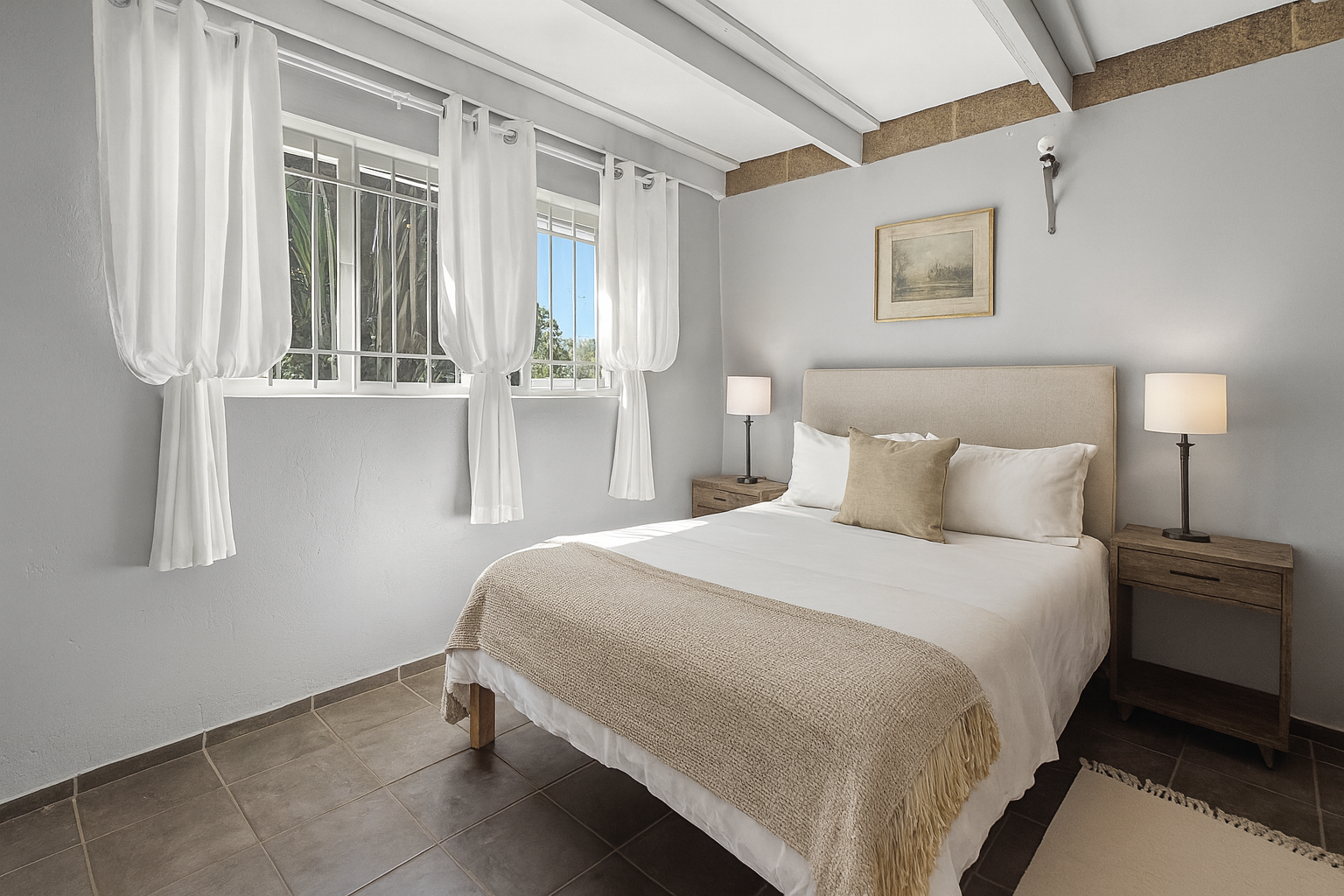 Discover this charming cottage-style home nestled on a sprawling 2391 sqm erf in the desirable suburban area of Crestview, Hillcrest. The property immediately captivates with its quaint exterior, dark tiled roof, and prominent chimney, all set within a large, sun-drenched grassy yard framed by mature trees, offering a private and serene ambiance. A temporary carport provides convenient off-street parking for multiple vehicles, complementing the well-maintained garden. Step inside to an inviting open-plan layout that seamlessly connects two lounges and a dining area, creating a spacious and airy feel. Unique vaulted thatched ceilings with exposed beams add character and architectural interest throughout the main living spaces. A rustic wooden staircase serves as a focal point, leading to an upper level. The U-shaped kitchen is both functional and stylish, featuring dark wood cabinetry, granite countertops, and a large window that bathes the space in natural light, perfect for culinary pursuits. This delightful residence offers two comfortable bedrooms, each designed as a peaceful retreat. The bright main bedroom boasts neutral decor, exposed ceiling beams, and windows fitted with security bars for peace of mind. A single, well-appointed bathroom serves the home, ensuring comfort and convenience for residents. The expansive 2391 sqm erf provides abundant outdoor space for relaxation, recreation, or future landscaping projects, complemented by a charming garden. Practical features include a cozy fireplace for cooler evenings and ample parking with eight dedicated spaces, ensuring convenience for residents and guests alike. Security is enhanced with a perimeter fence and an access gate, while fibre connectivity ensures modern living and seamless internet access. The property also includes a dedicated study and additional storage. Key Features: * 2 Bedrooms, 1 Bathroom * 2 Lounges, 1 Dining Room * Open-plan living with thatched roof * Rustic wooden staircase * U-shaped kitchen with granite countertops * Expansive 2391 sqm erf * 8 Parking spaces * Fireplace * Fibre connectivity * Study and Storage