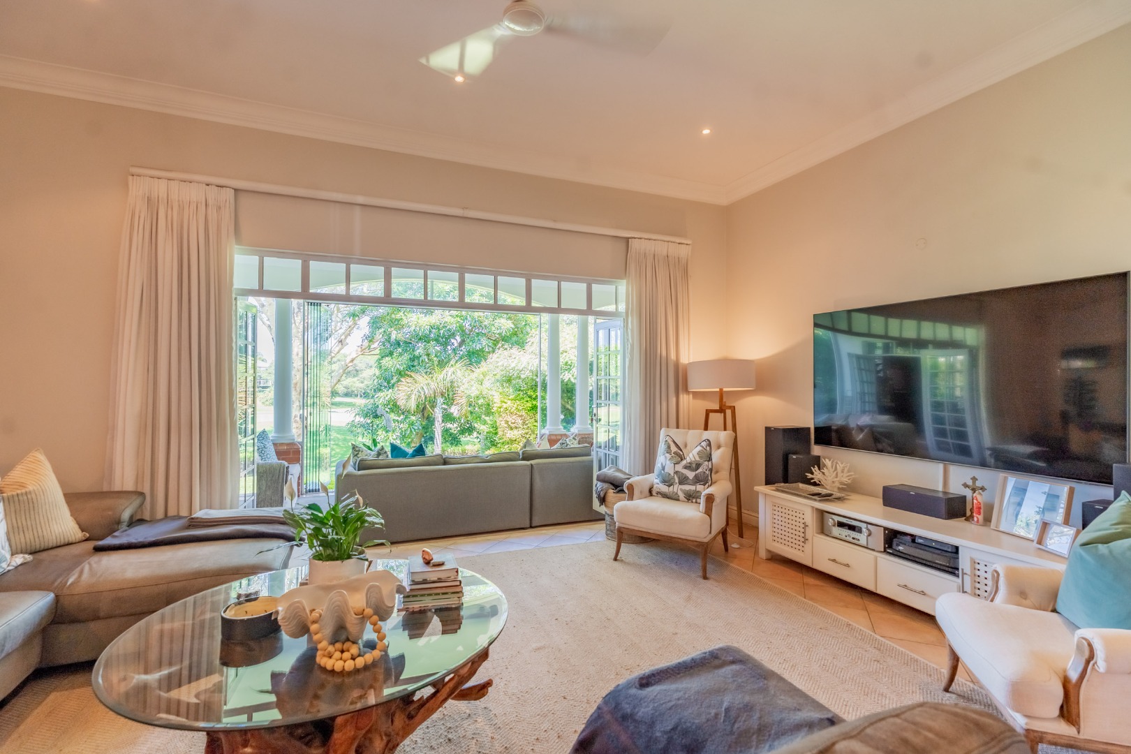 Set within the prestigious Mount Edgecombe Country Club Estate, this distinguished residence commands uninterrupted fairway views and delivers a lifestyle defined by scale, elegance and architectural presence. From the moment you arrive, the arched feature window and stately façade create an unforgettable first impression.