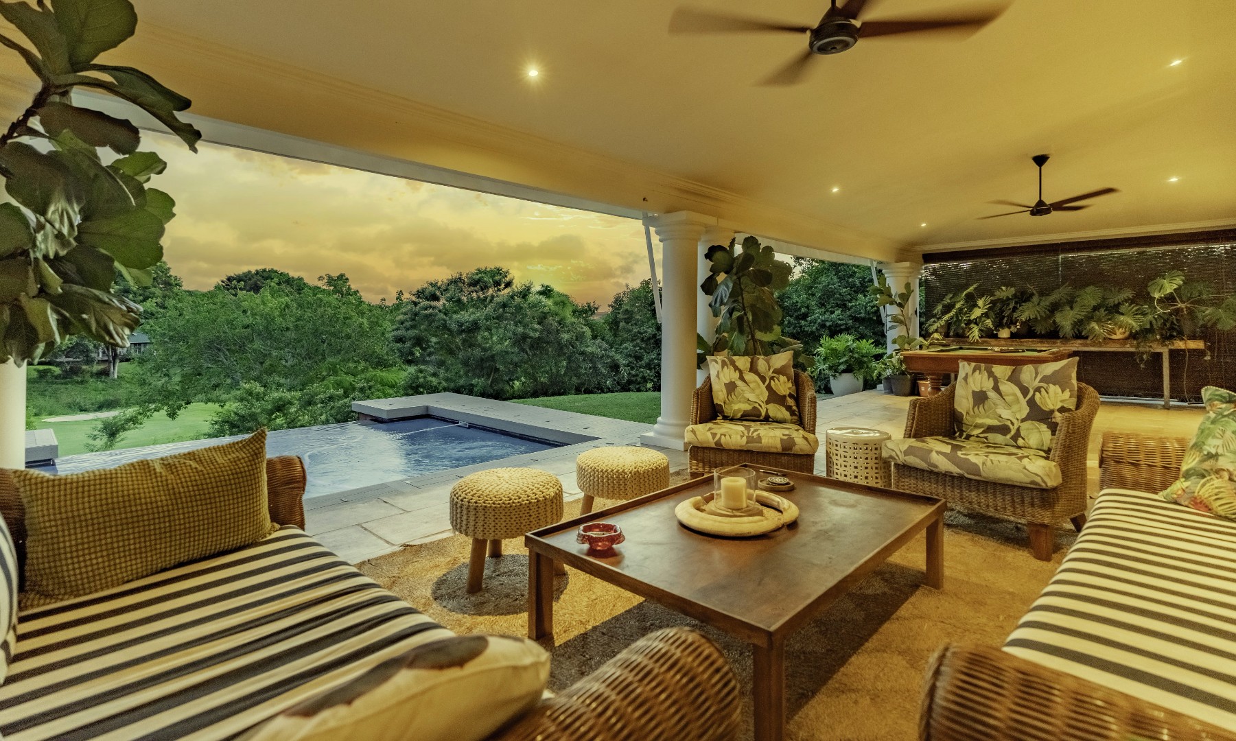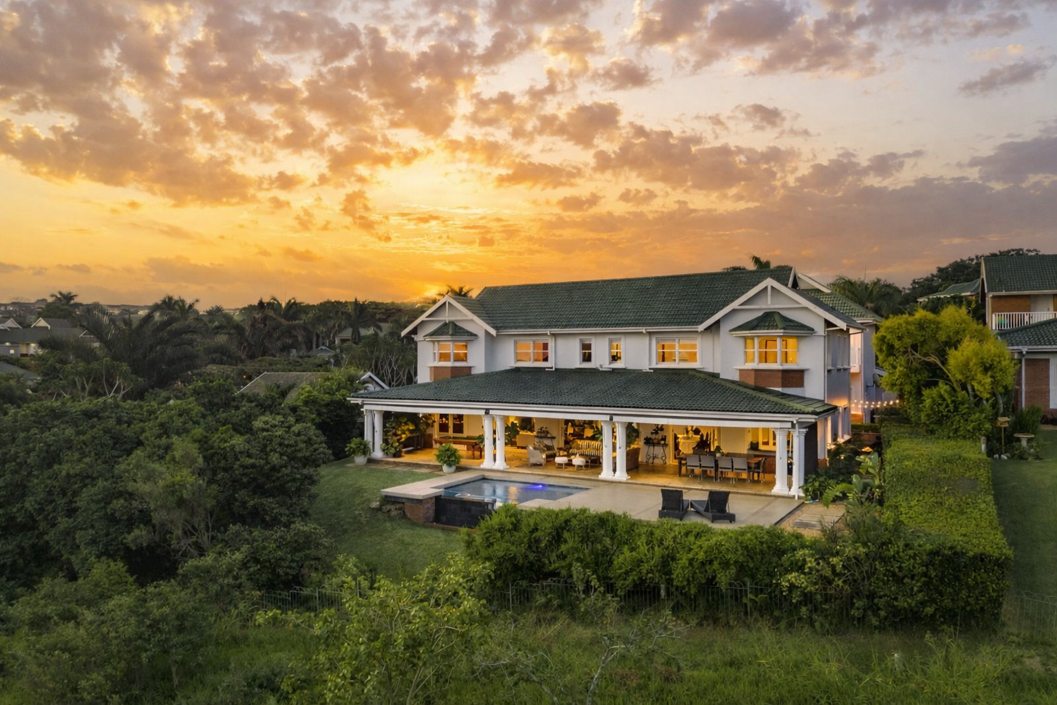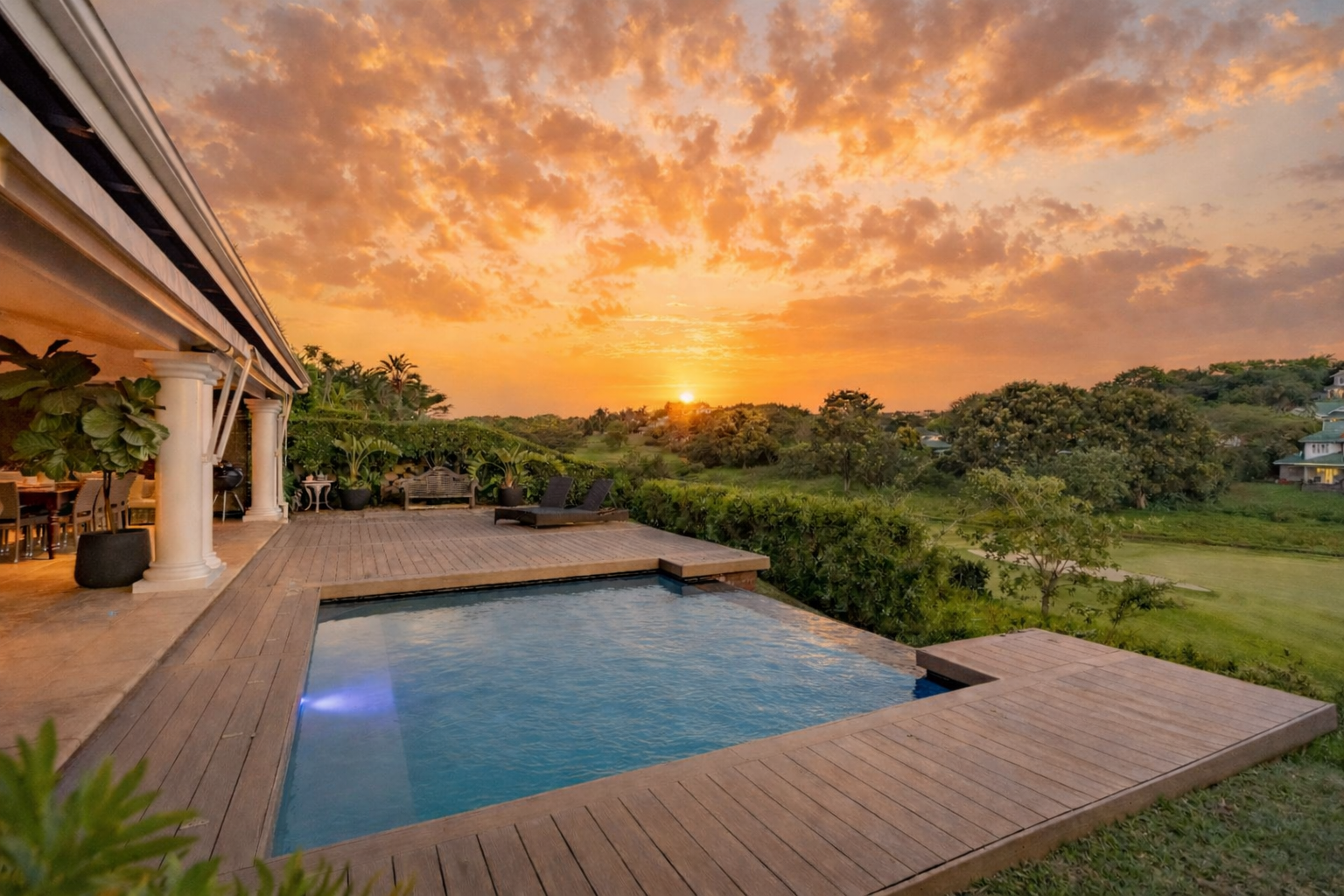 Set within the prestigious Mount Edgecombe Country Club Estate, this refined residence enjoys an elevated position with uninterrupted, sweeping views across the fairway. The home has been thoughtfully designed for effortless living and entertaining, with seamless transitions that allow each space to flow naturally into the next.
