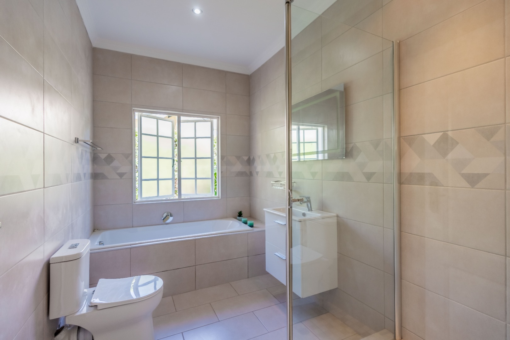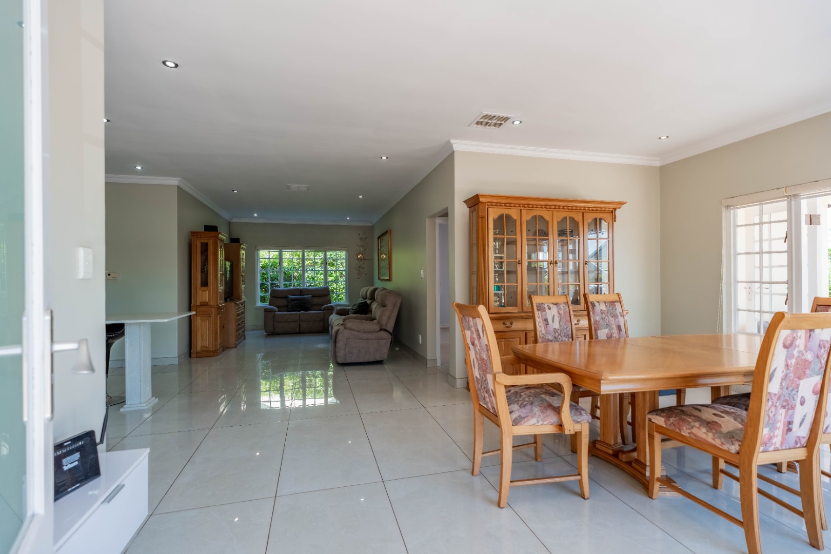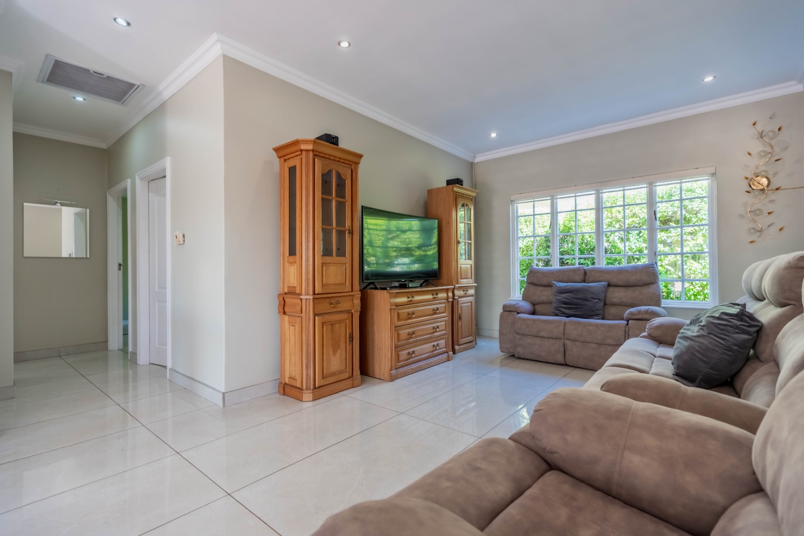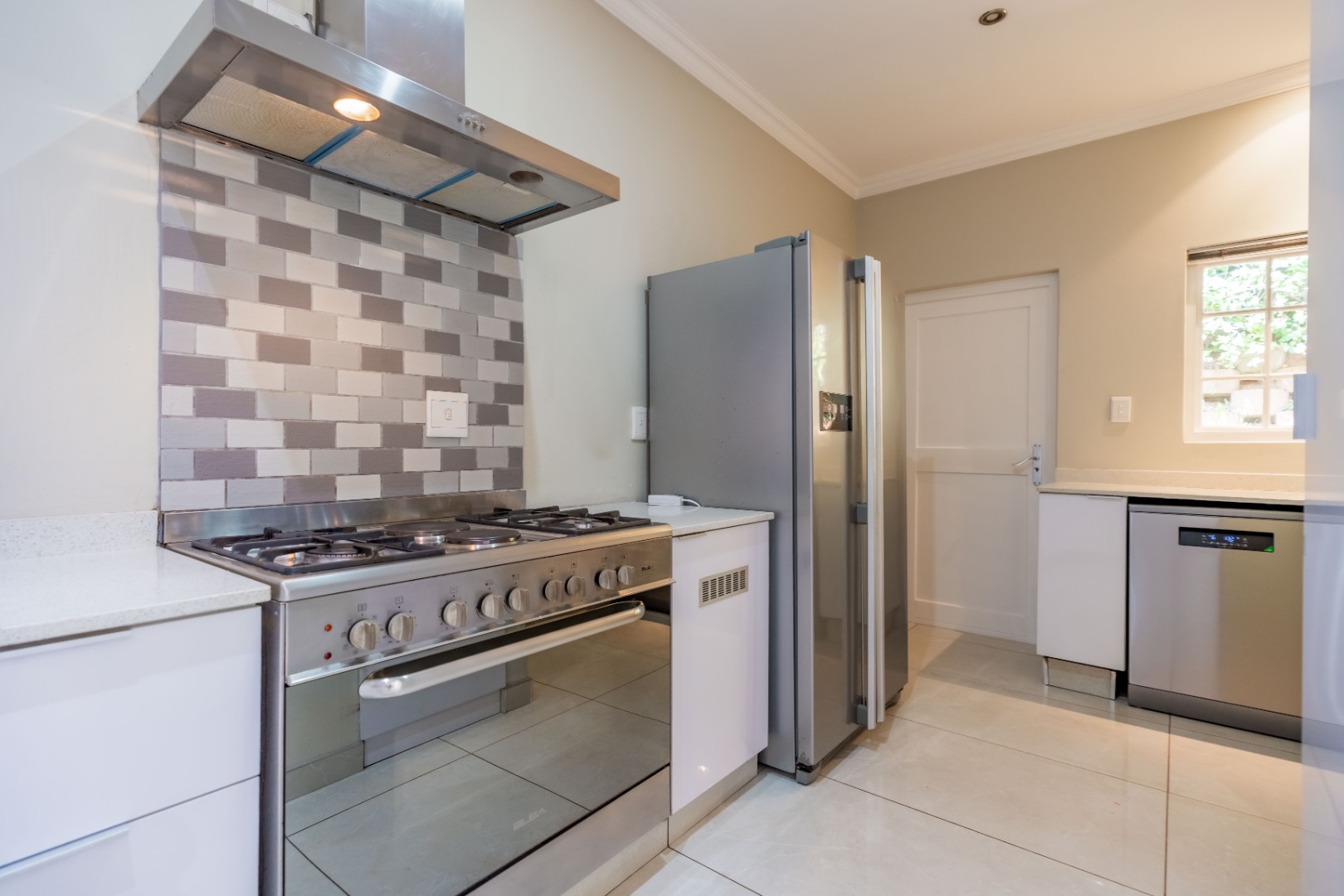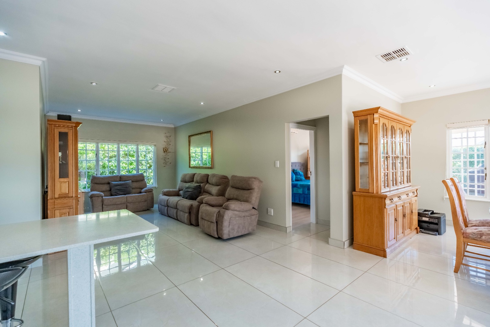 The sleek open-plan kitchen, complete with a separate scullery, flows effortlessly into generous living and dining areas, which open out onto a covered patio and private garden - the perfect space for entertaining or simply unwinding.