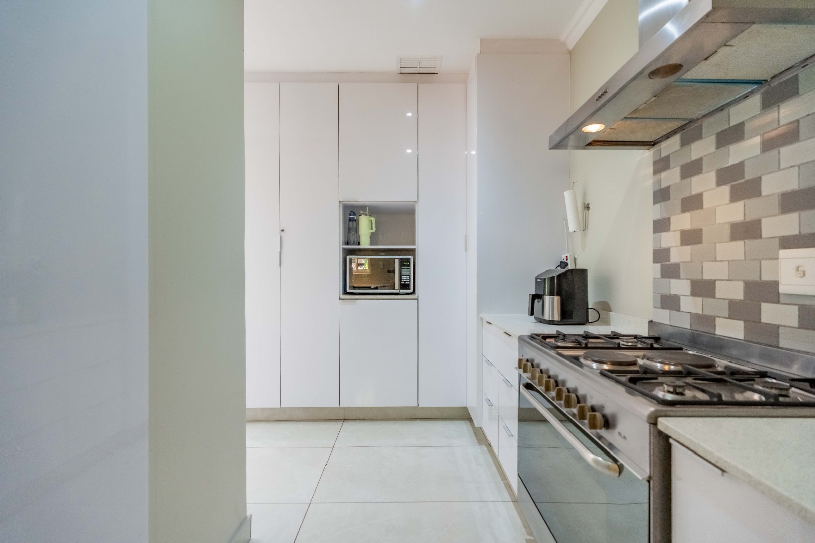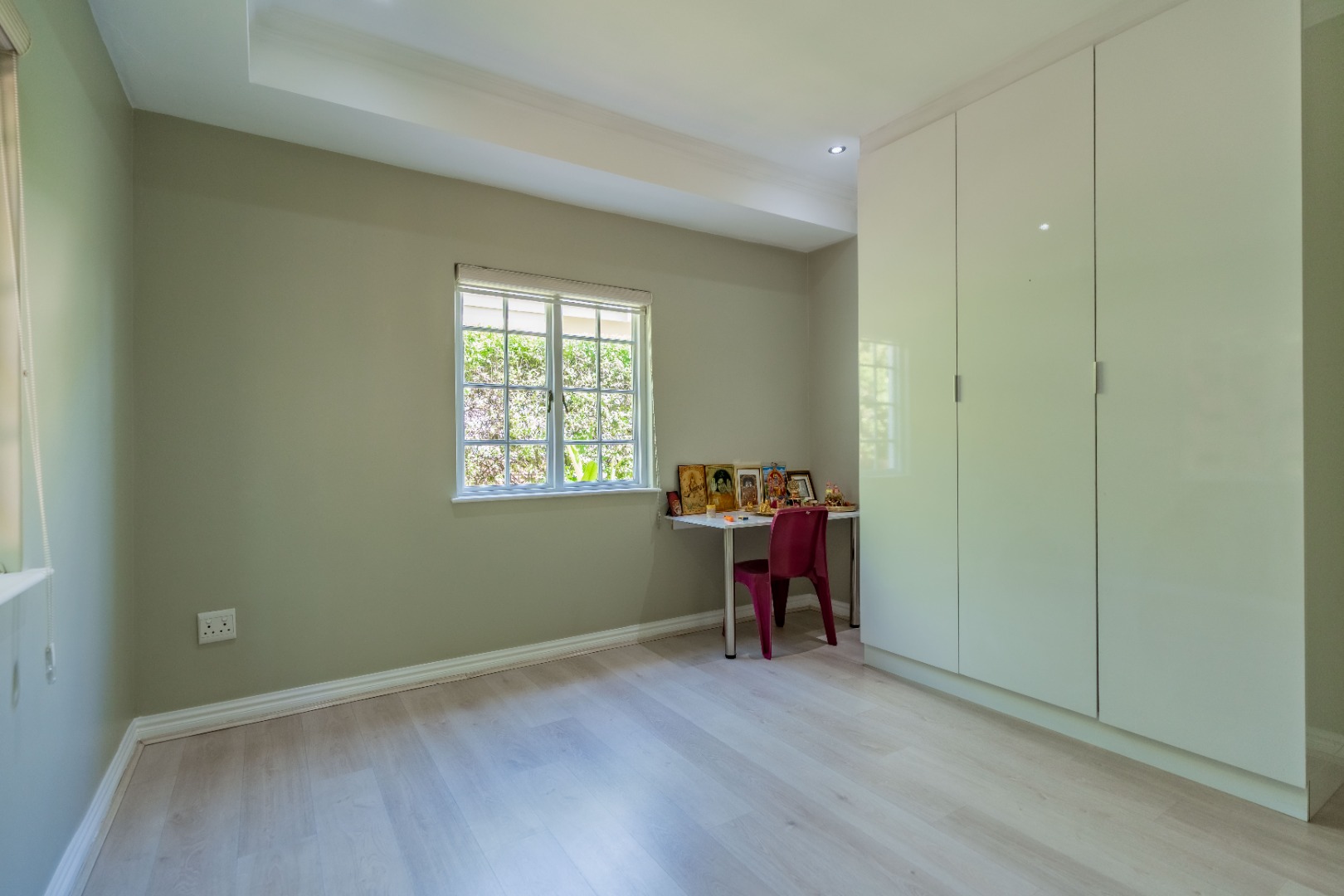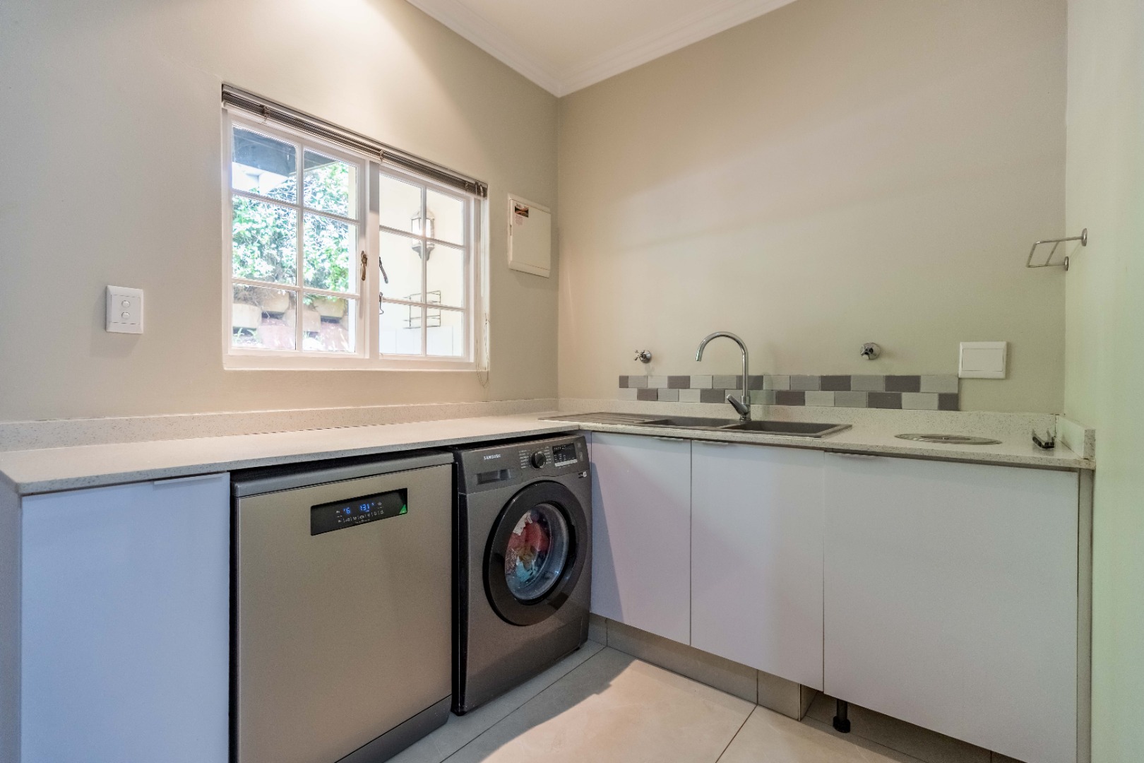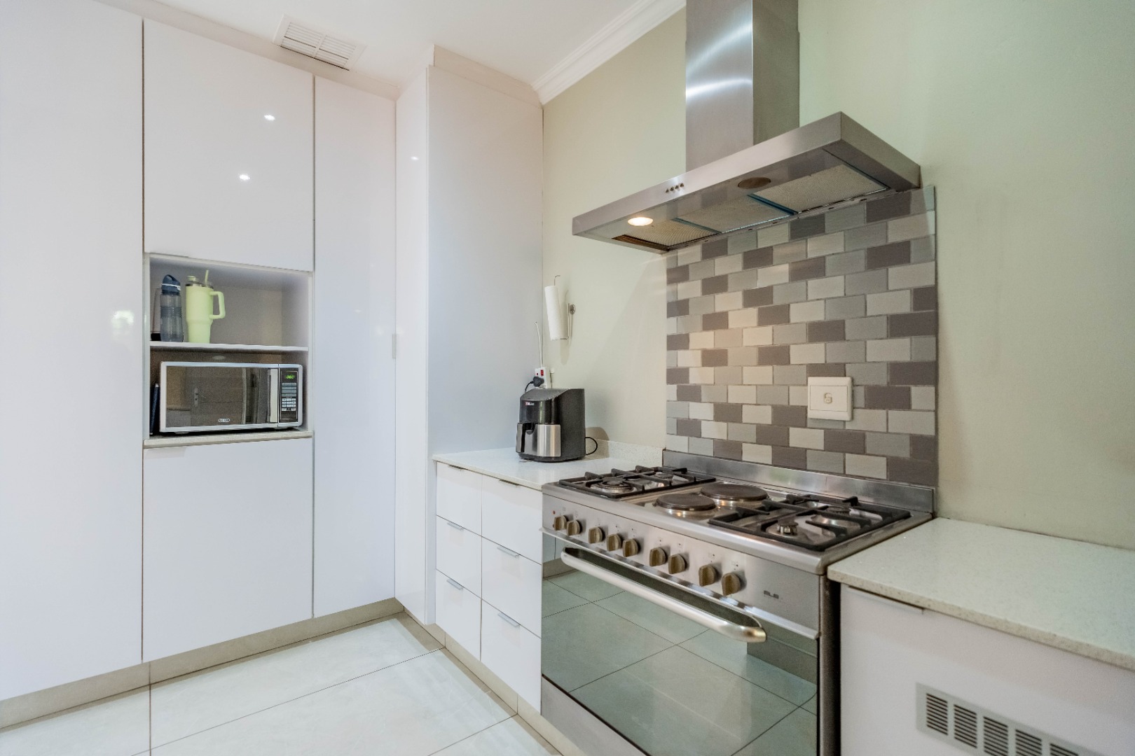 The sleek open-plan kitchen, complete with a separate scullery, flows effortlessly into generous living and dining areas, which open out onto a covered patio and private garden - the perfect space for entertaining or simply unwinding.