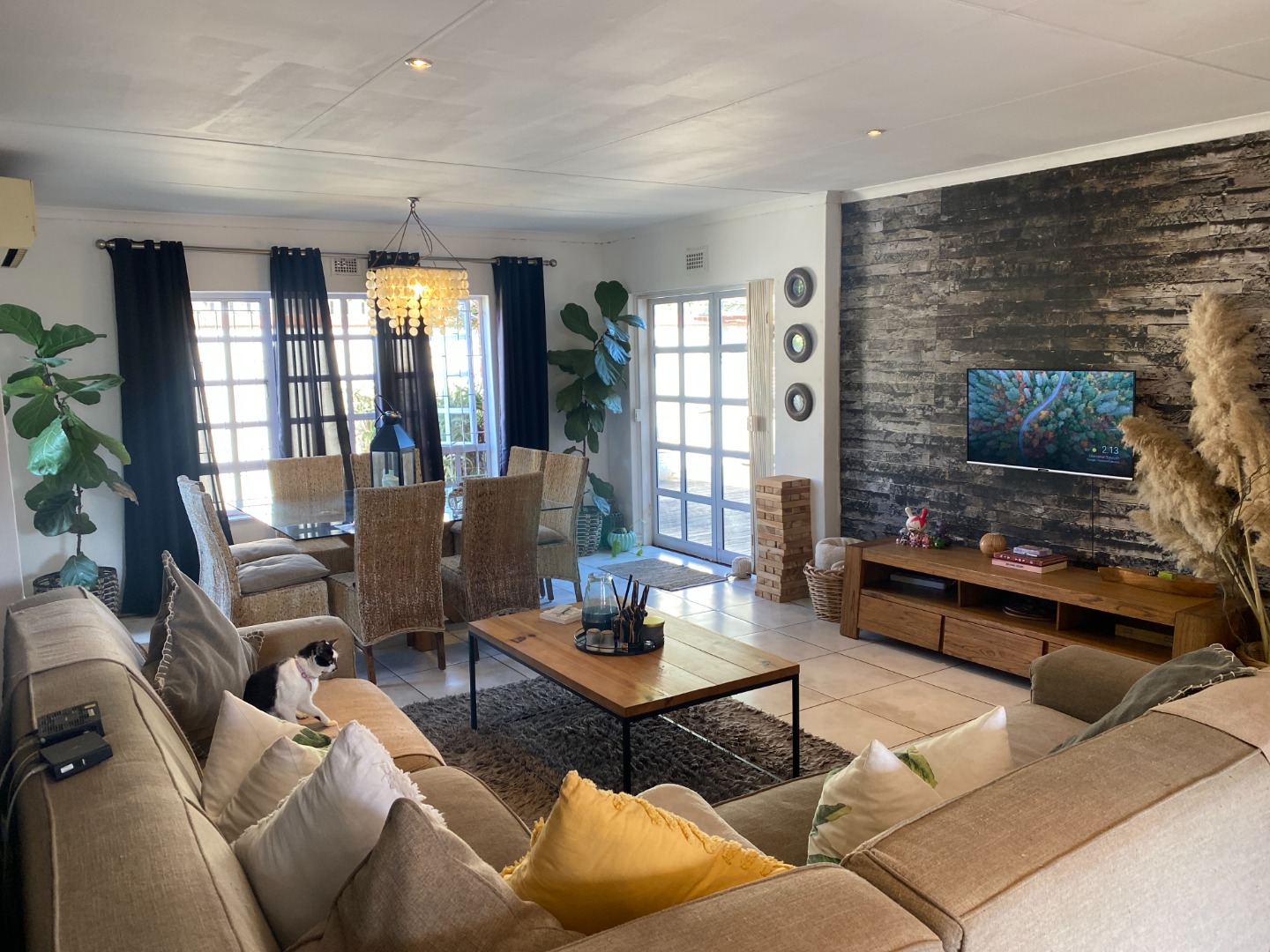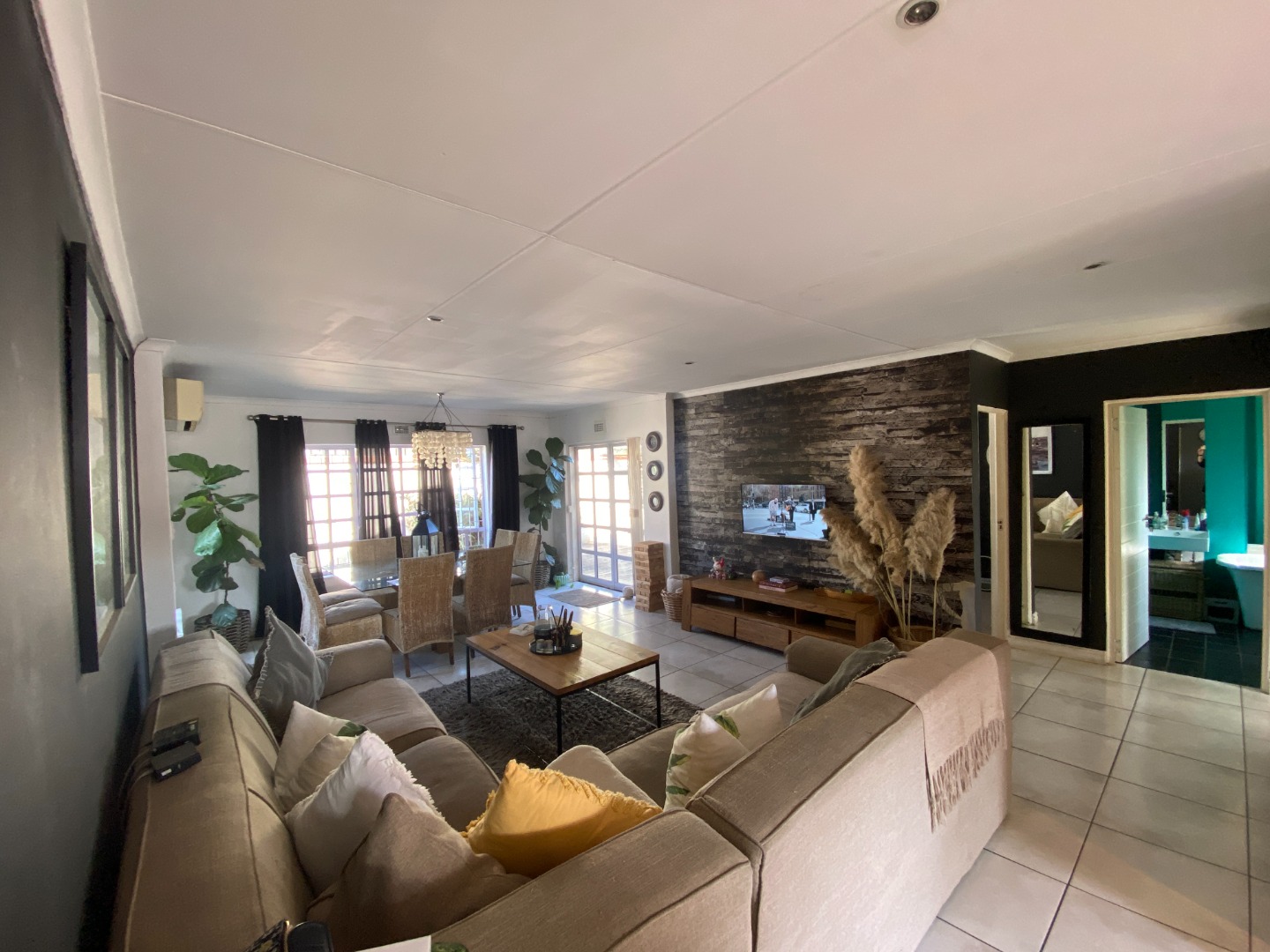 Spacious open-plan lounge and dining area with seamless flow to the outdoor decked entertainment area with awning.