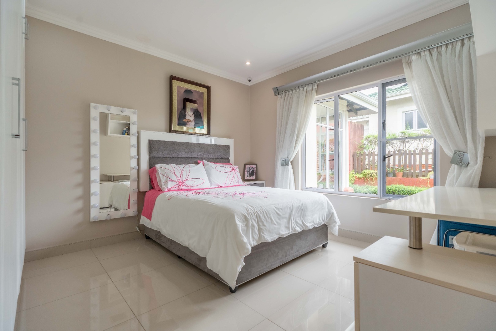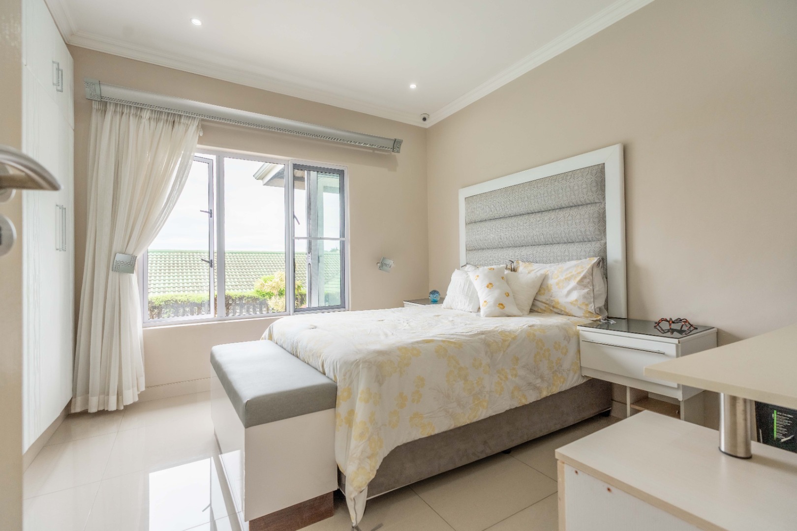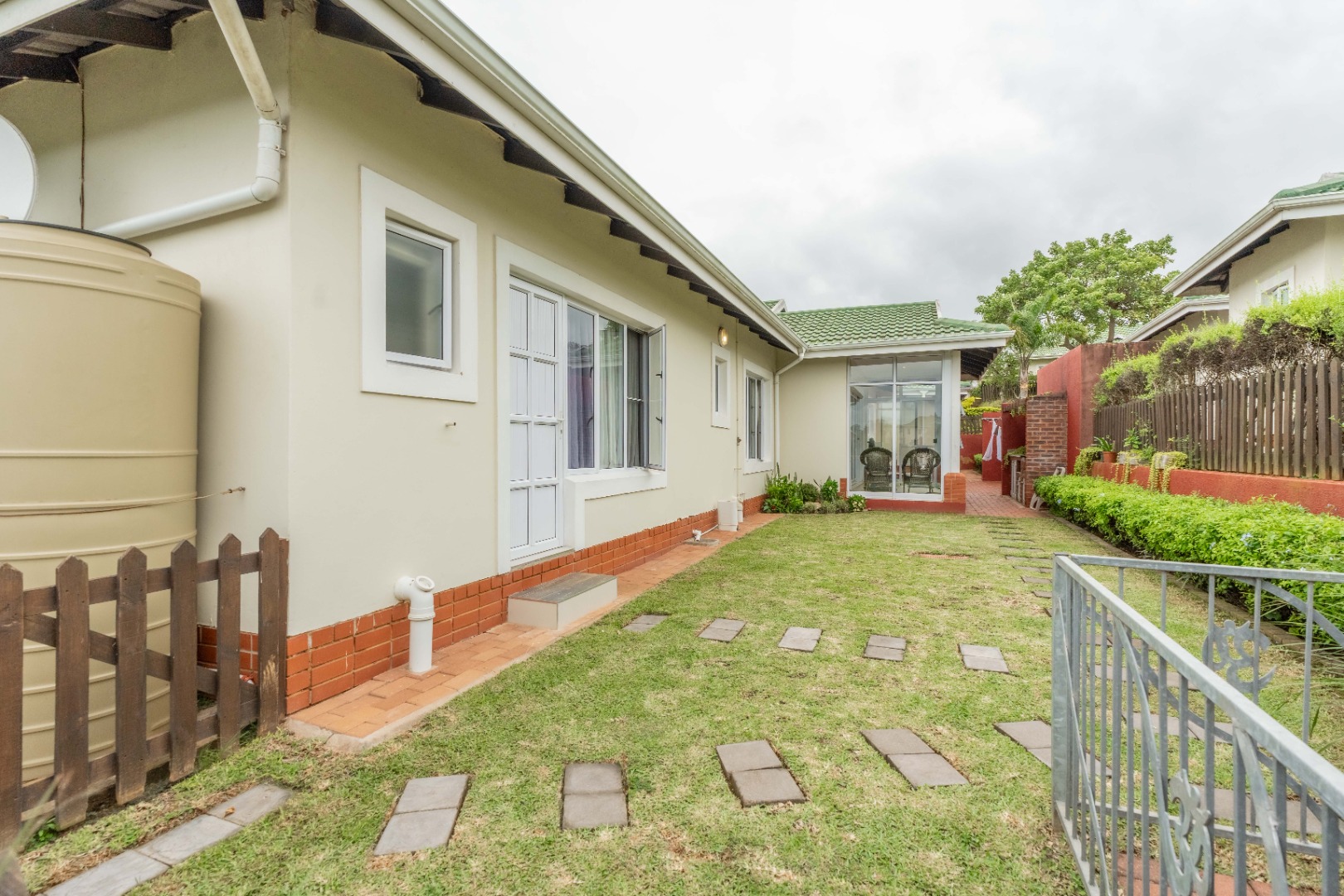 The entire home is tiled and finished with sleek aluminum doors and windows throughout. A side garden near the braai area provides a private space for small pets or a tranquil retreat.