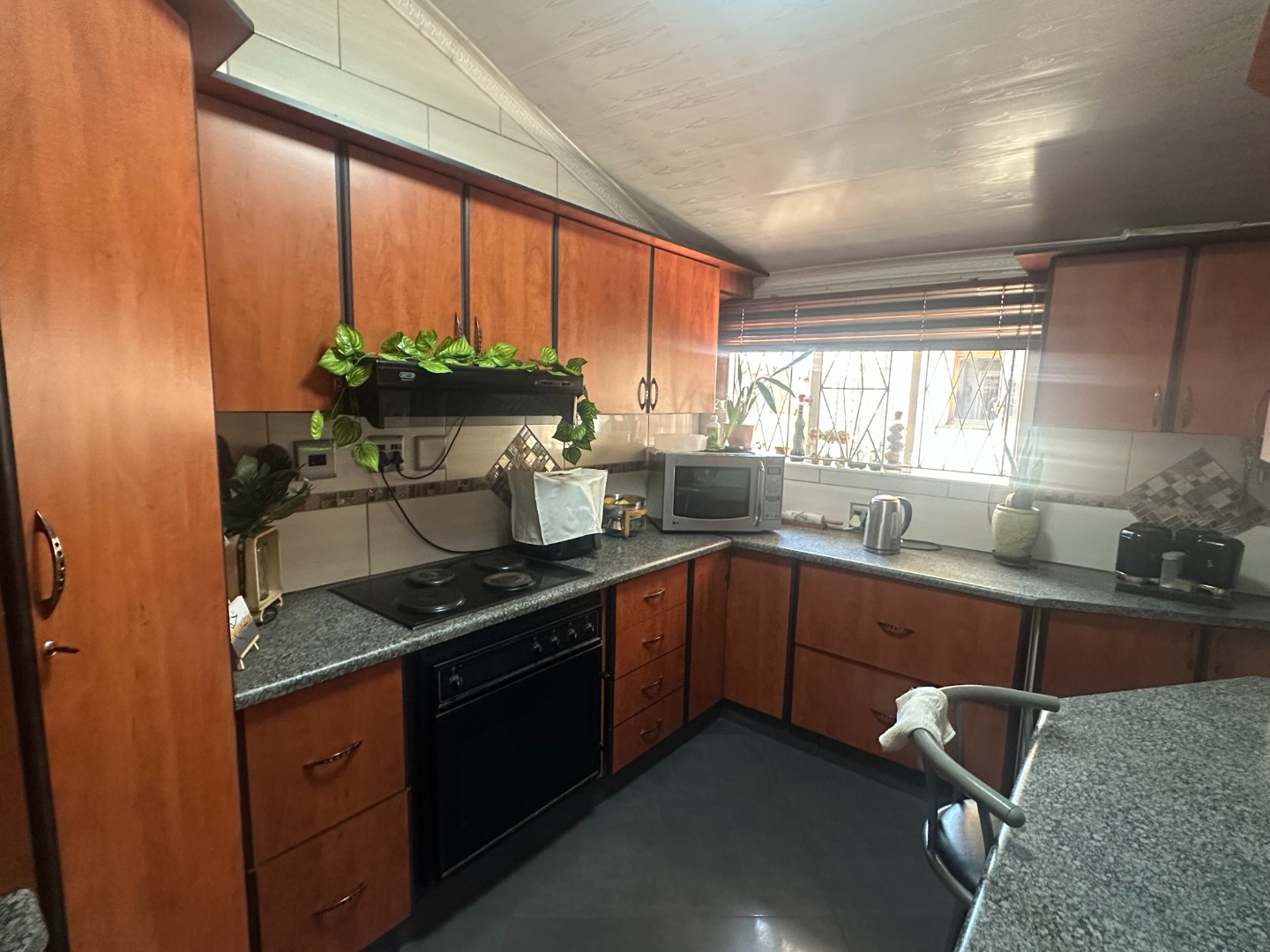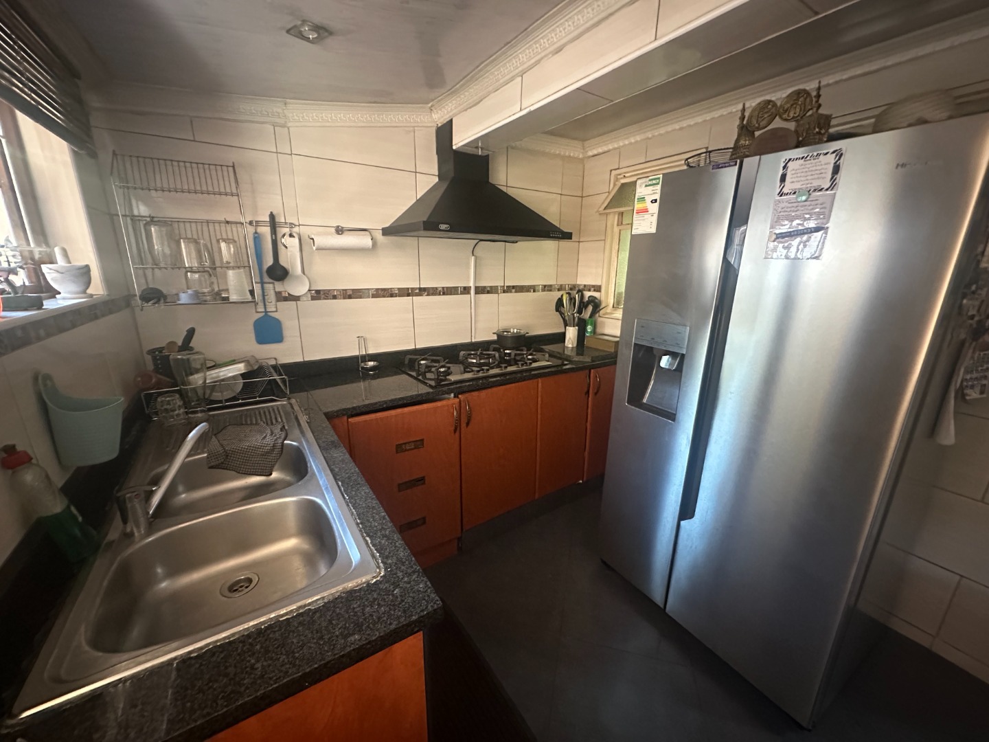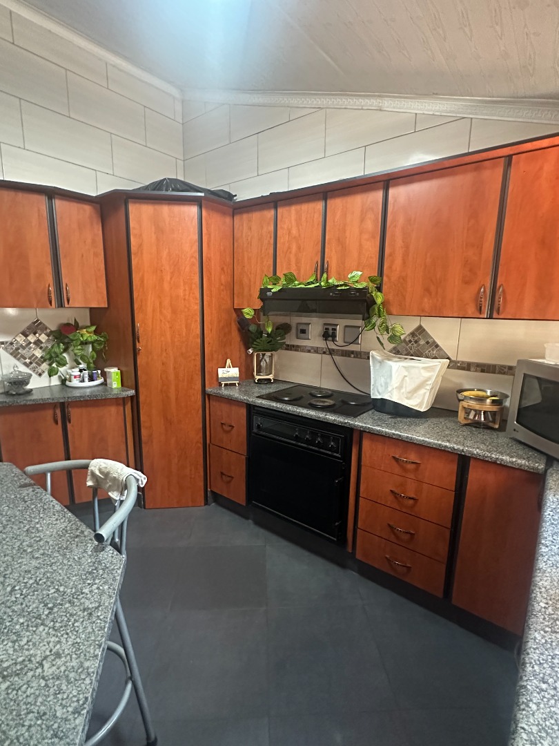The home flows into a gorgeous lounge and dining room. The kitchen is fully fitted with built in cupboards and there’s a scullery fitted with gas stove and space for a double fridge