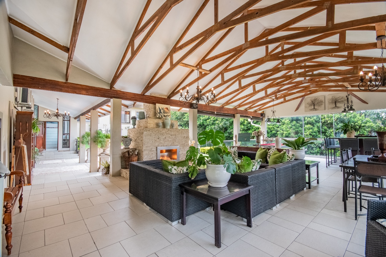 Step inside, and sunlight floods the living spaces through large windows and stack-back doors. The warmth of natural finishes blends beautifully with crisp, timeless interiors. The main lounge flows seamlessly to an expansive entertainer’s veranda — a masterpiece of exposed beams, soft lighting, and a fireplace that turns evenings into occasions.