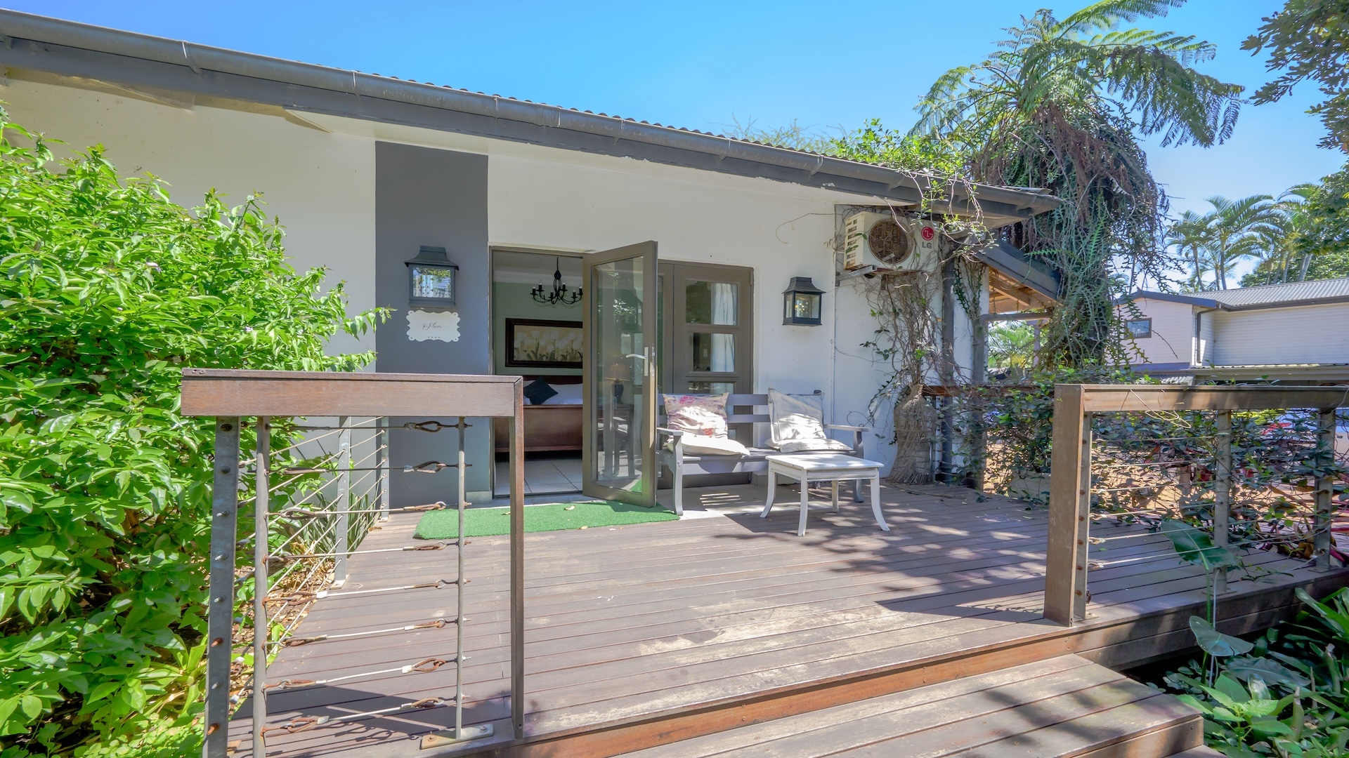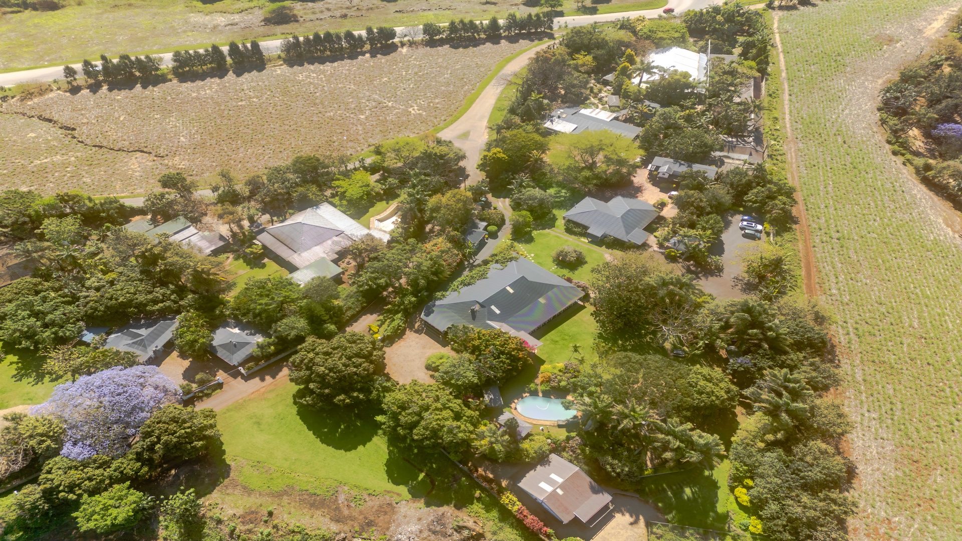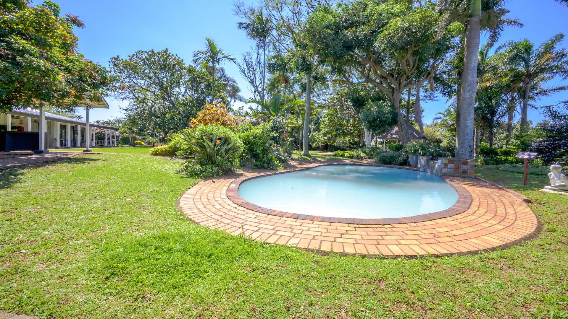 The stunningly beautiful Estate is a tropical haven featuring rambling established landscaped gardens, a mere five minutes drive from King Shaka Airport.