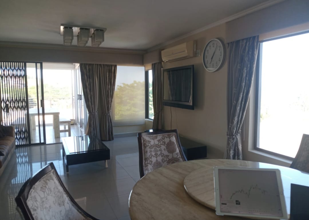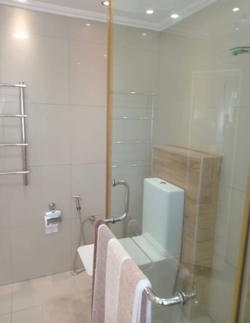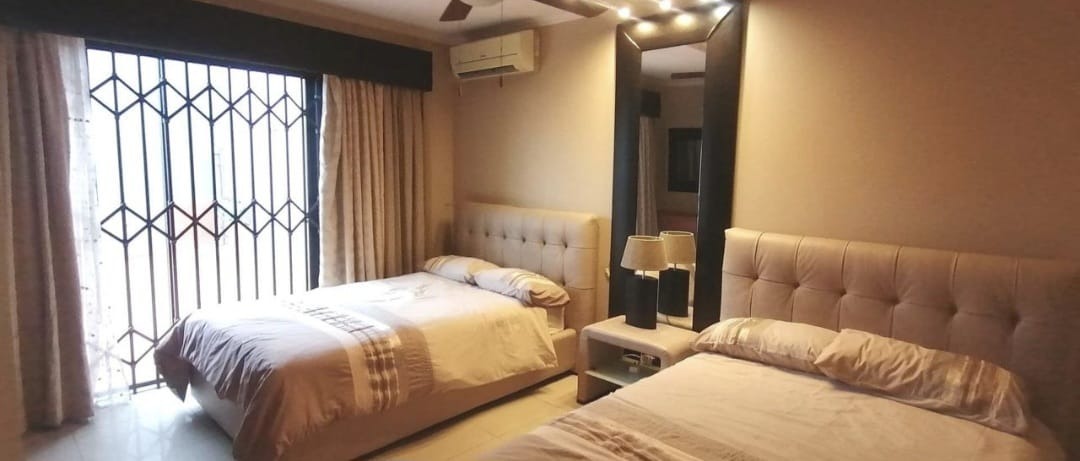 Offering a luxurious lifestyle, the apartment includes three generous bedrooms, each crafted for comfort and tranquility. The master bedroom features a modern en-suite bathroom and sleek built-in cupboards. The second and third bedrooms open into a sizeable flatlet area and share an elegant, fully tiled bathroom finished with floor-to-ceiling tiles. The living space also includes a chic, spacious guest toilet with contemporary finishes.
