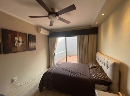 Offering a luxurious lifestyle, the apartment includes three generous bedrooms, each crafted for comfort and tranquility. The master bedroom features a modern en-suite bathroom and sleek built-in cupboards. The second and third bedrooms open into a sizeable flatlet area and share an elegant, fully tiled bathroom finished with floor-to-ceiling tiles. The living space also includes a chic, spacious guest toilet with contemporary finishes.