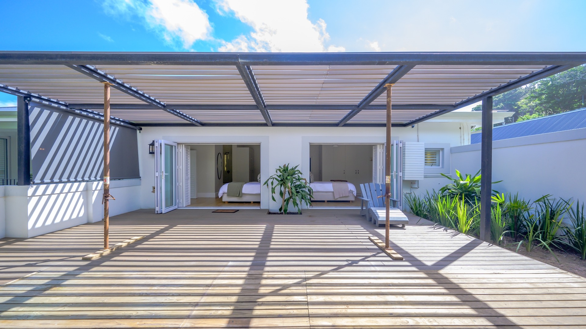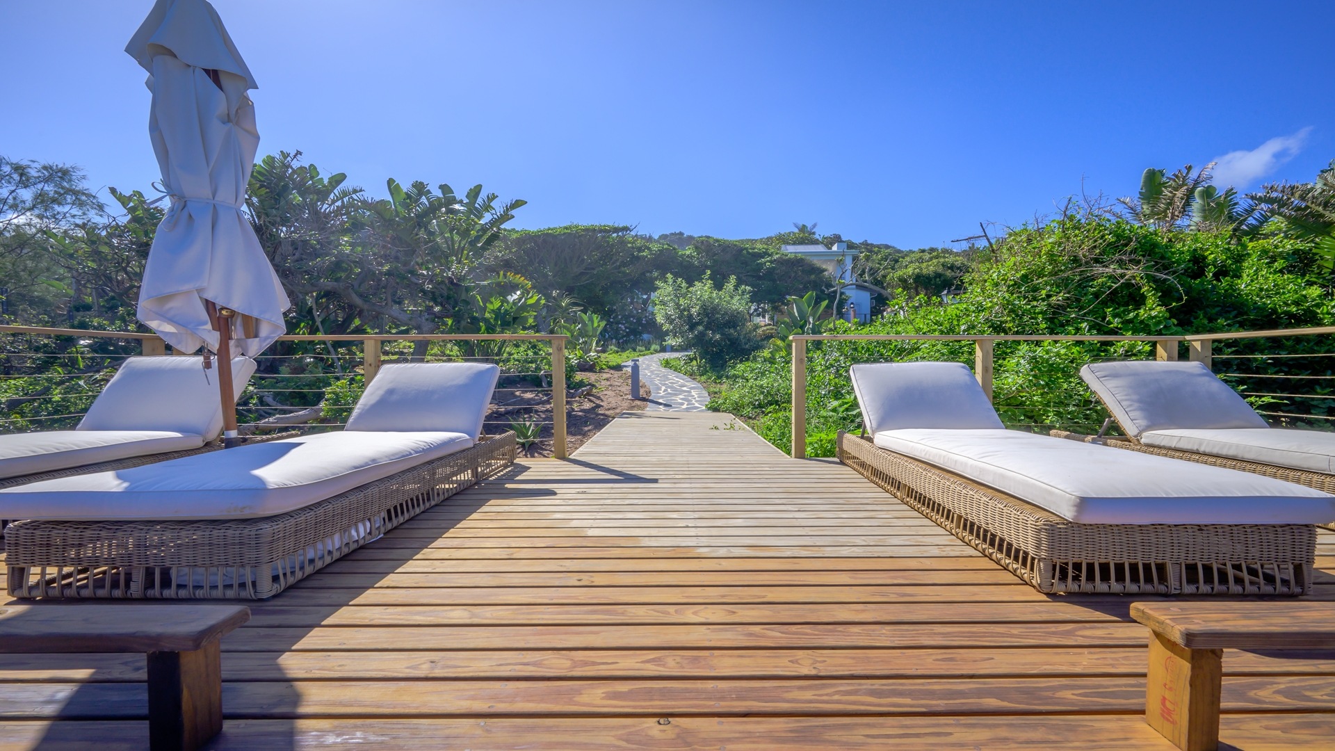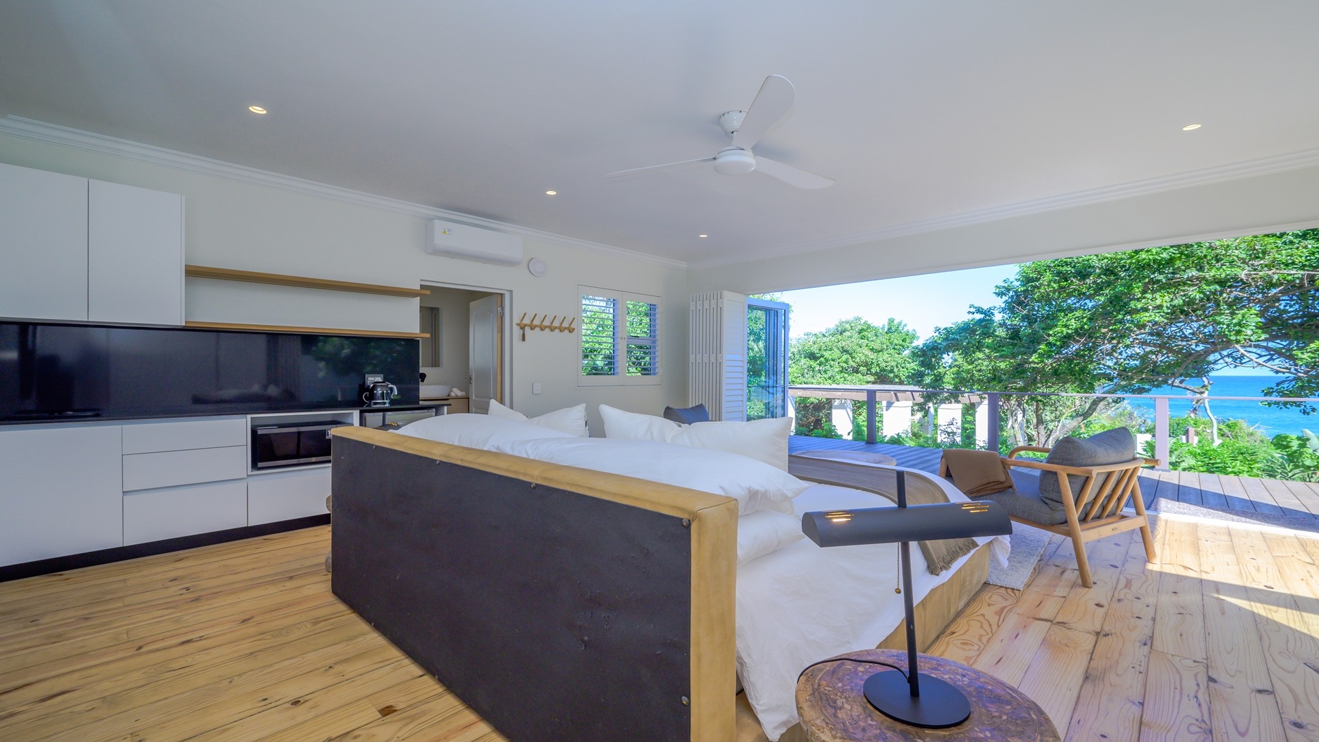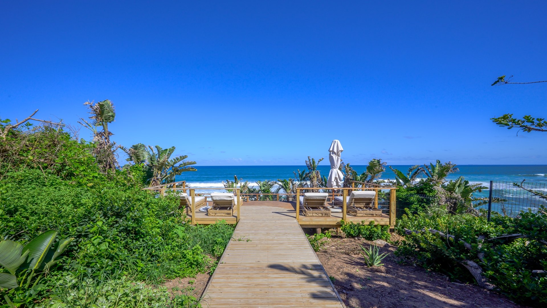 In addition, there is a second one-bedroom studio flatlet close to the ocean …with breathtaking sea views and below that a private enclosure designed for massages and spa treatments. The spacious deck is poised above the beach and ocean, with 180-degree views of the rugged coastline.