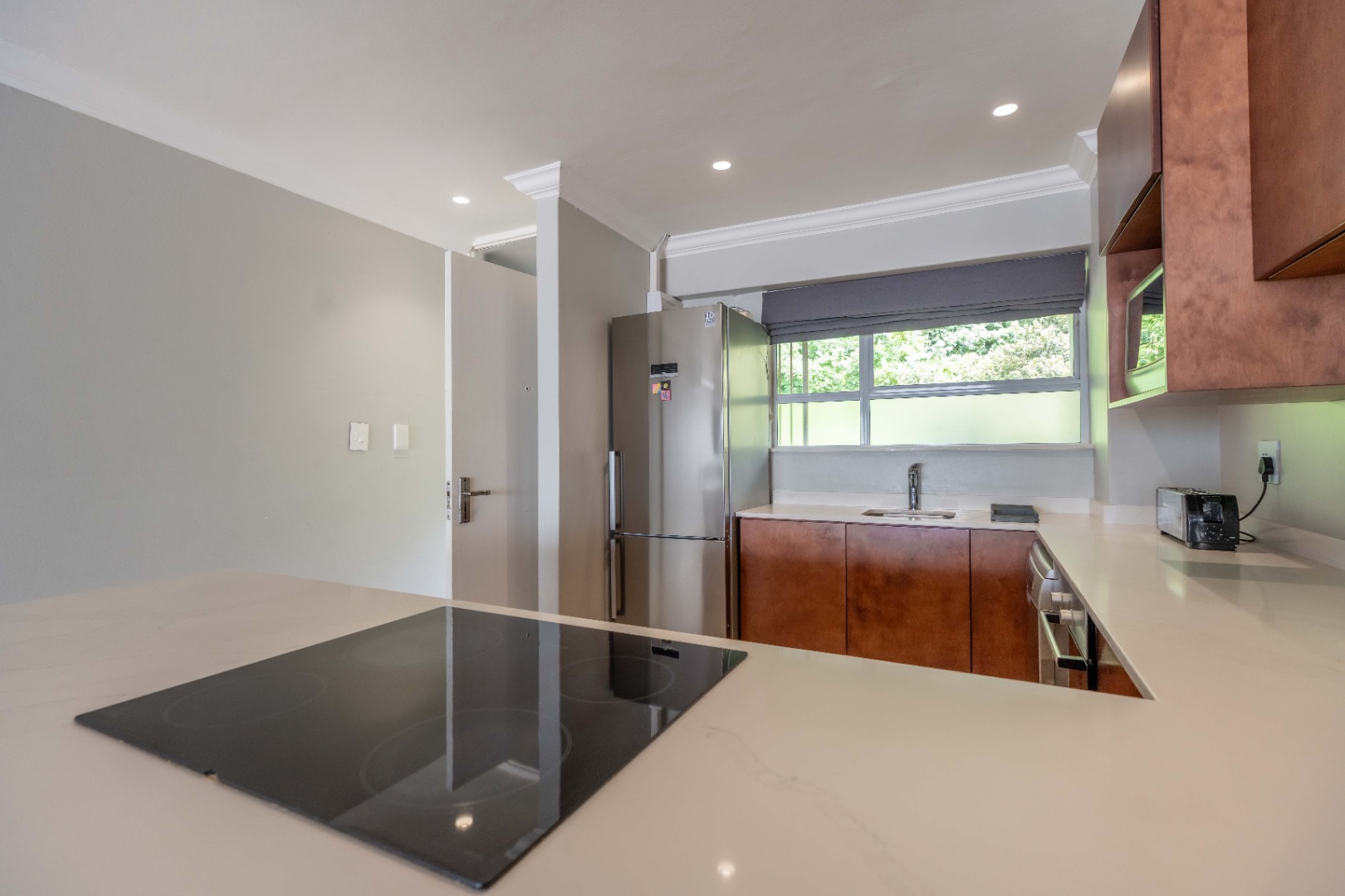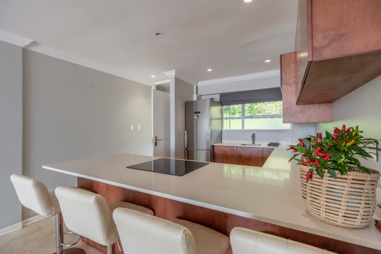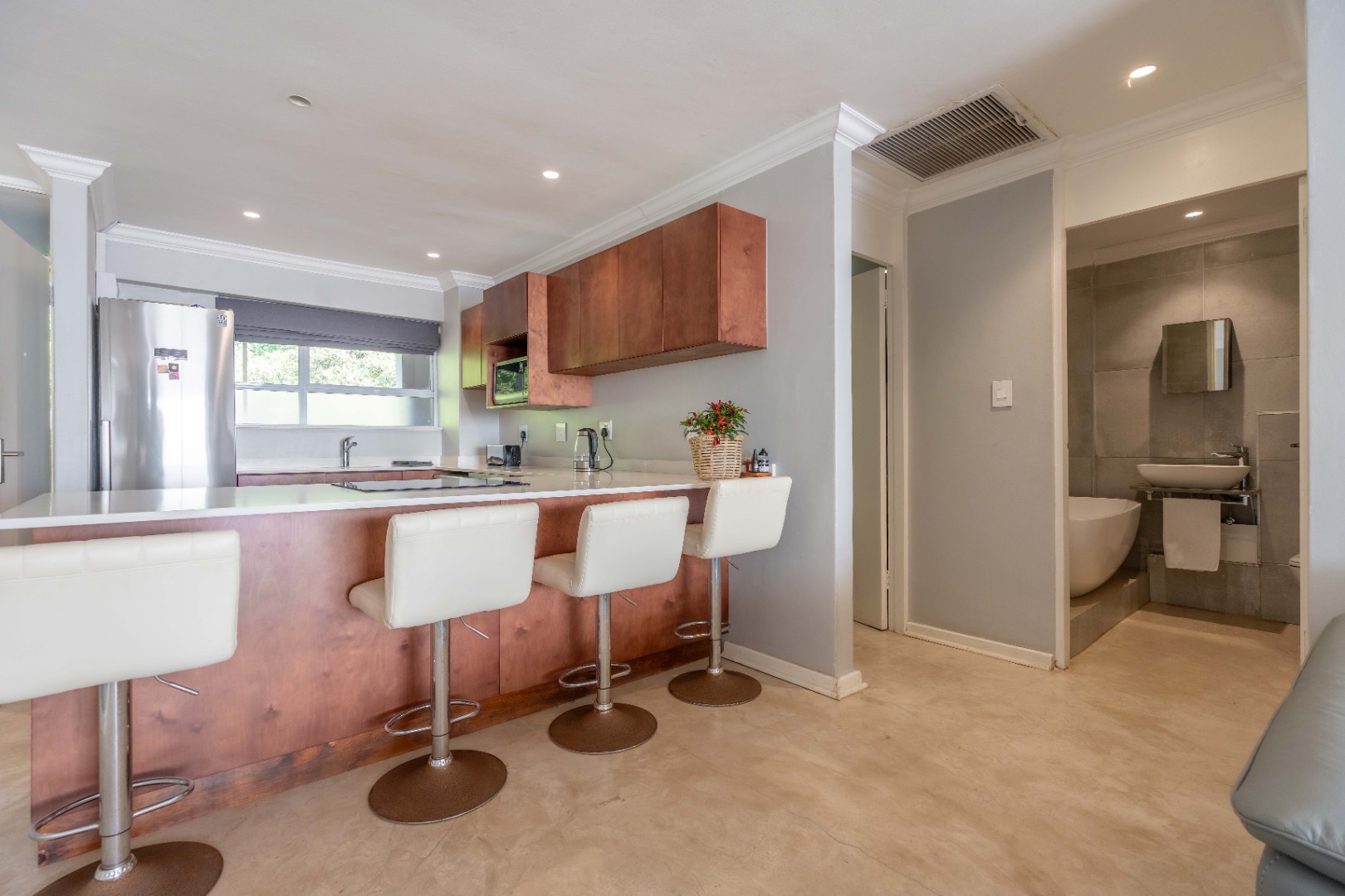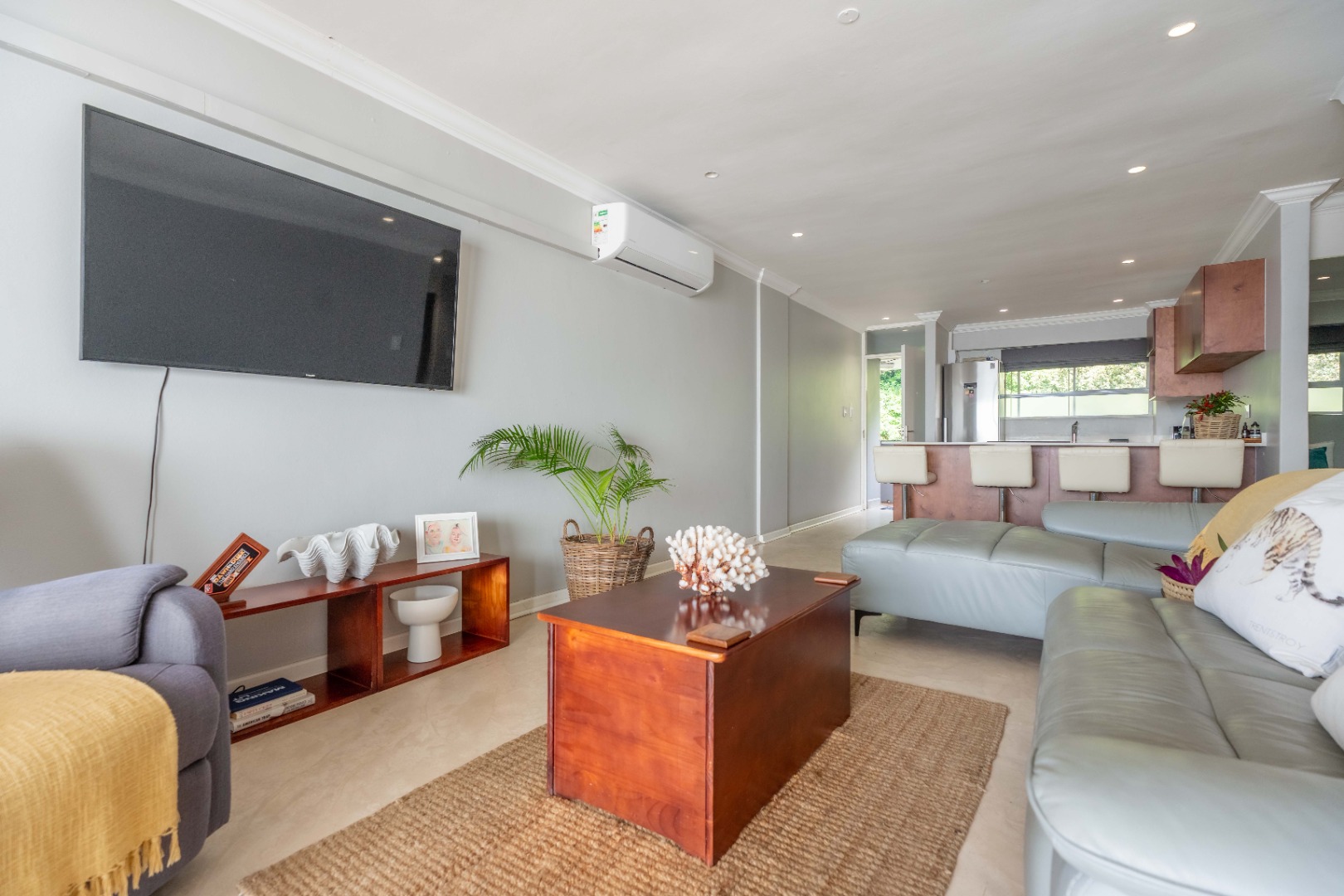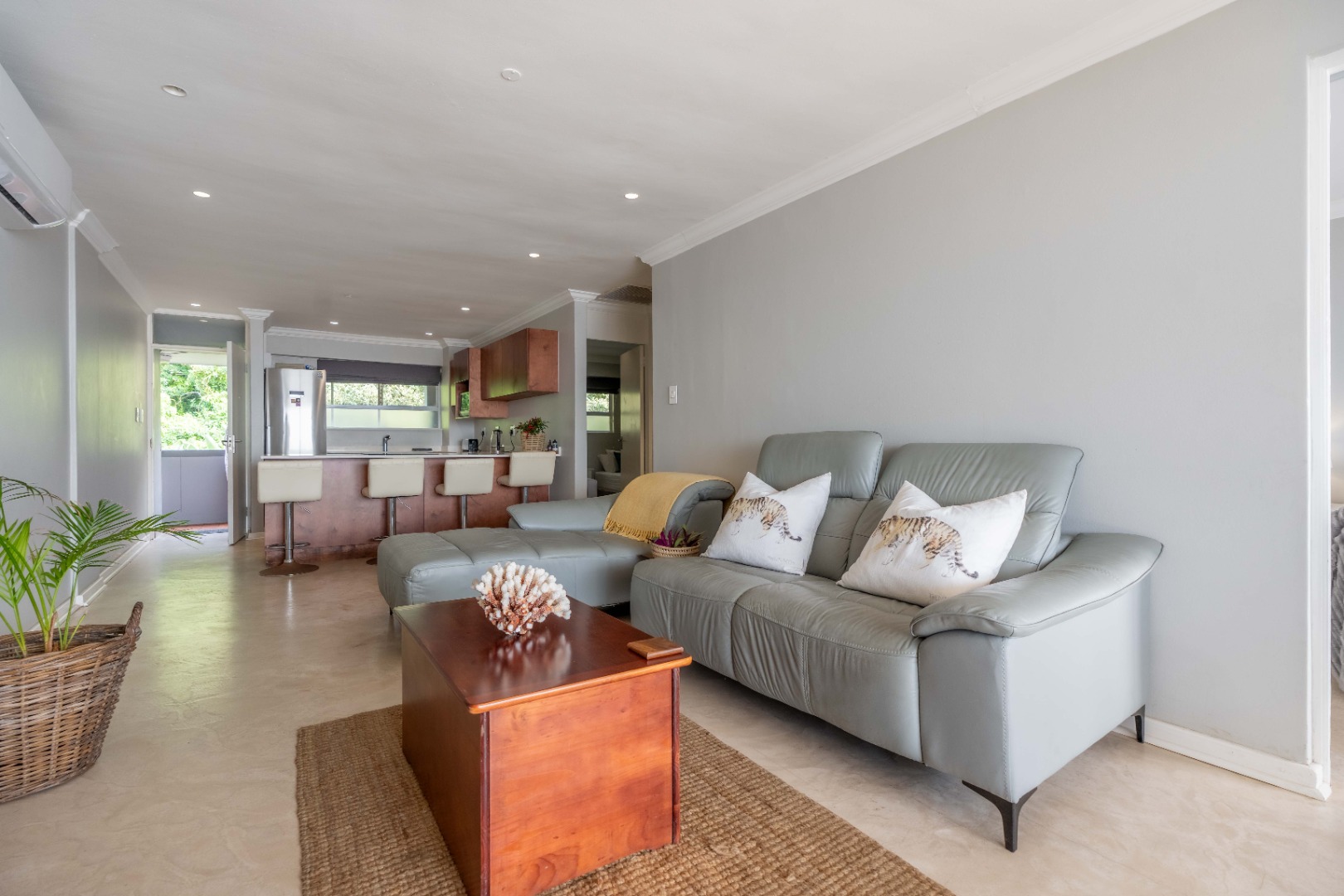 The open plan living area with spectacular ocean views, creates a seamless flow between the lounge, dinning space, and the ultra-modern kitchen, which boasts top-of-the-line finishes and sleek cabinetry.