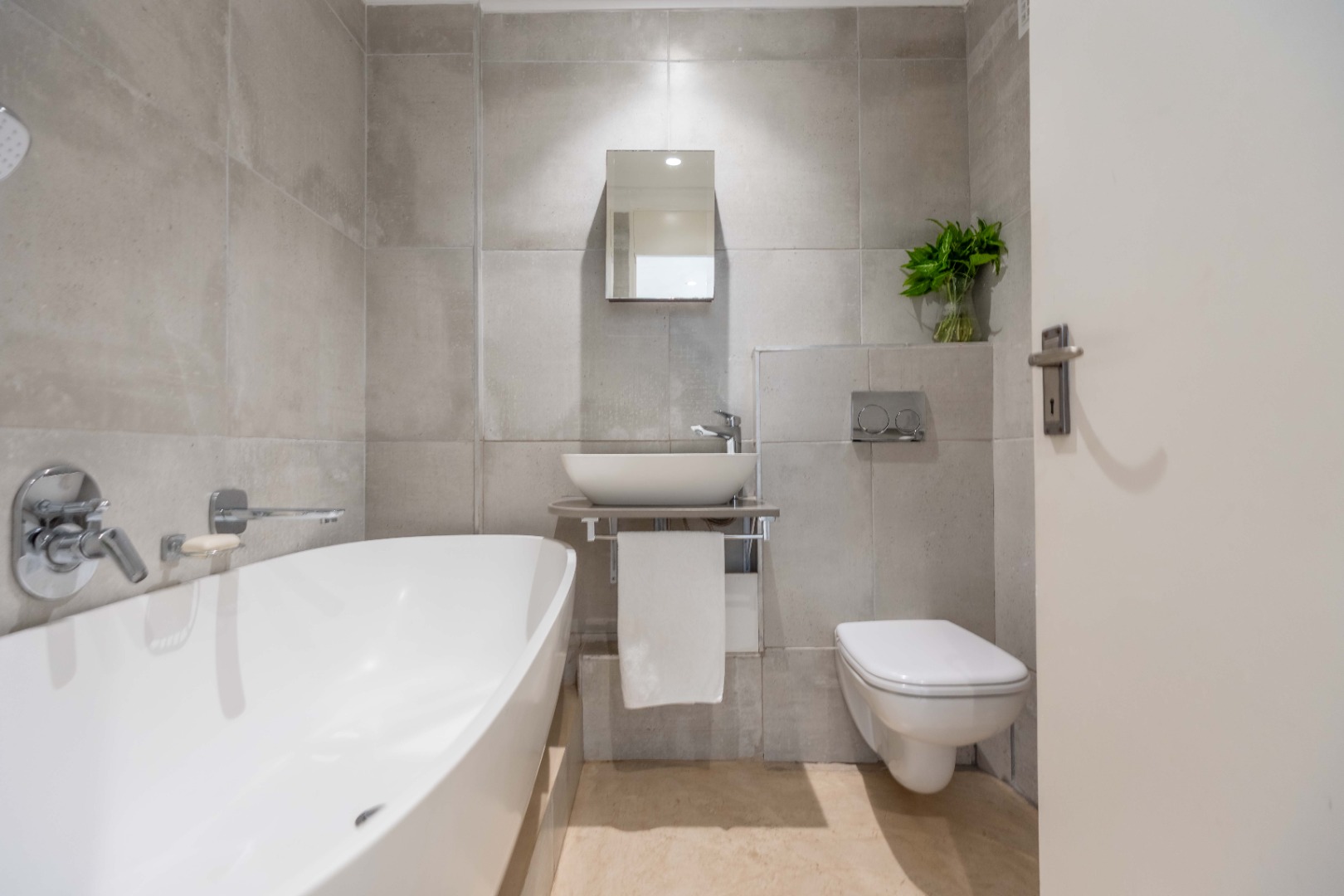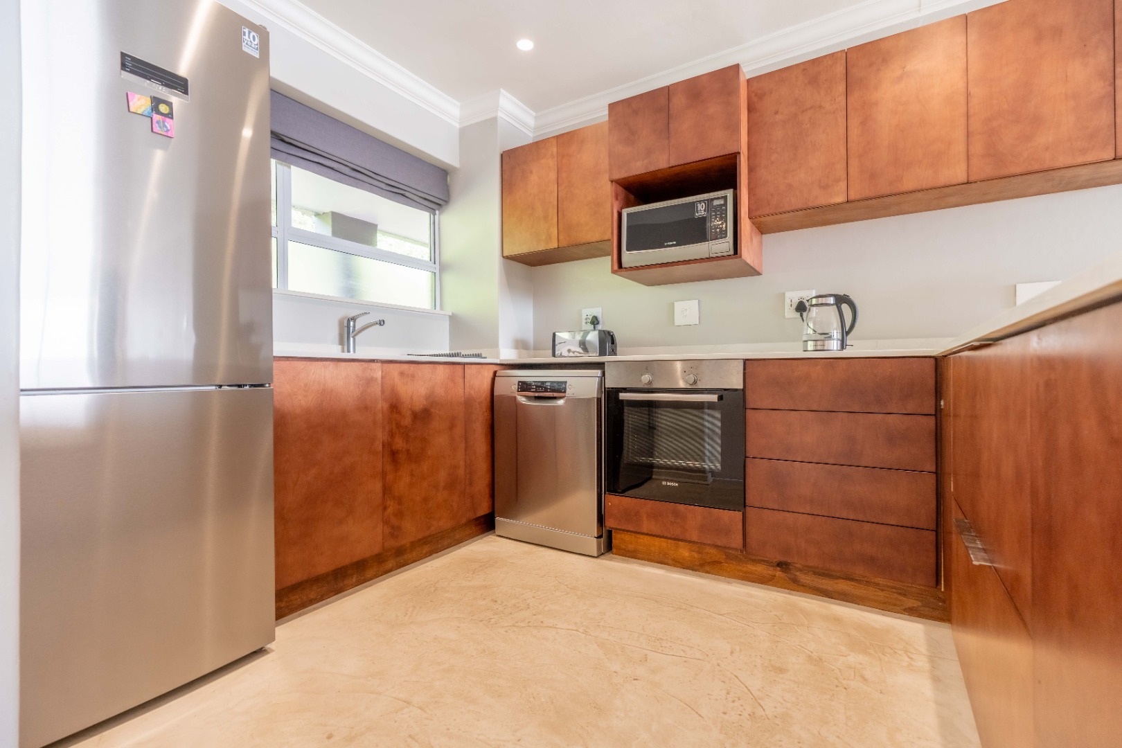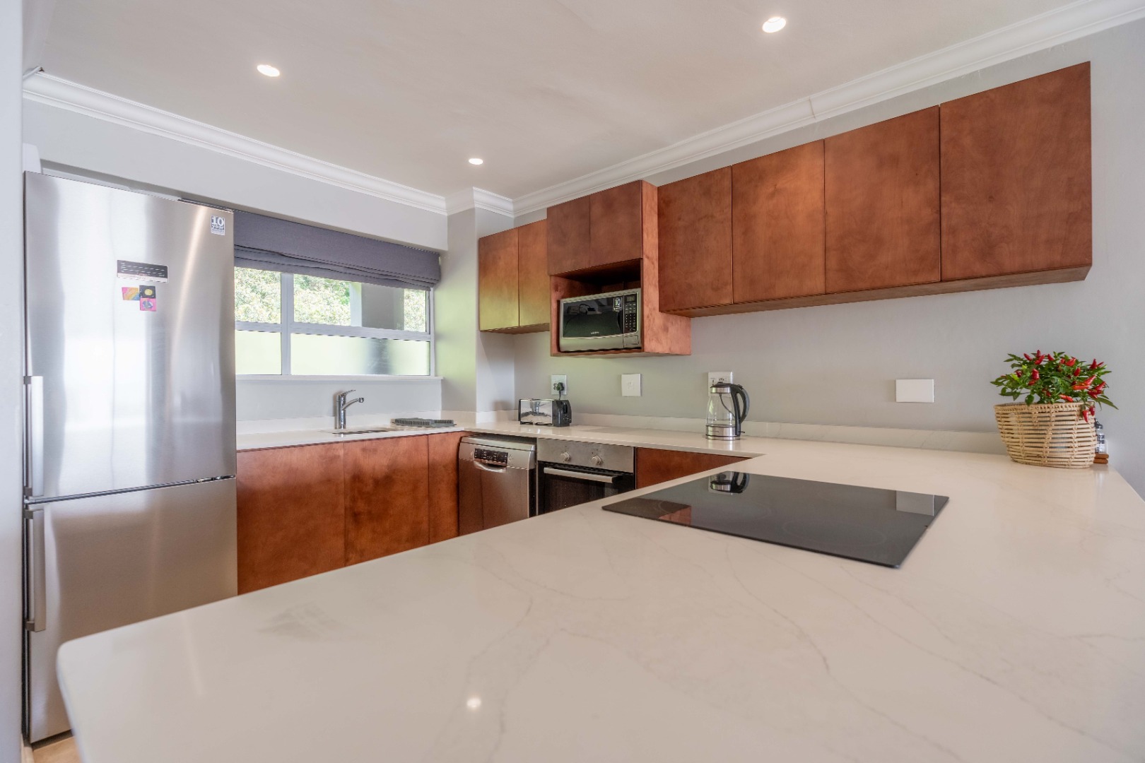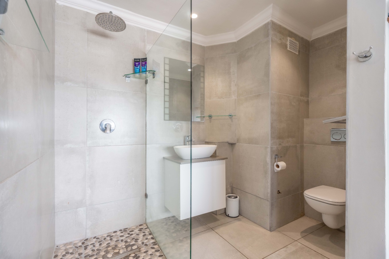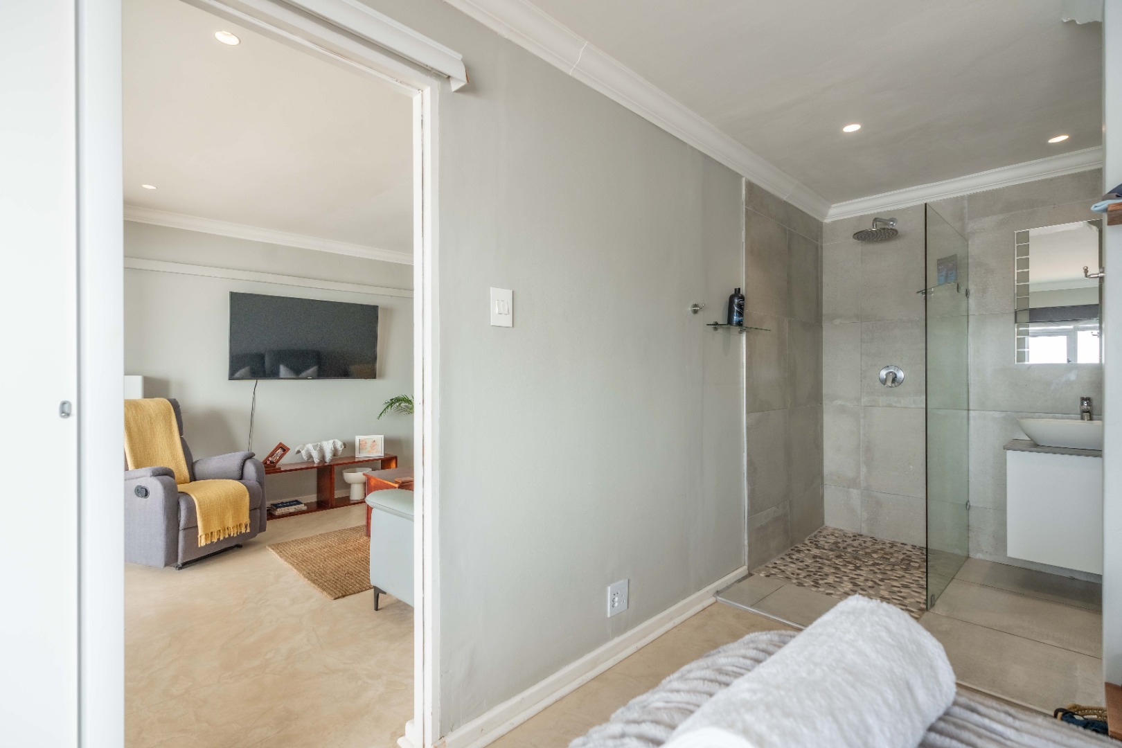 Wake up to the sound of the waves in the spacious main bedroom, complete with an en-suite bathroom for ultimate privacy. The second bedroom also boasts an en-suite bathroom. Both bathrooms are elegantly designed with contemporary fixtures and luxurious finishes.