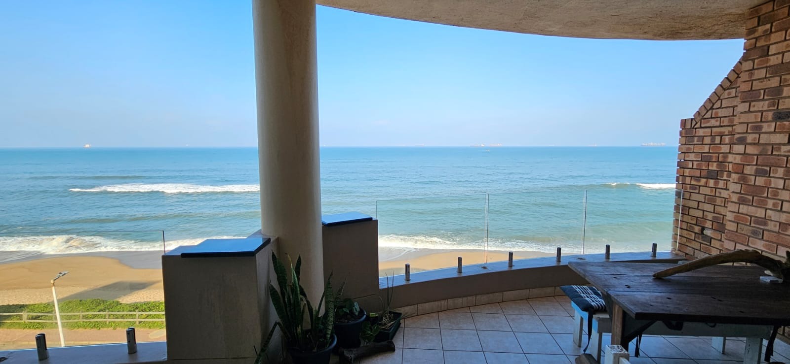 This three-bedroom, two-bathroom apartment boasts magnificent 180-degree sea views from every room. The open plan kitchen, dining room and lounge open onto a covered veranda with views all the way to Durban. The main bedroom offers and en-suite while there is a family bathroom that services the other two rooms. A rare find on the beach, is the double lock-up garage.