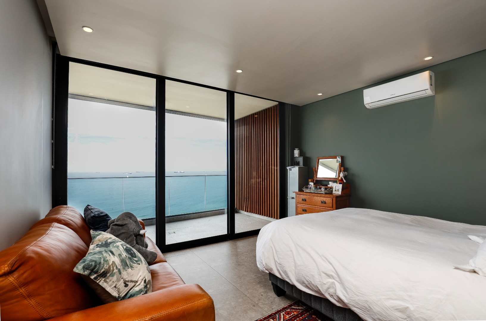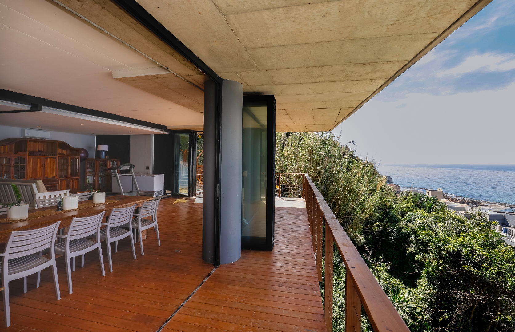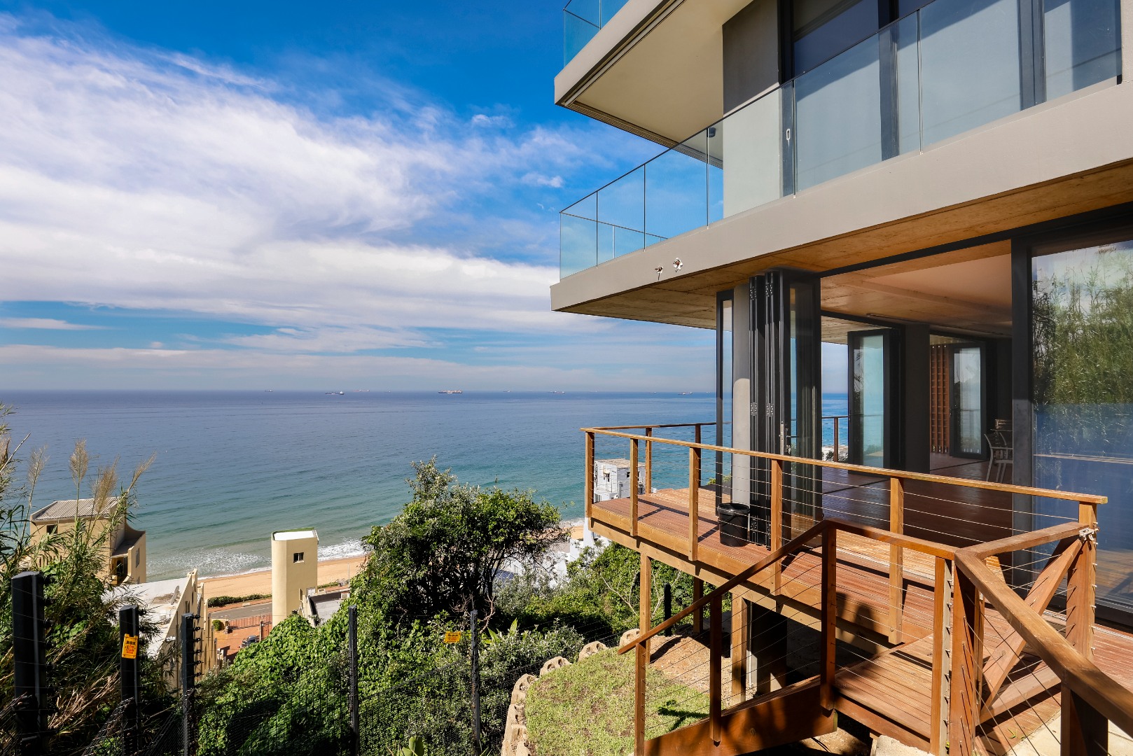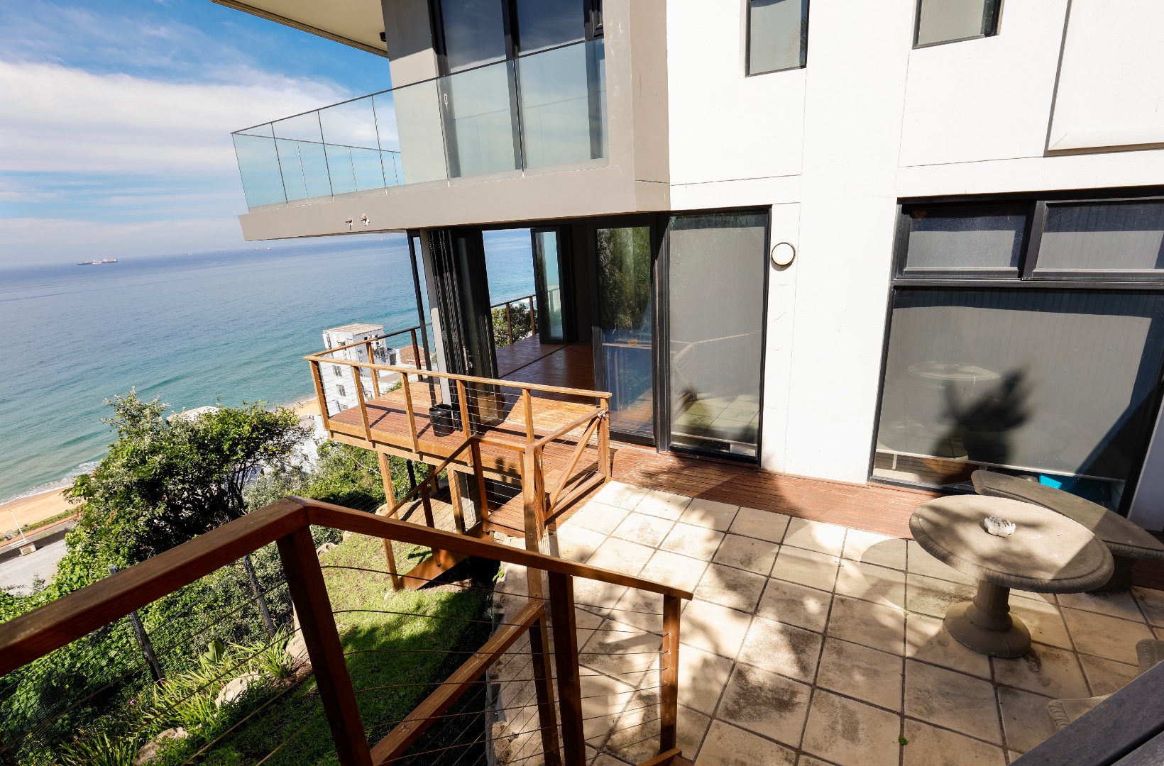 The ground floor features a full bathroom and bedroom that flows onto a spacious deck overlooking the coastline. This could however be used as a 2nd lounge, entertainment room, home gym, or office. Ideal for relaxation or entertainment.