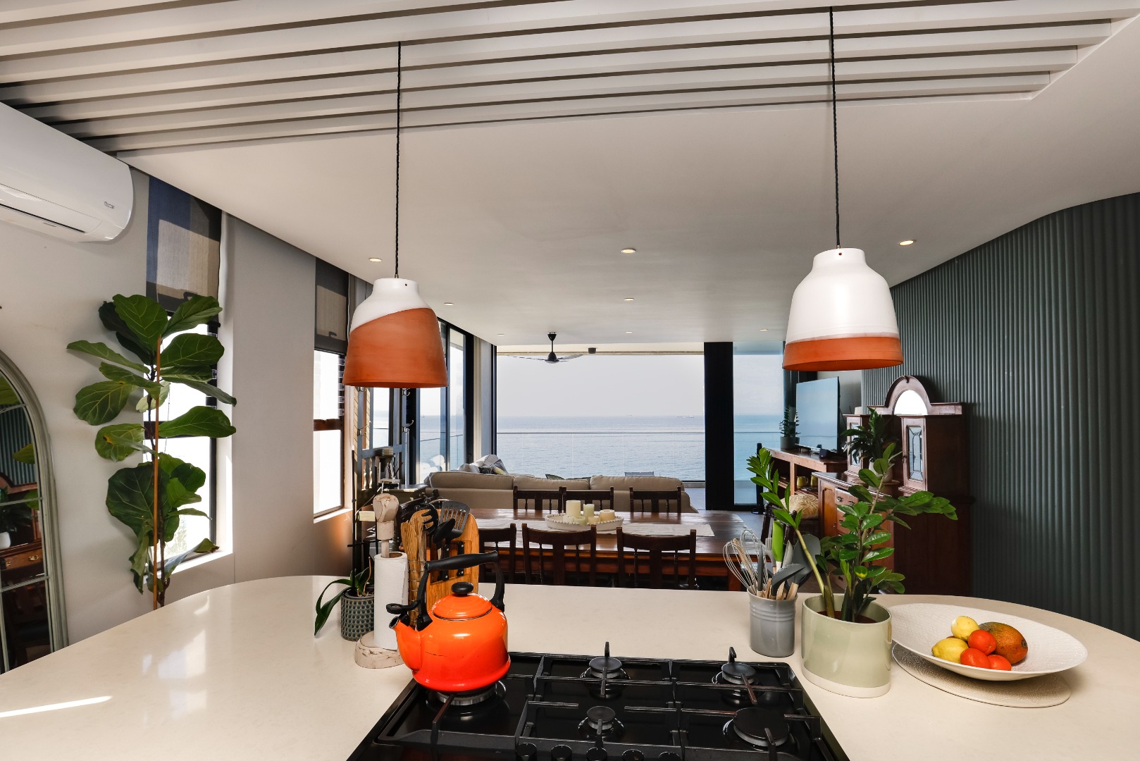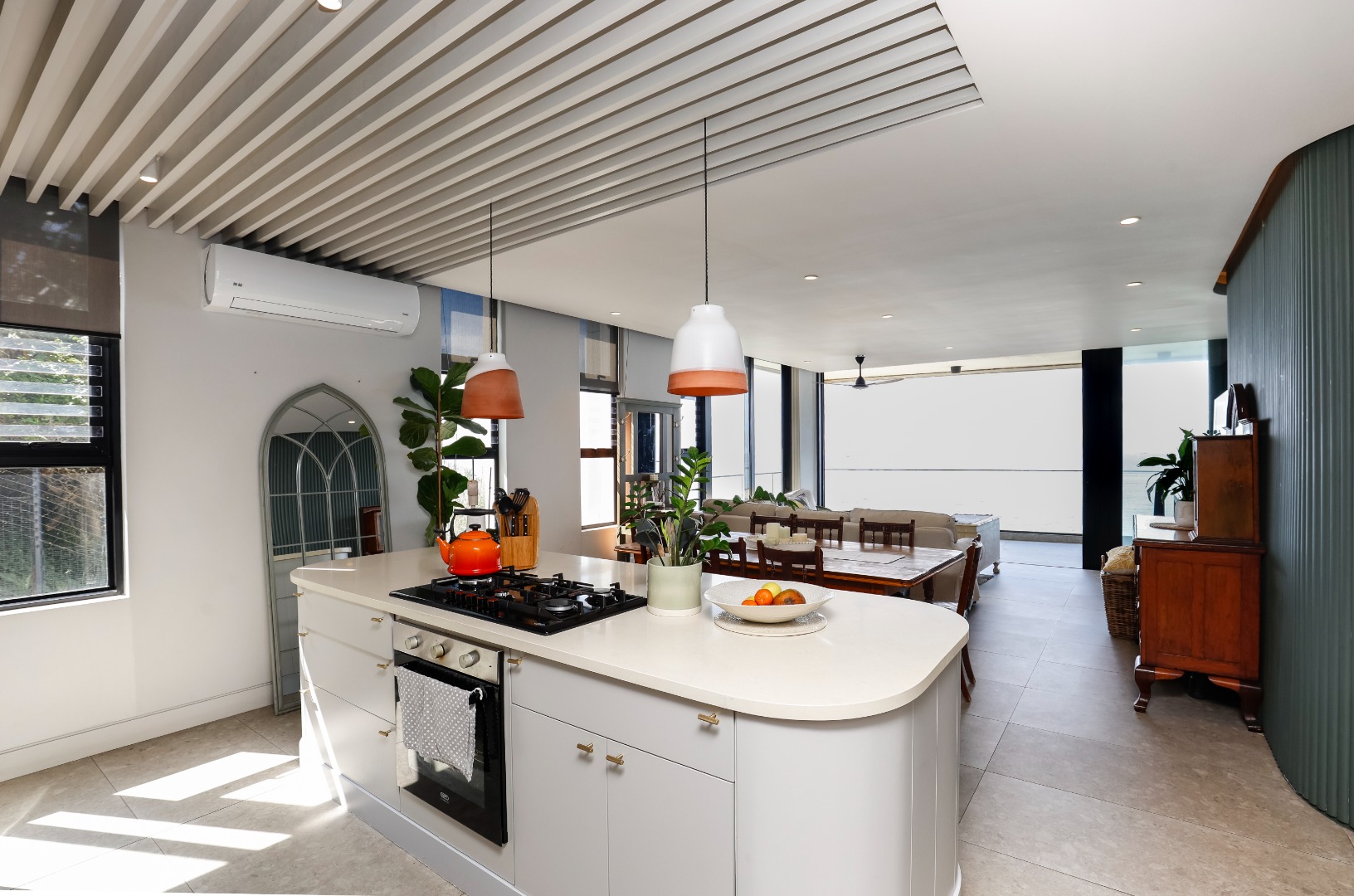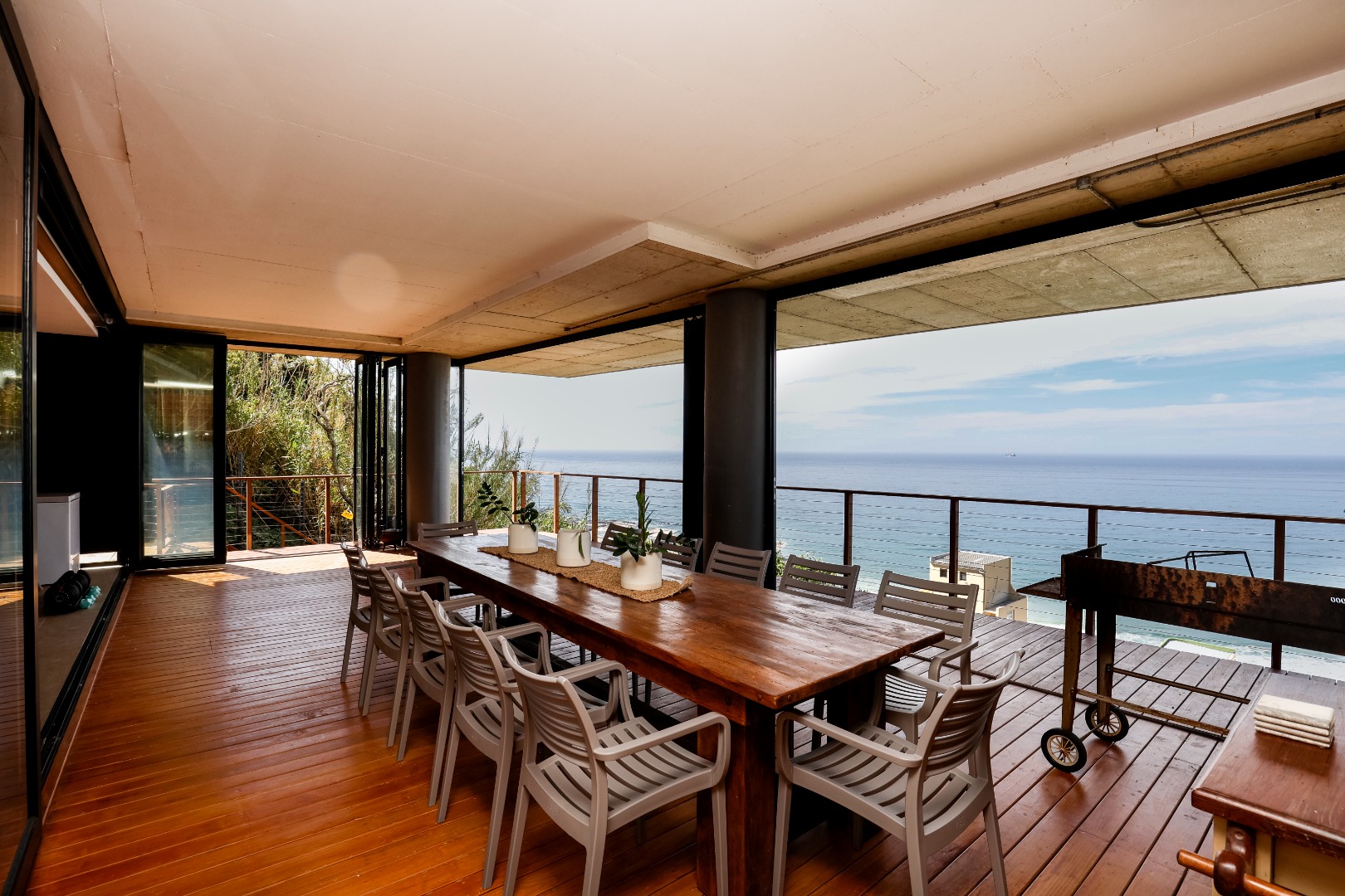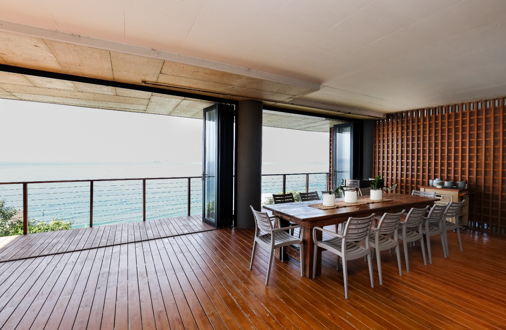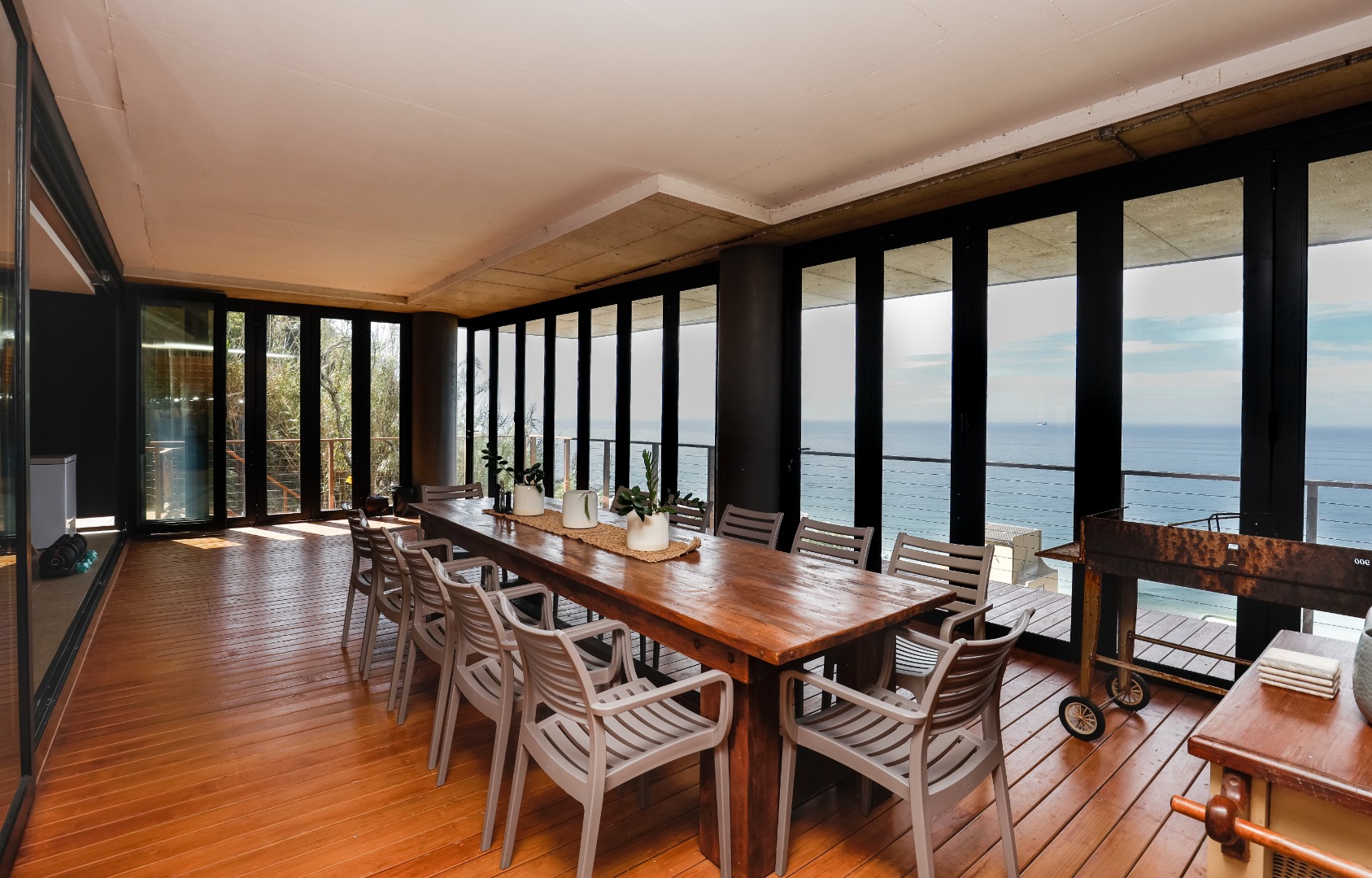 The ground floor features a full bathroom and bedroom that flows onto a spacious deck overlooking the coastline. This could however be used as a 2nd lounge, entertainment room, home gym, or office. Ideal for relaxation or entertainment.