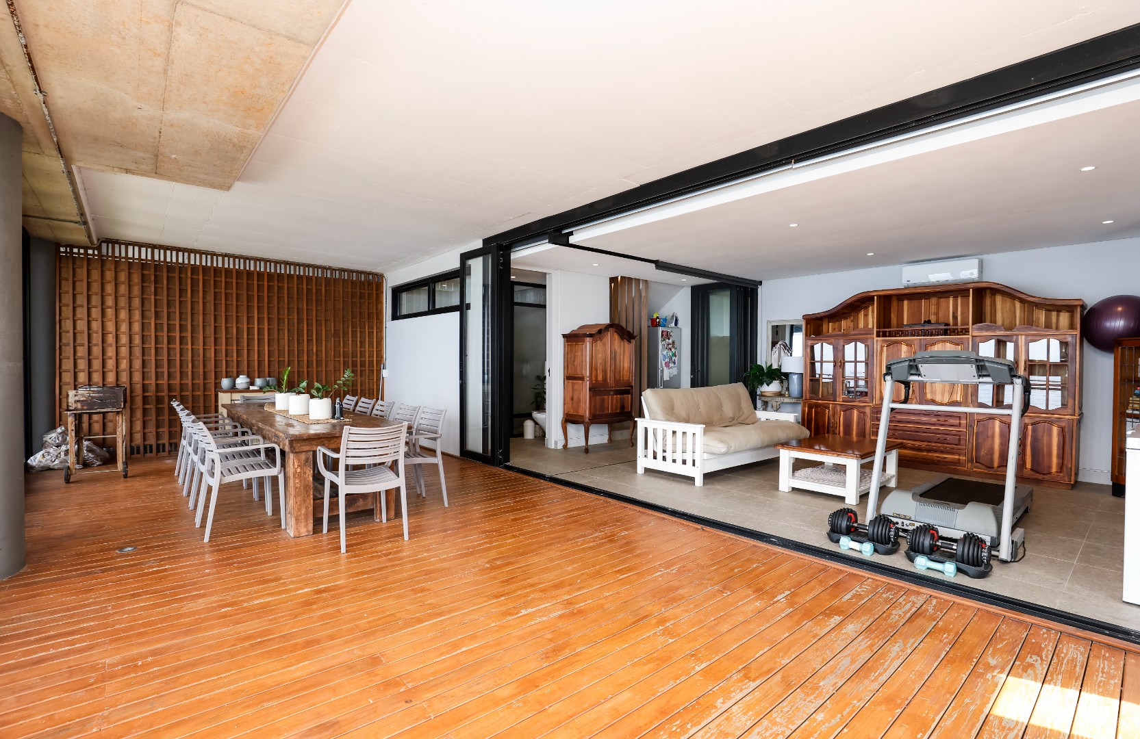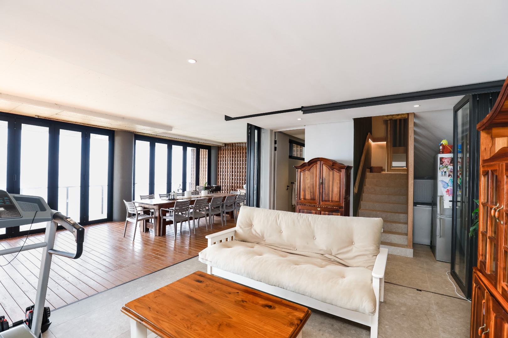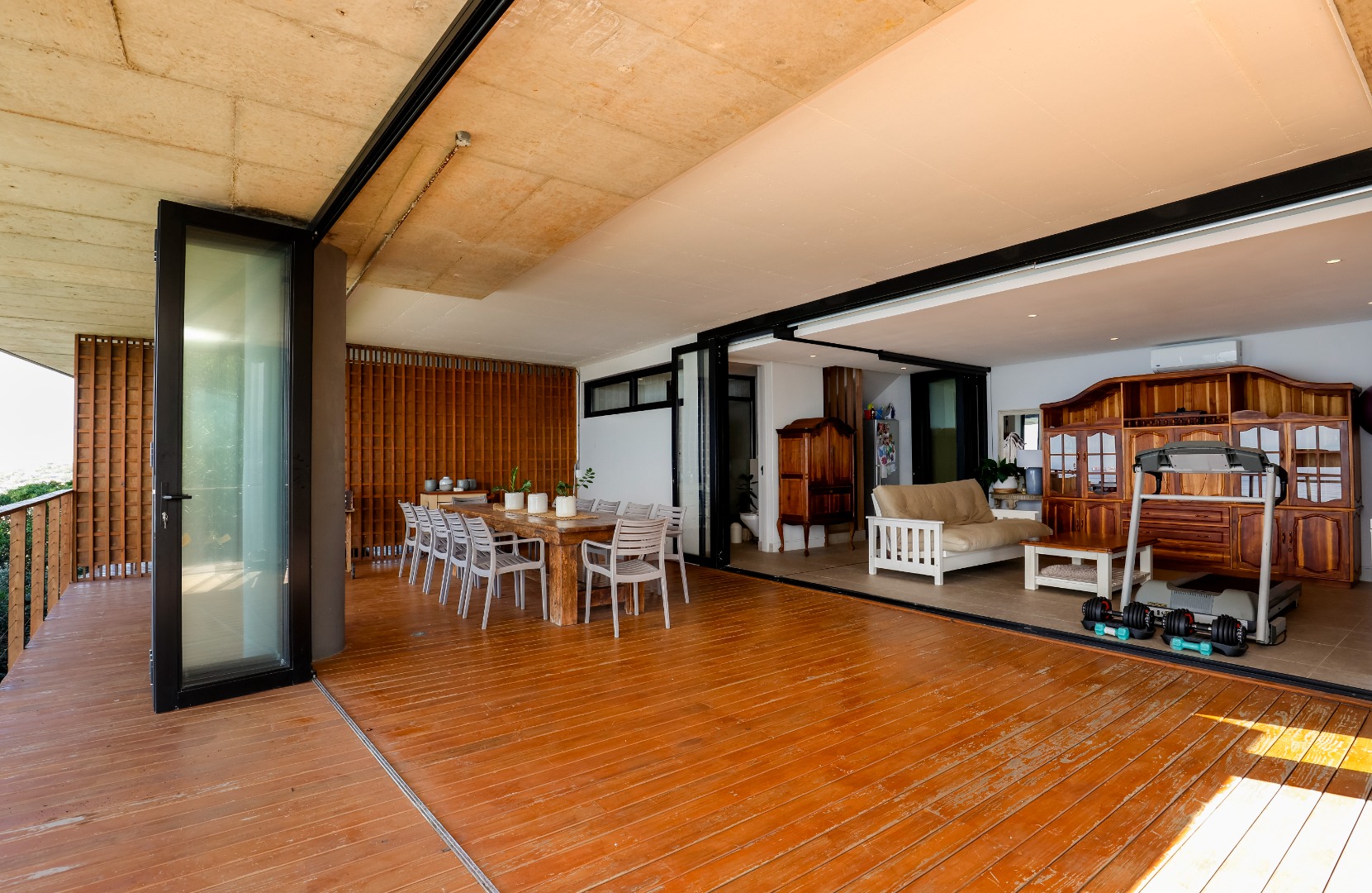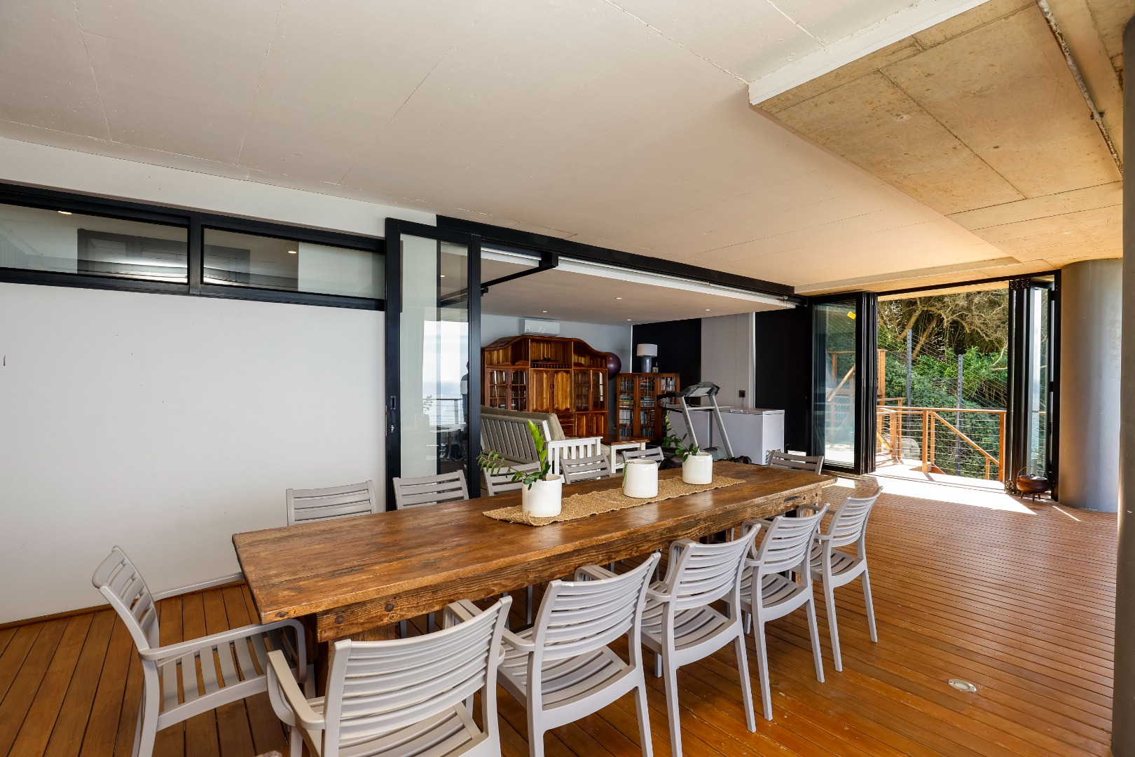 The ground floor features a full bathroom and bedroom that flows onto a spacious deck overlooking the coastline. This could however be used as a 2nd lounge, entertainment room, home gym, or office. Ideal for relaxation or entertainment.