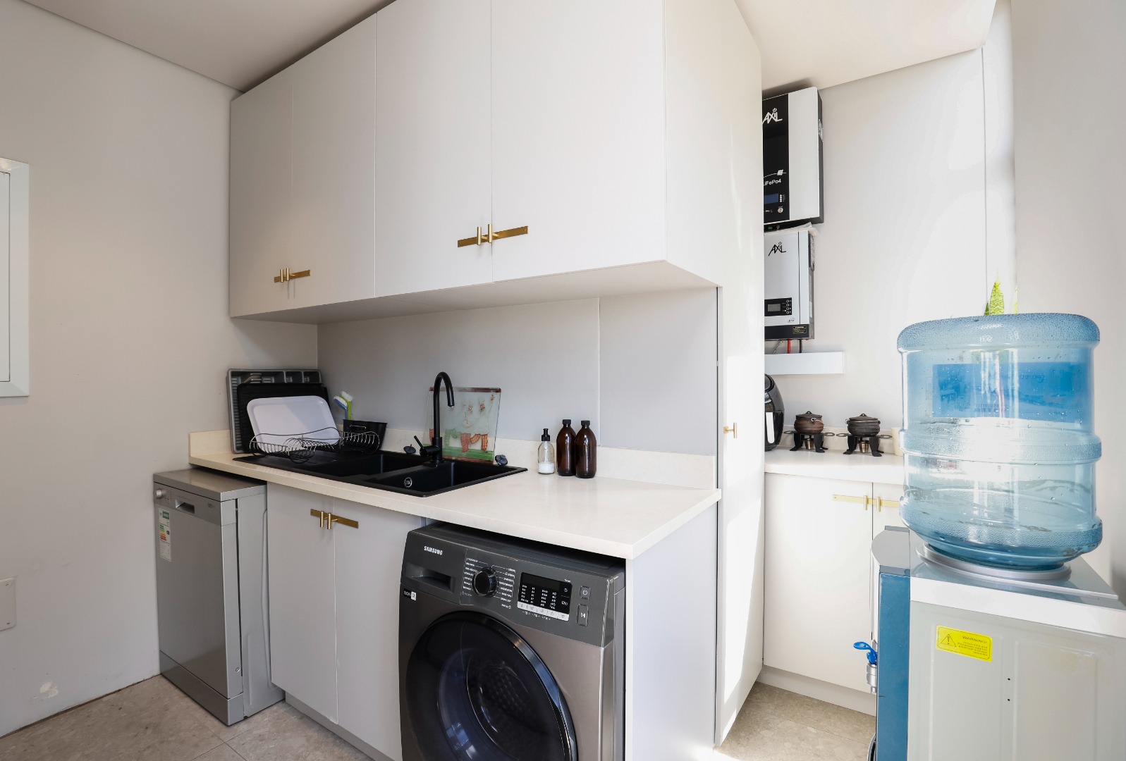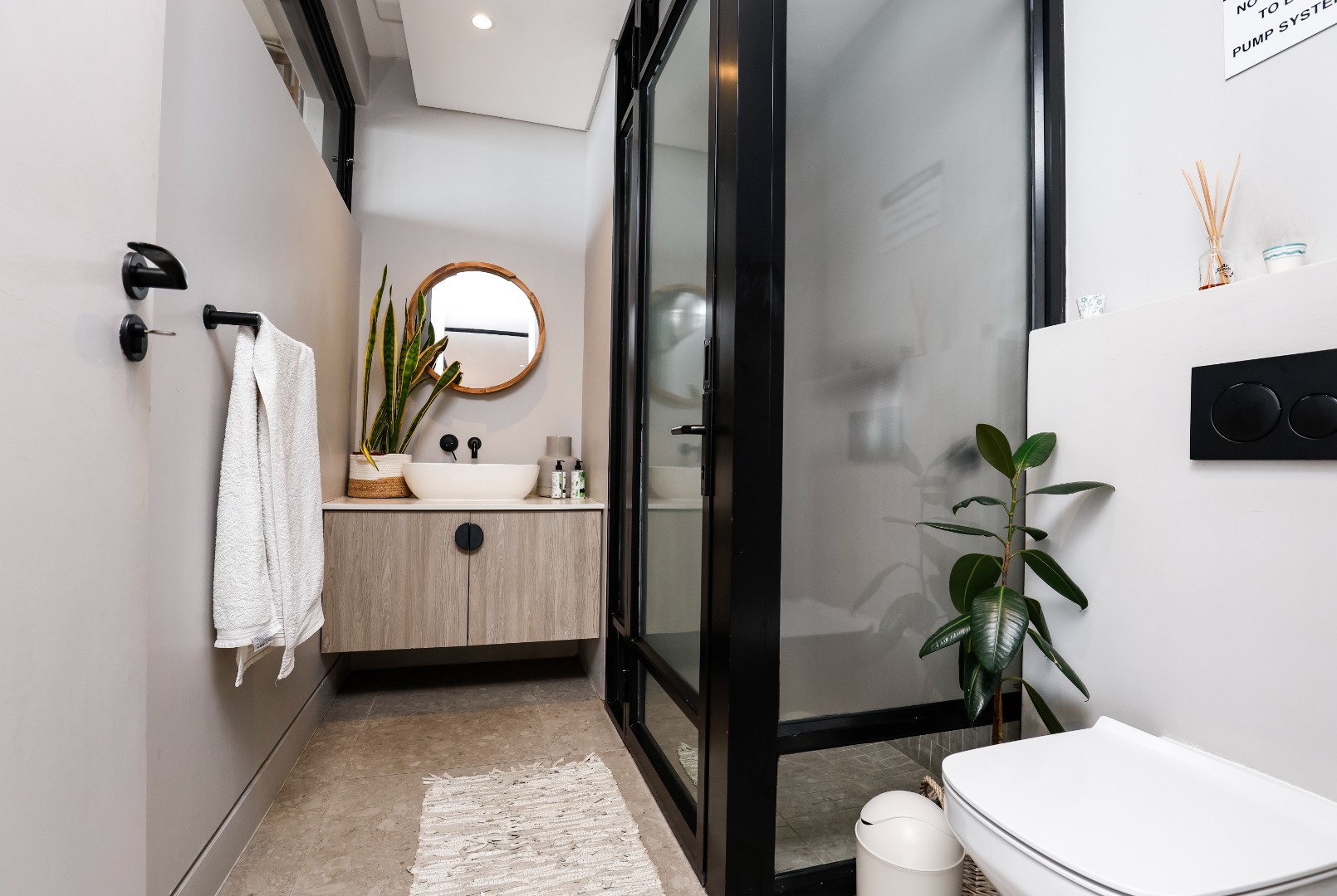 The first floor boasts 2 stylish bedrooms, each with ensuite bathrooms featuring state of the art finishes. The open-plan kitchen and lounge flow seamlessly onto a spacious deck, with breathtaking views. A scullery and laundry area behind the kitchen allow for convenience.