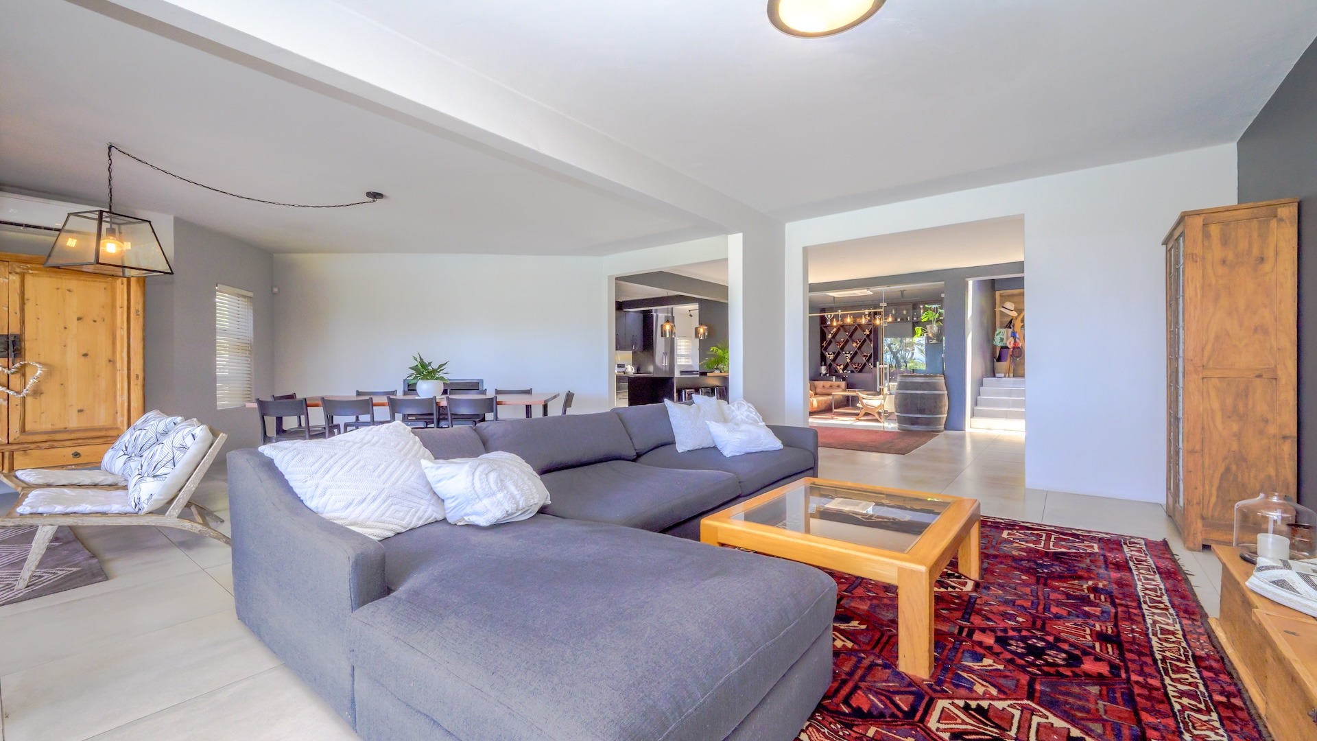 The home boasts a light-filled open-plan living, dining, and kitchen area which flow effortlessly together, creating a spacious and inviting atmosphere. The expansive covered patio is perfect for year-round entertaining, while the elegant wine cellar doubles as an intimate second lounge. The home features four generous bedrooms and three stylish bathrooms, including two luxurious en-suites. A separate guest loo is an added feature.