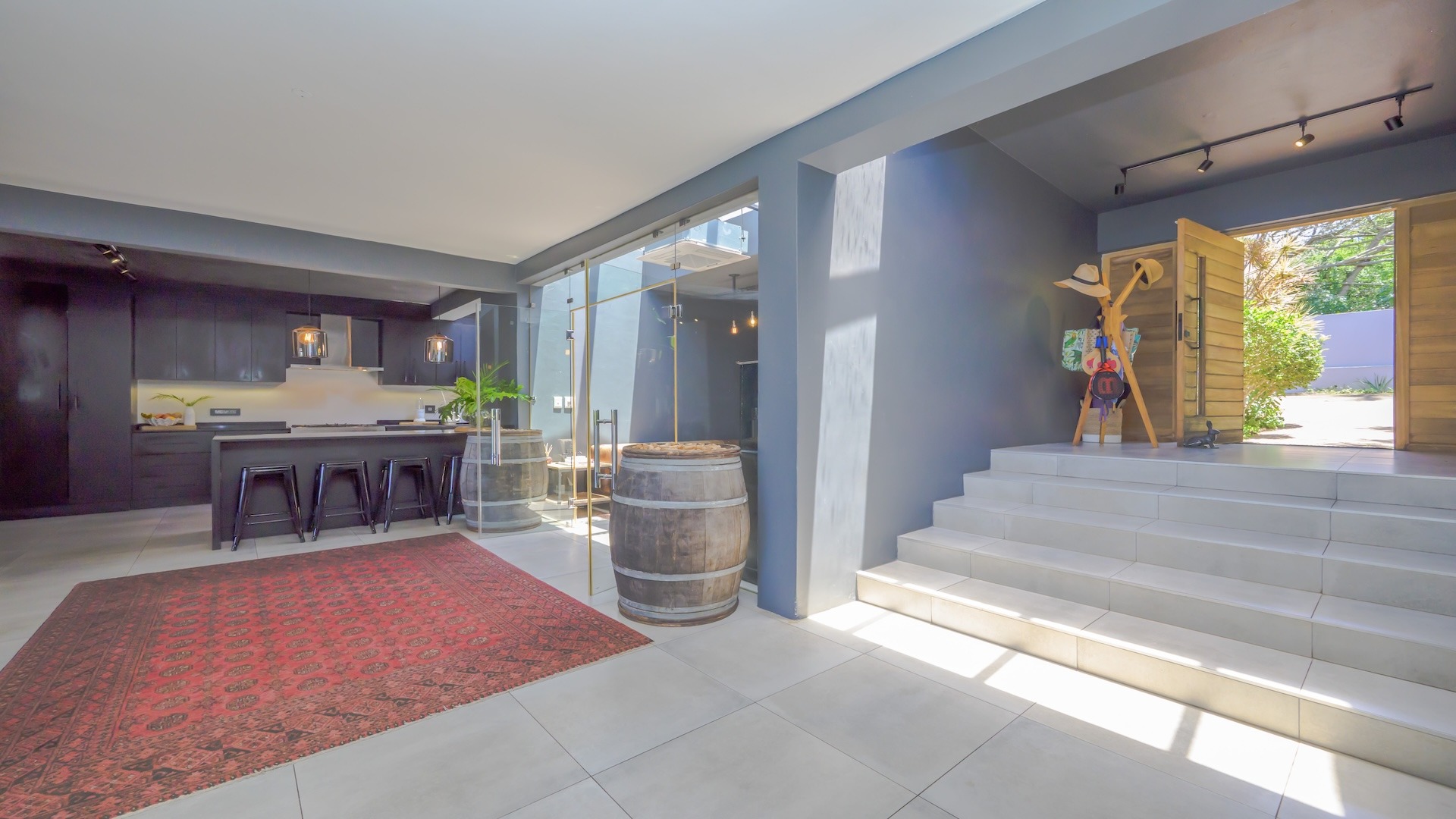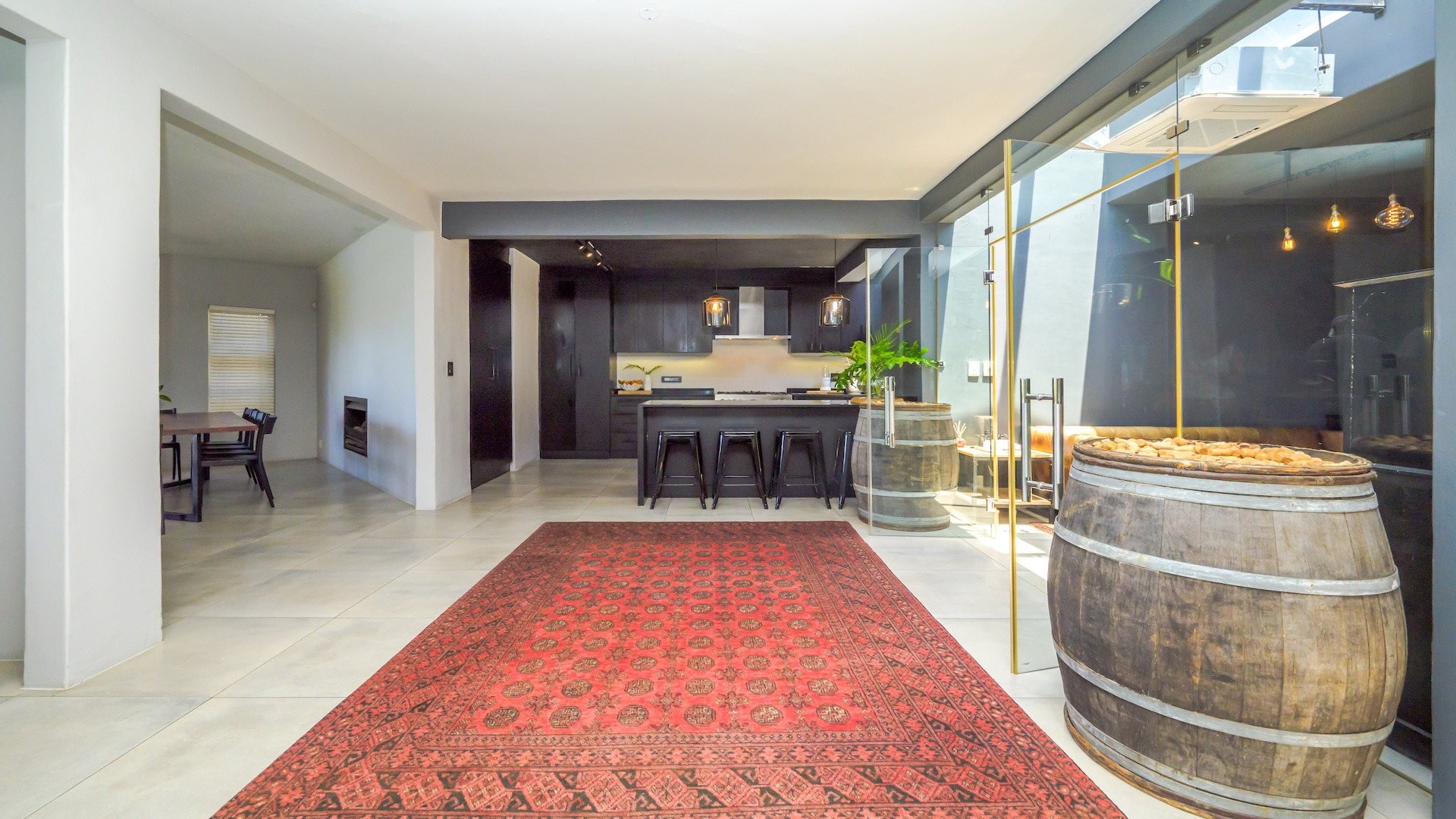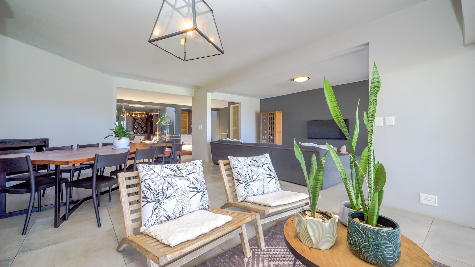 The home boasts a light-filled open-plan living, dining, and kitchen area which flow effortlessly together, creating a spacious and inviting atmosphere. The expansive covered patio is perfect for year-round entertaining, while the elegant wine cellar doubles as an intimate second lounge. The home features four generous bedrooms and three stylish bathrooms, including two luxurious en-suites. A separate guest loo is an added feature.