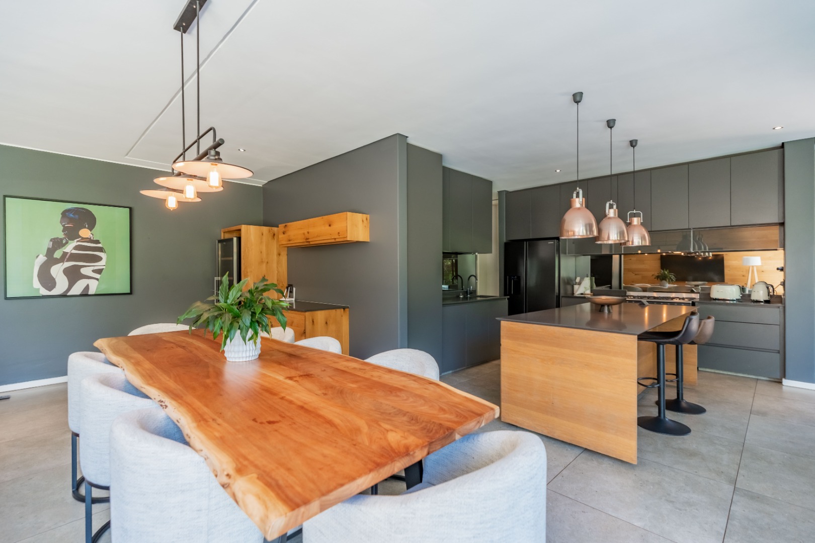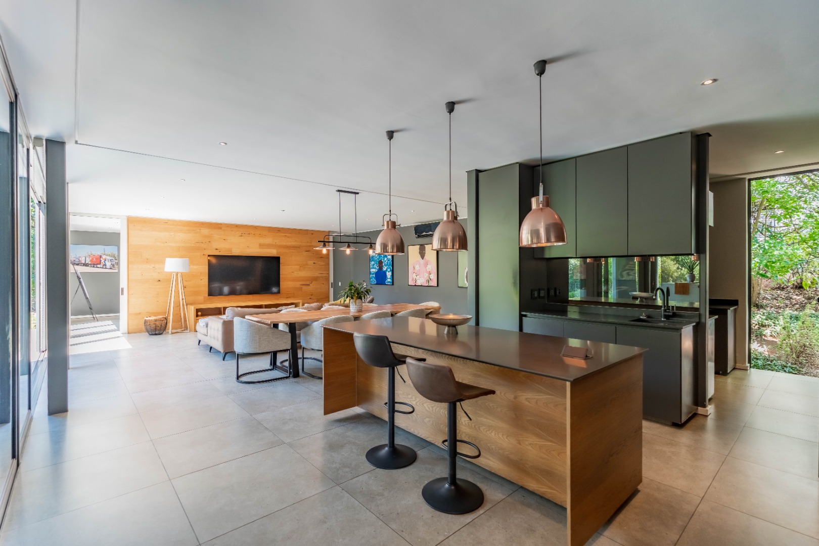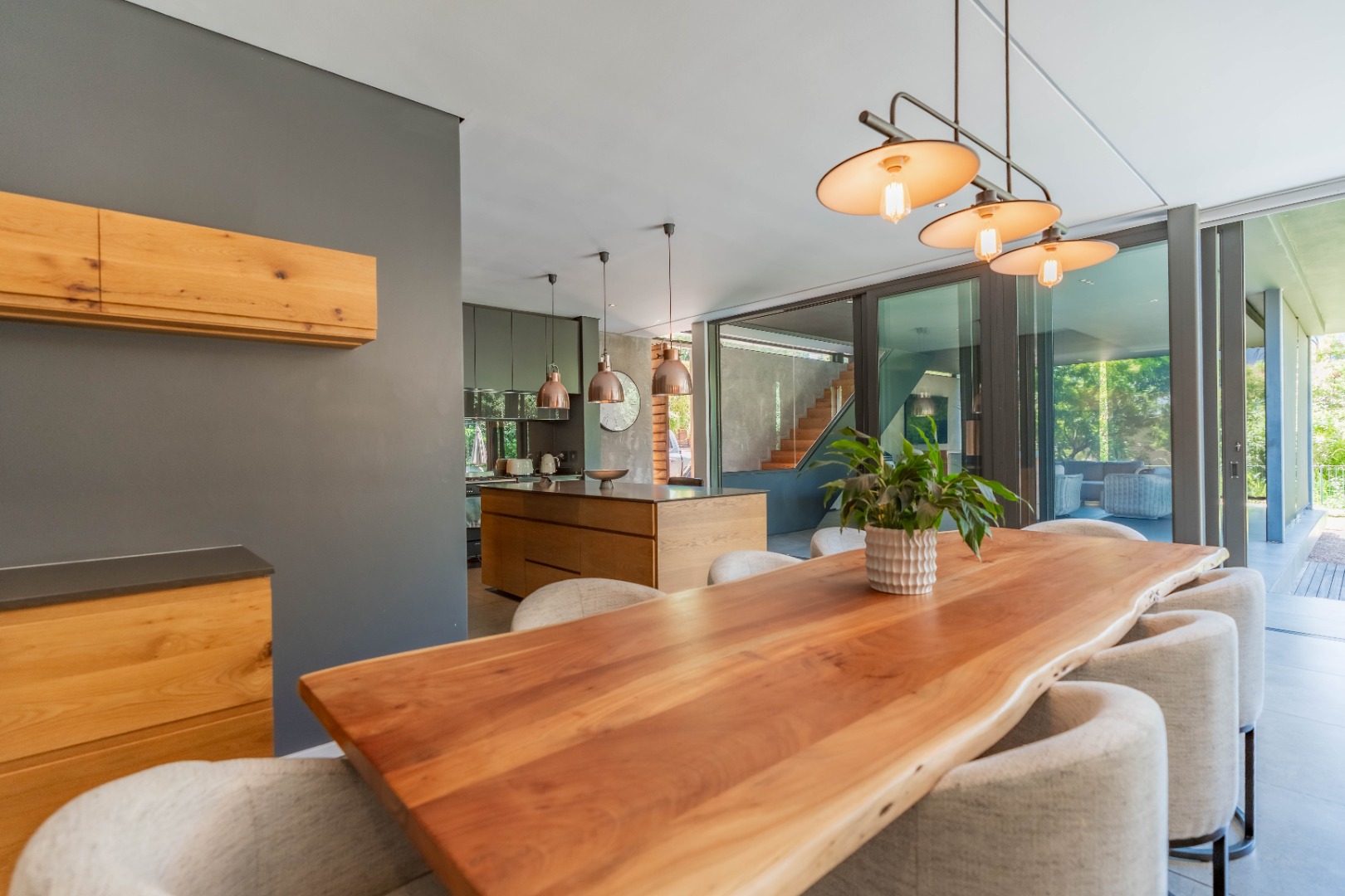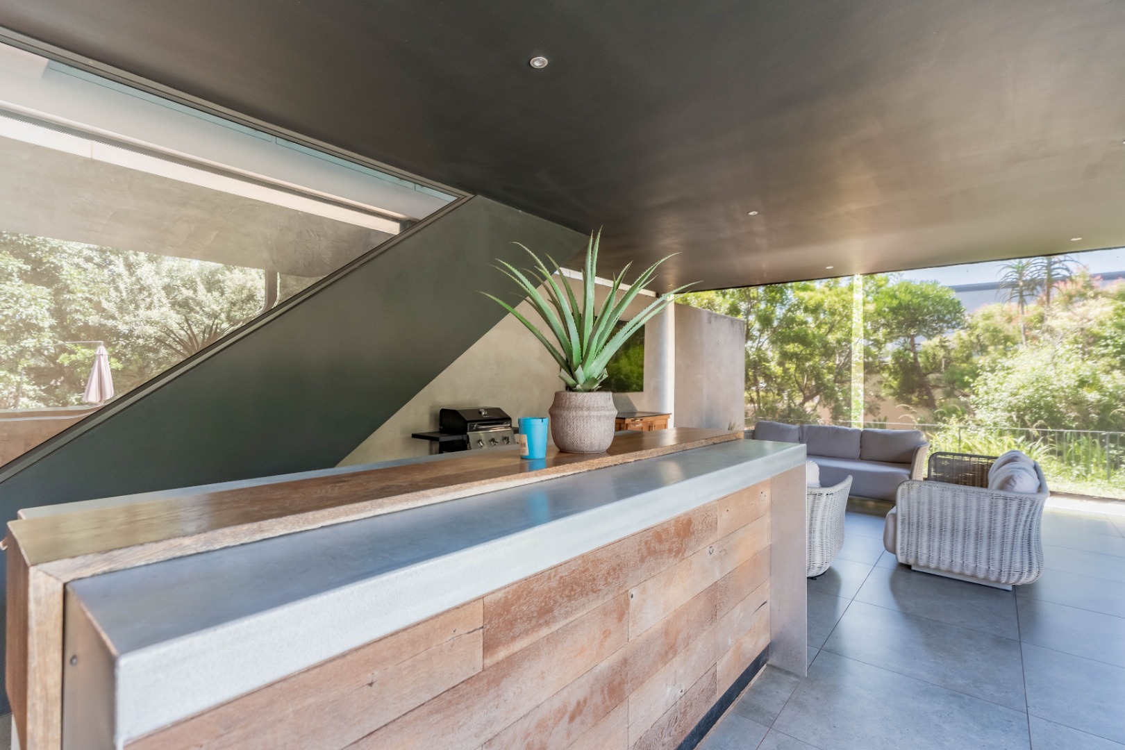 Outside, the home offers a beautiful wooden deck and sparkling swimming pool, complemented by a relaxed bar, lounge and dining area — ideal for enjoying Umhlanga’s coastal lifestyle with family and friends.