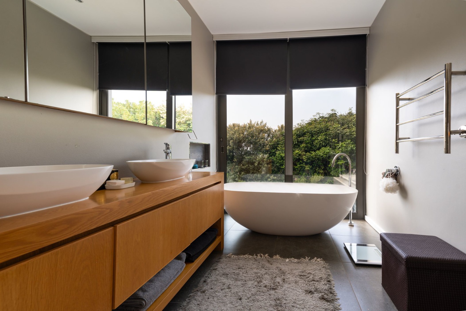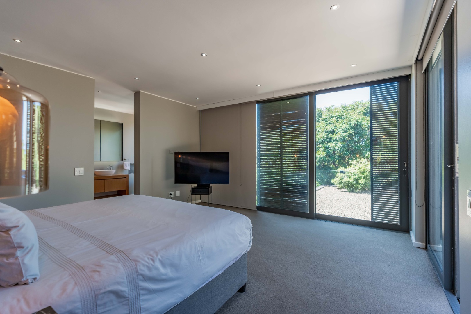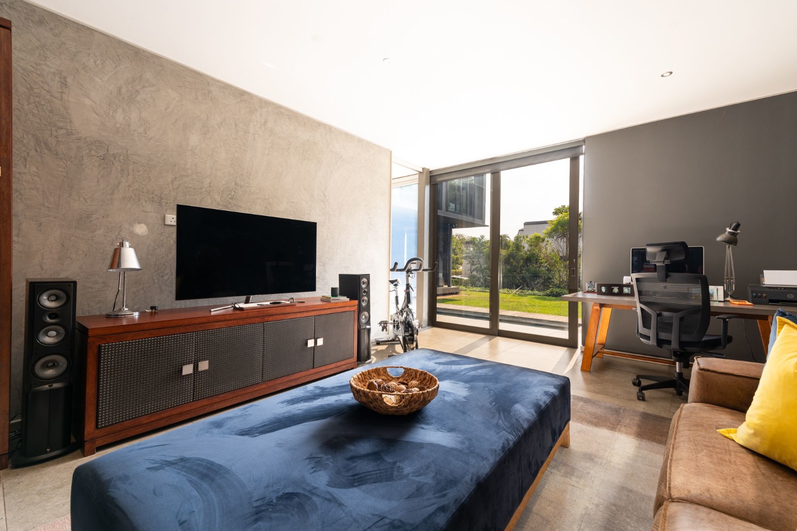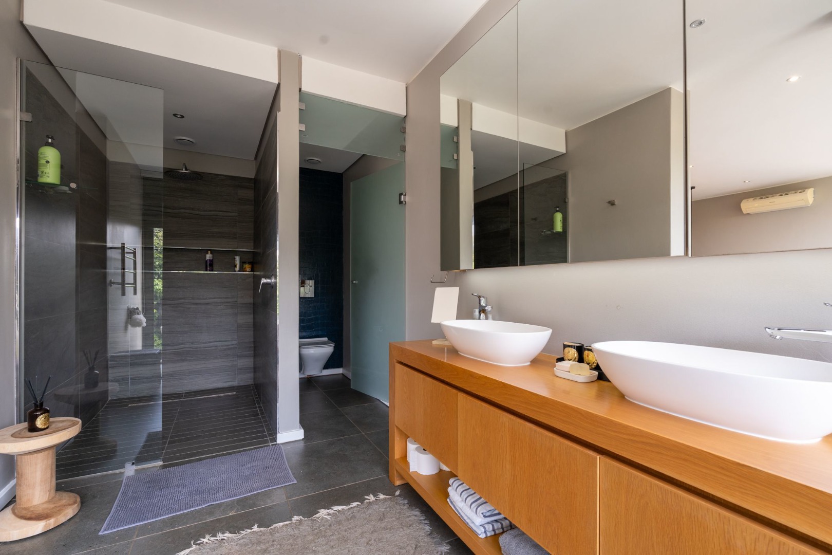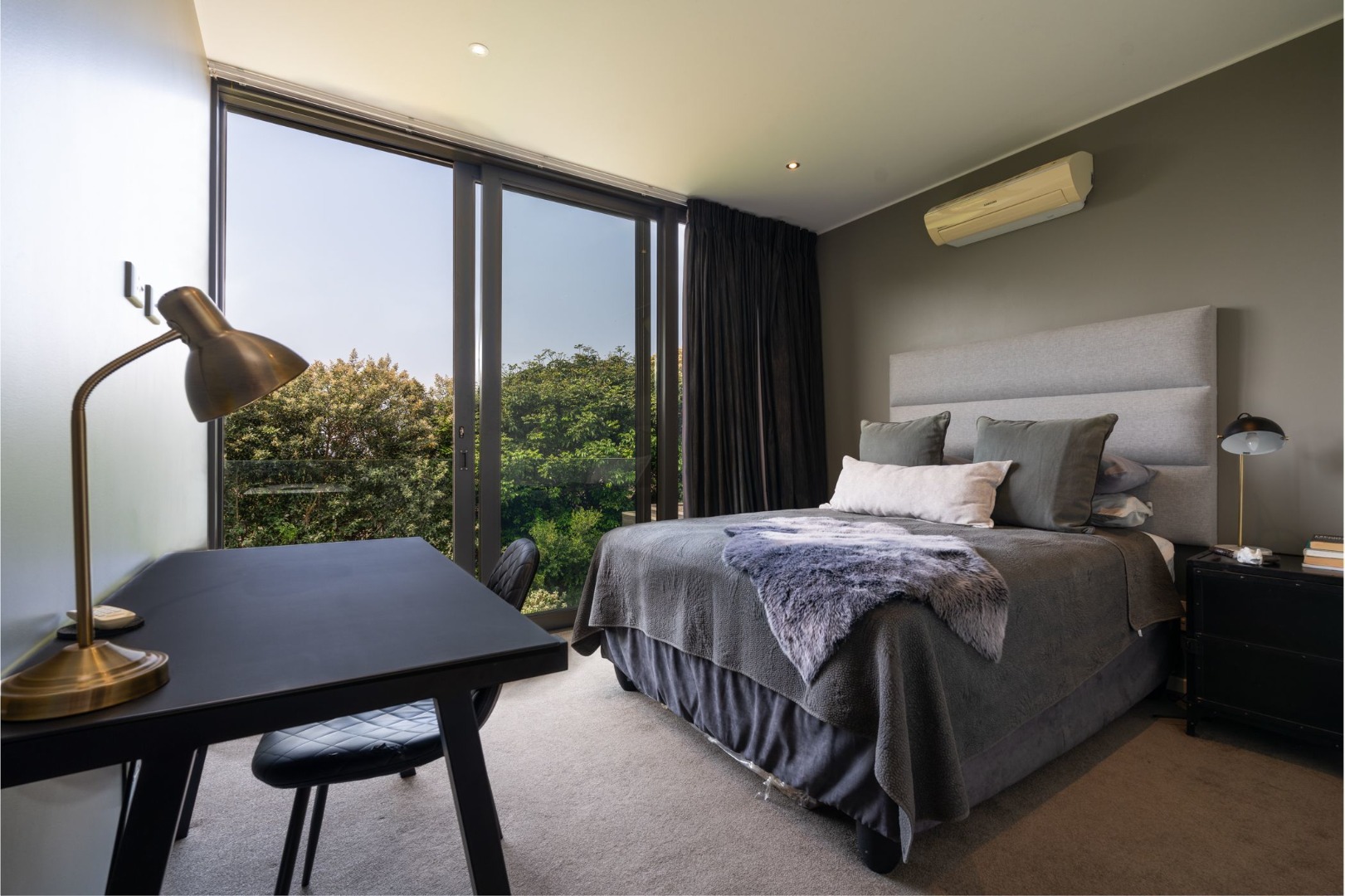 A versatile en-suite bedroom on the lower level includes a study nook and can easily serve as a guest suite, TV lounge or private cinema room.