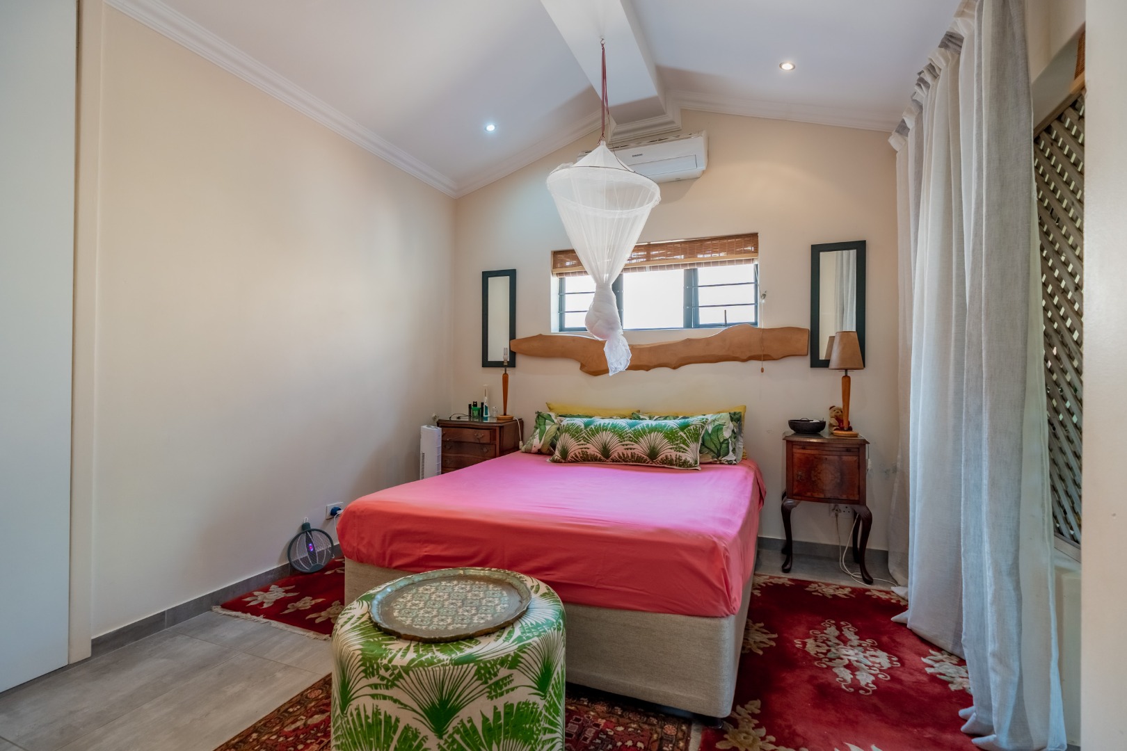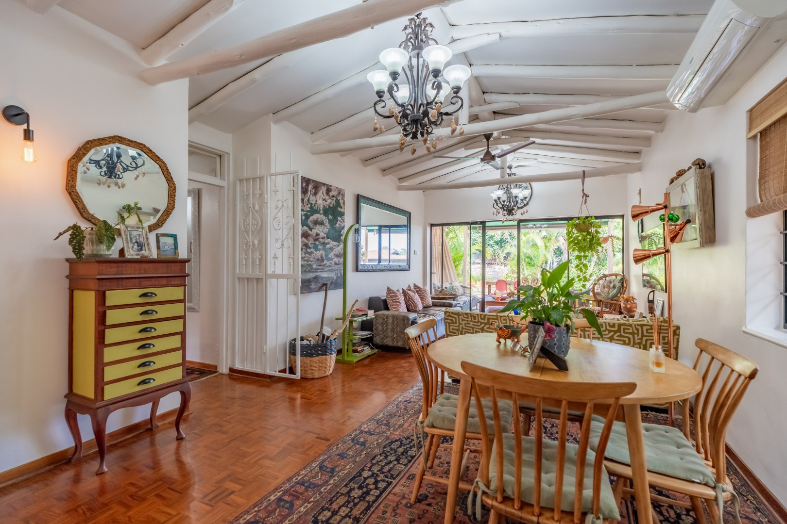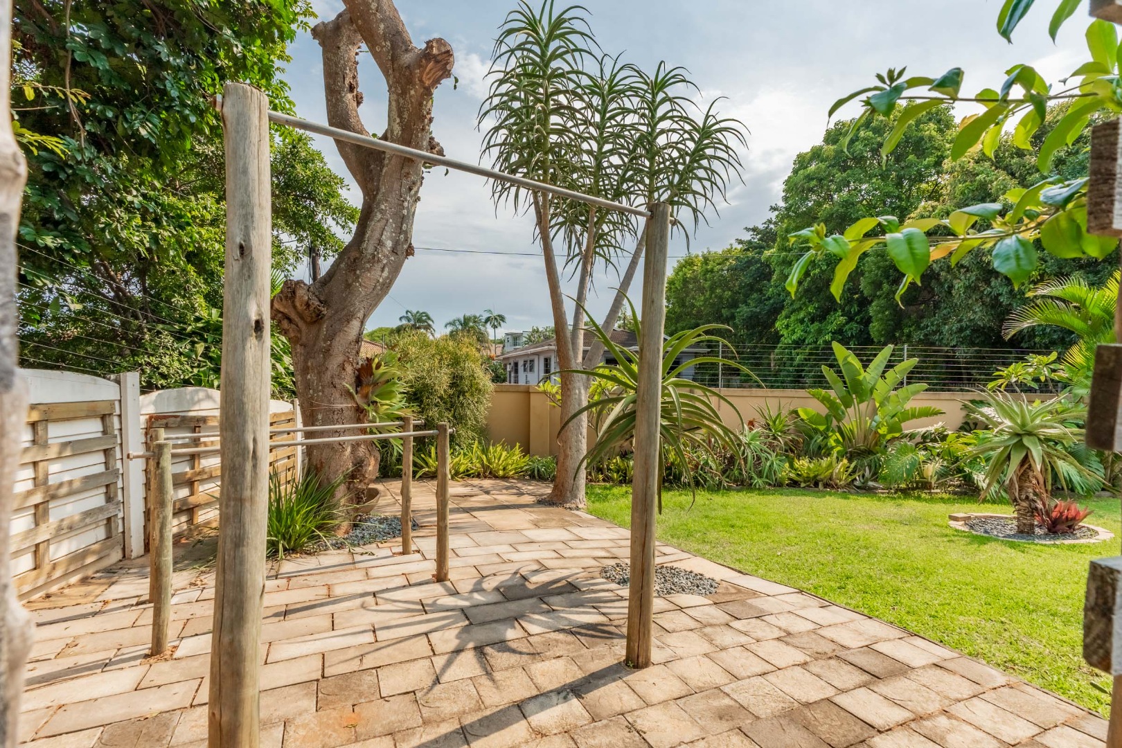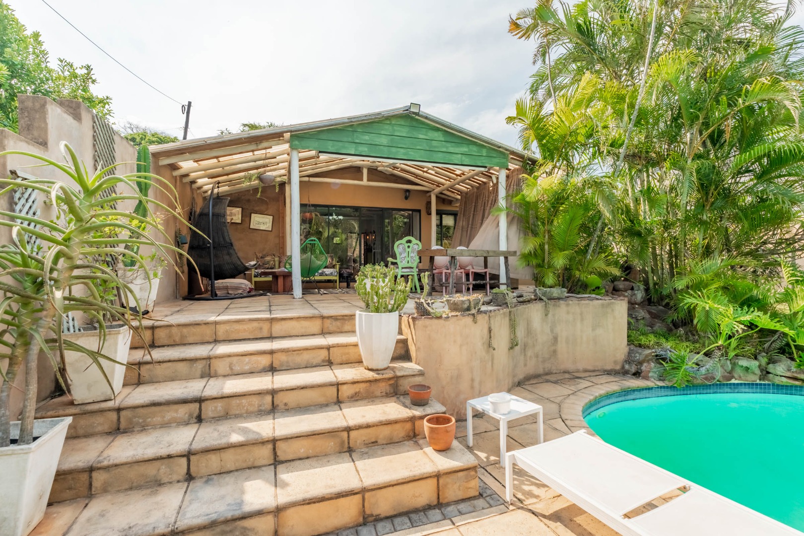 Nestled in the desirable suburban enclave of Herrwood Park, Umhlanga, this inviting 4-bedroom, 4-bathroom residence offers a harmonious blend of comfortable living and tropical outdoor appeal. The property welcomes you with an inviting arched entrance, flanked by lush landscaping and earthy-toned walls, setting a serene tone. Inside, the home features an open-plan layout, enhanced by abundant natural light, exposed wooden ceiling beams, and warm parquet flooring, creating a bright and airy atmosphere.