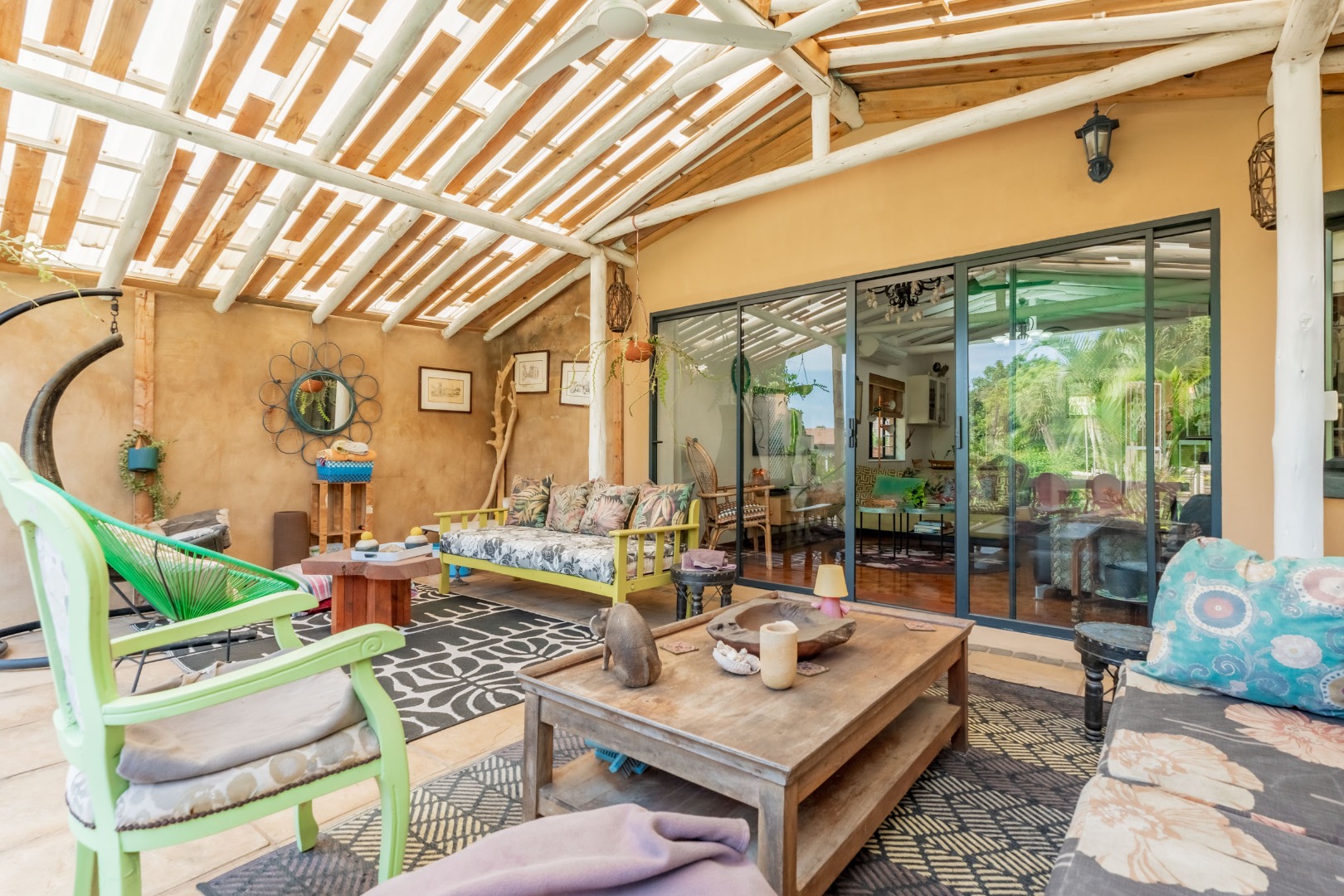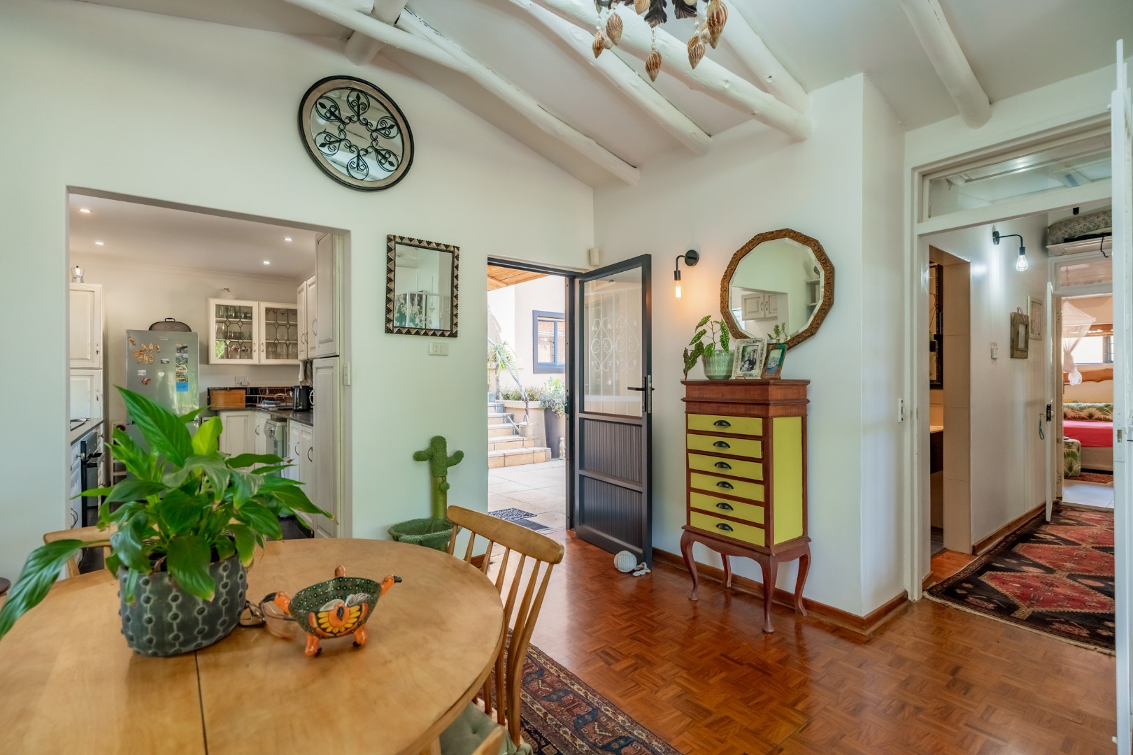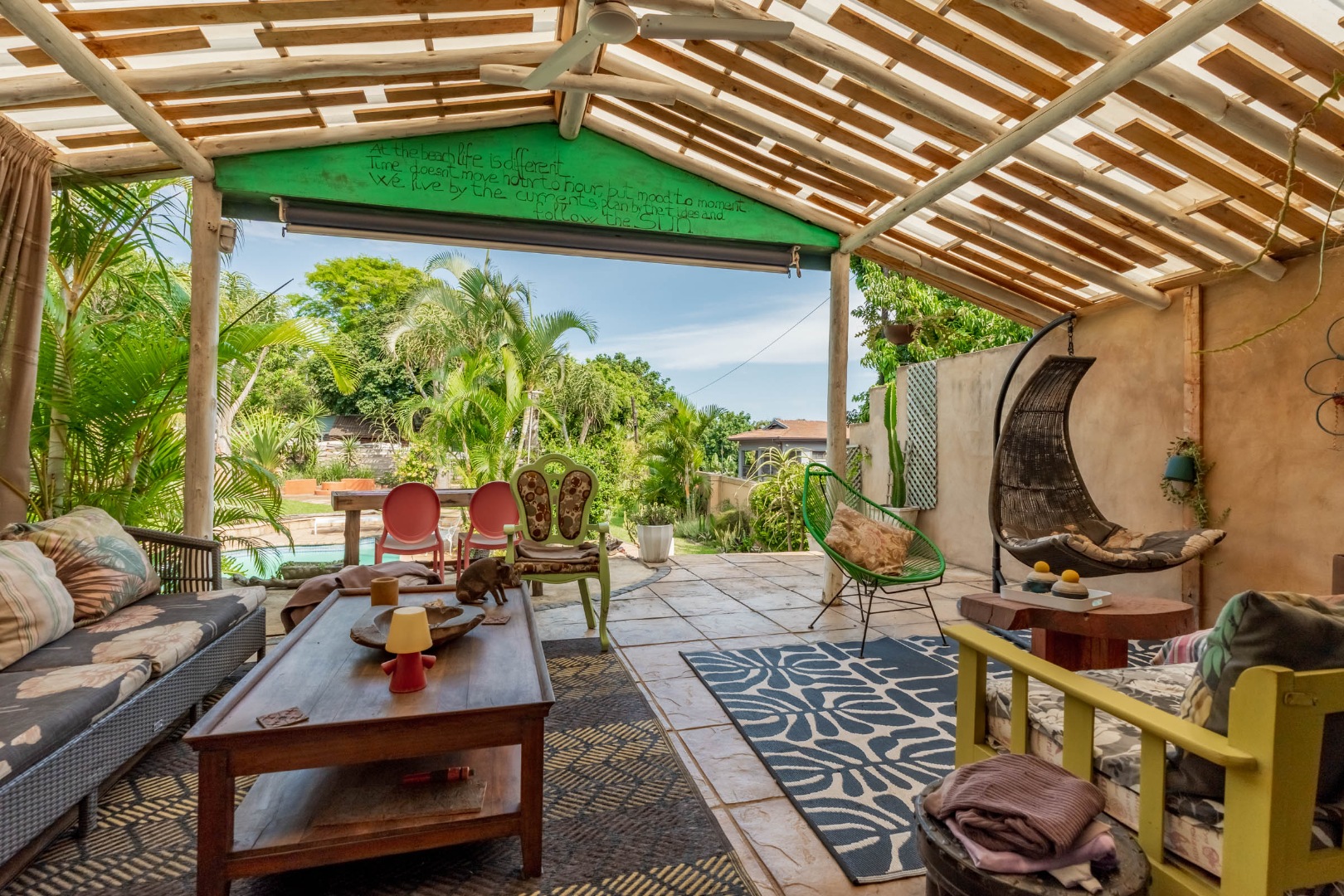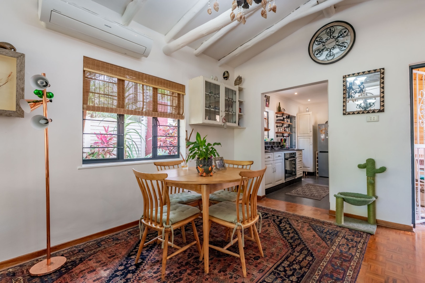 Nestled in the desirable suburban enclave of Herrwood Park, Umhlanga, this inviting 4-bedroom, 4-bathroom residence offers a harmonious blend of comfortable living and tropical outdoor appeal. The property welcomes you with an inviting arched entrance, flanked by lush landscaping and earthy-toned walls, setting a serene tone. Inside, the home features an open-plan layout, enhanced by abundant natural light, exposed wooden ceiling beams, and warm parquet flooring, creating a bright and airy atmosphere.